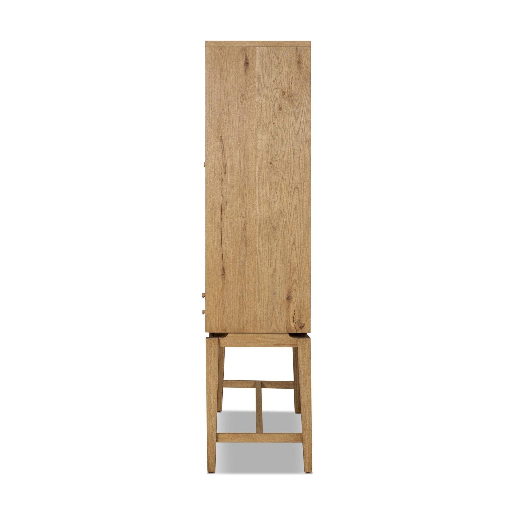 Light natural oak reflects the New American inspiration behind this storage-driven piece featuring wide proportions and an elevated base. With small drawers for extra storage this piece will make any space feel less cluttered and more designed.