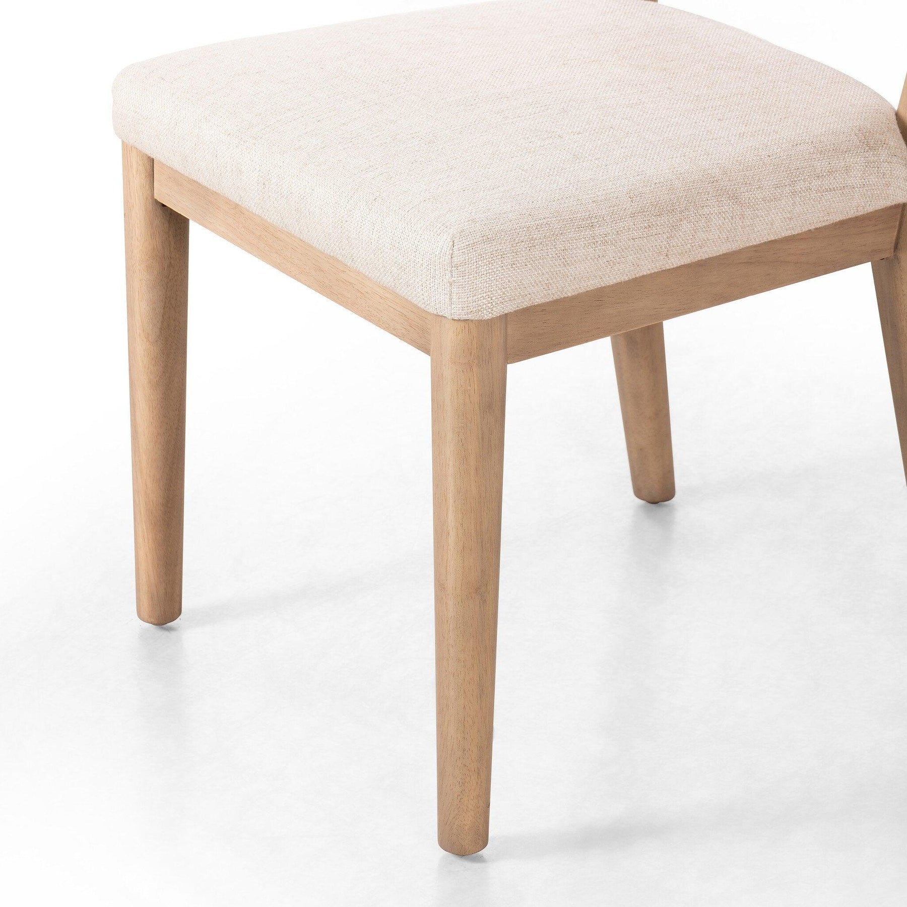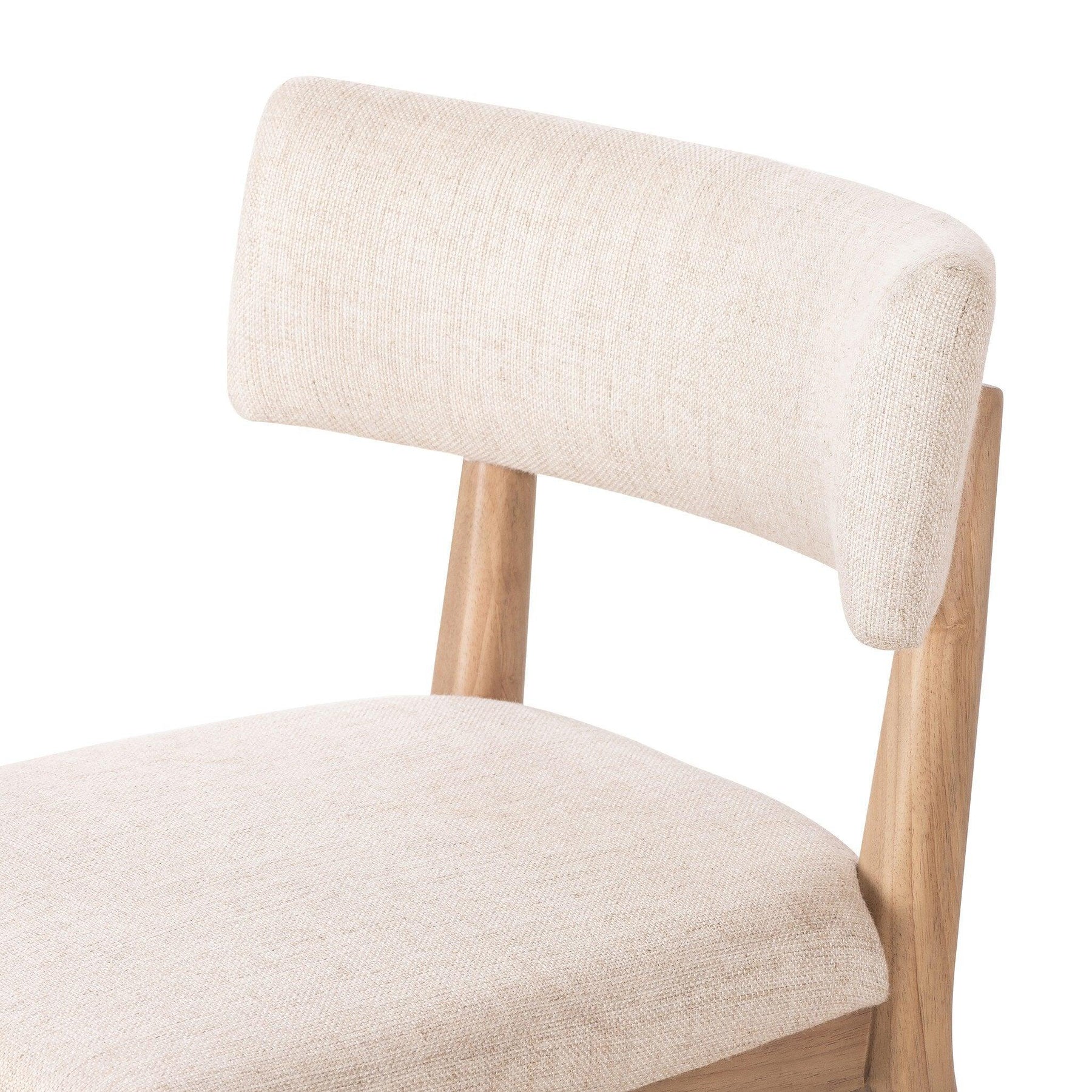 Natural parawood forms a curved barrel back for a shapely take on everyday dining with textural off-white fabric that moves between styles with ease.