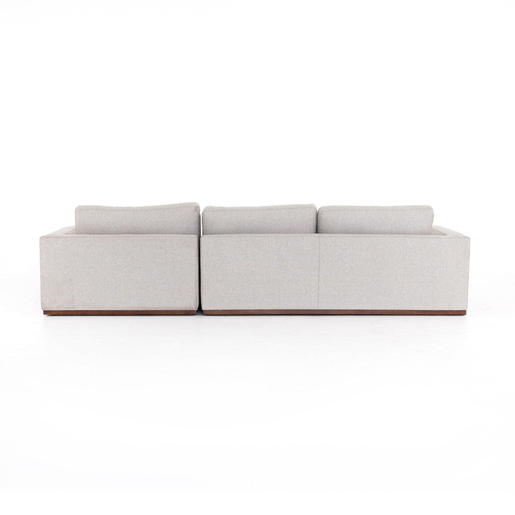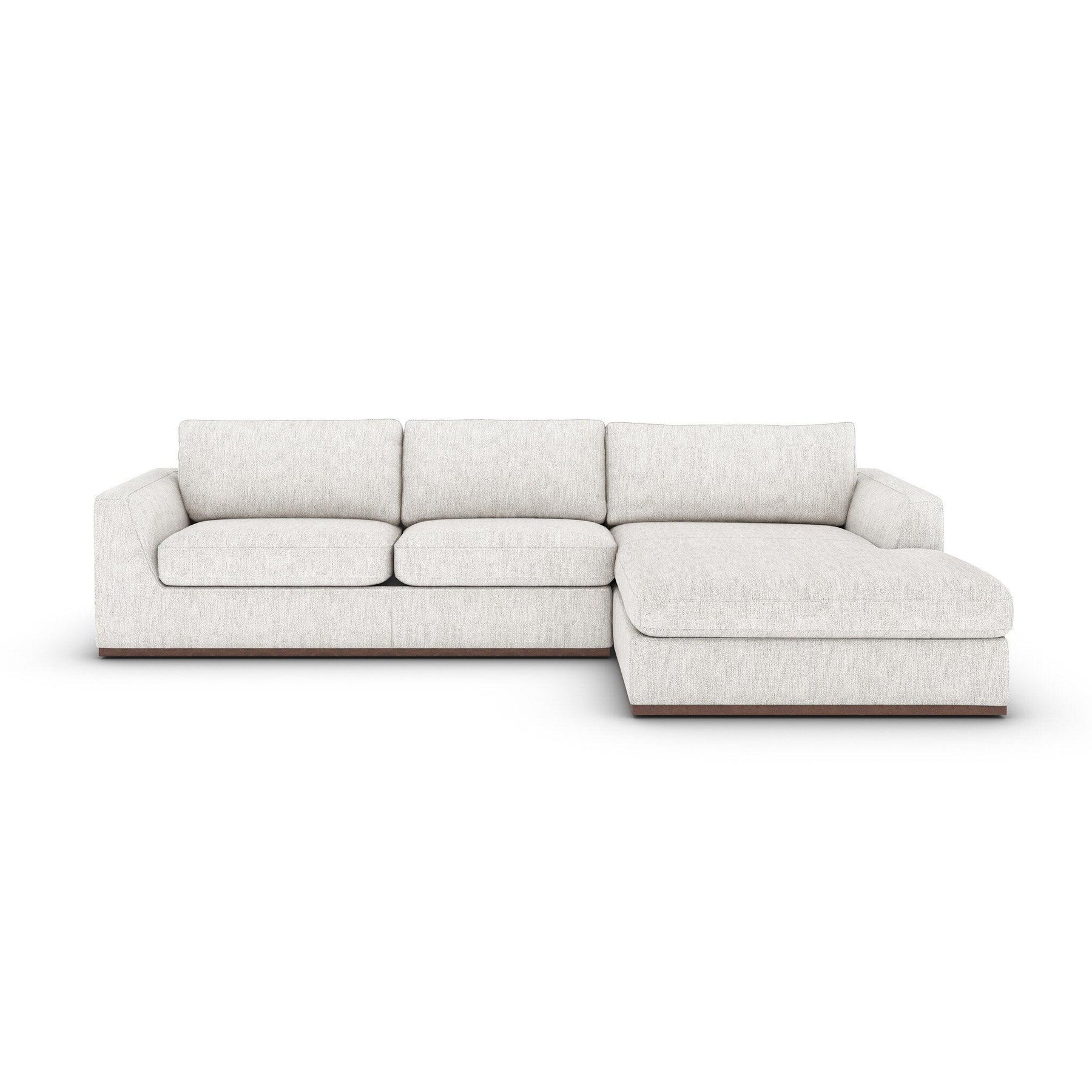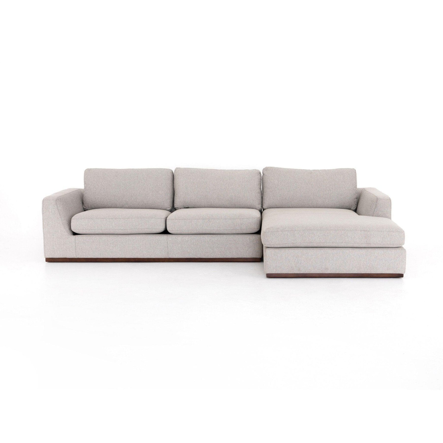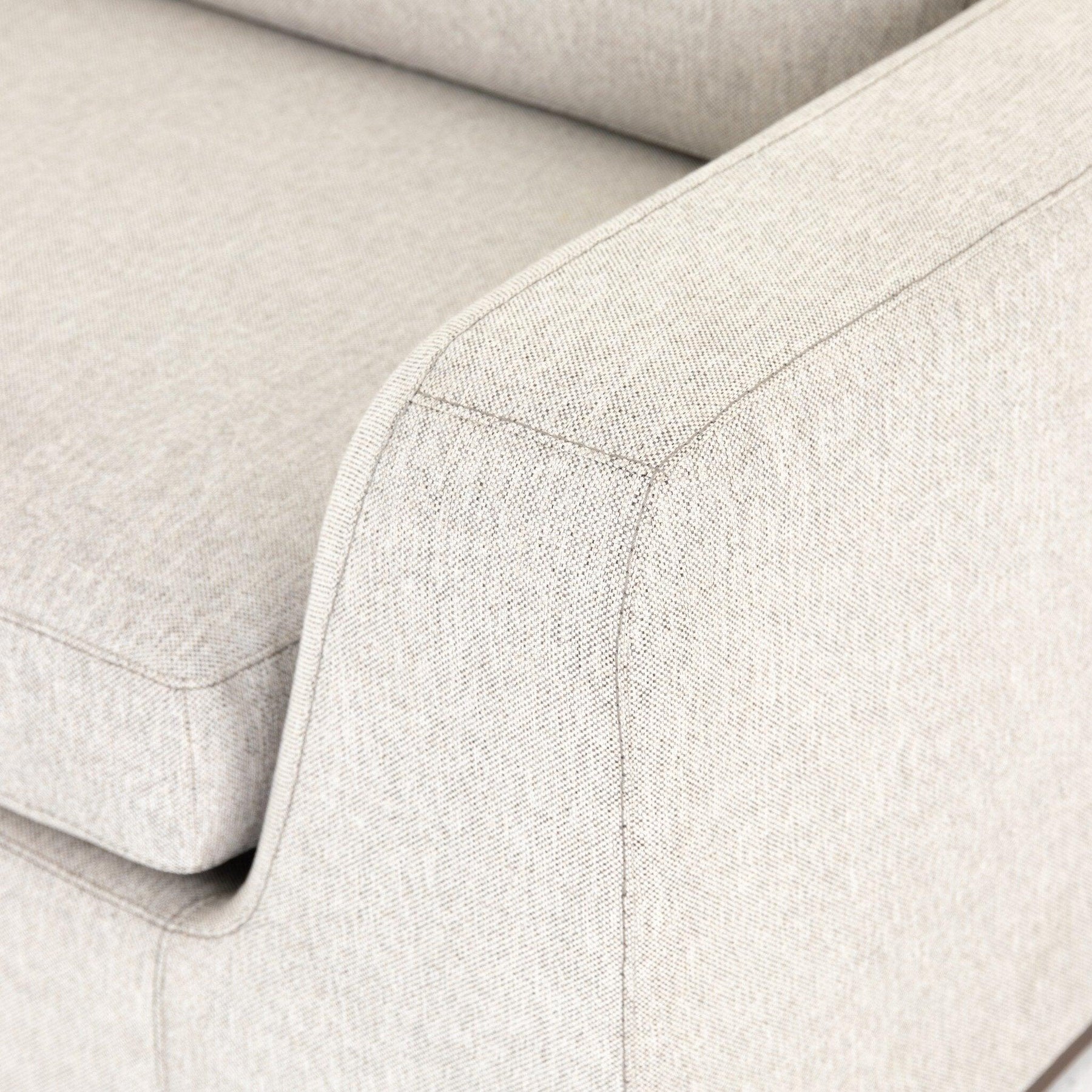 Simply styled for everyday lounging. A textural poly/linen blend covering is made for comfort with subtly flared sides for shapely effect and a wrapped plinth base. Right arm facing piece to matching sectional.