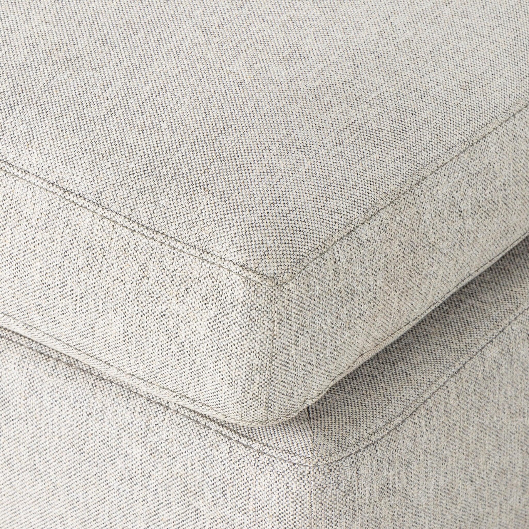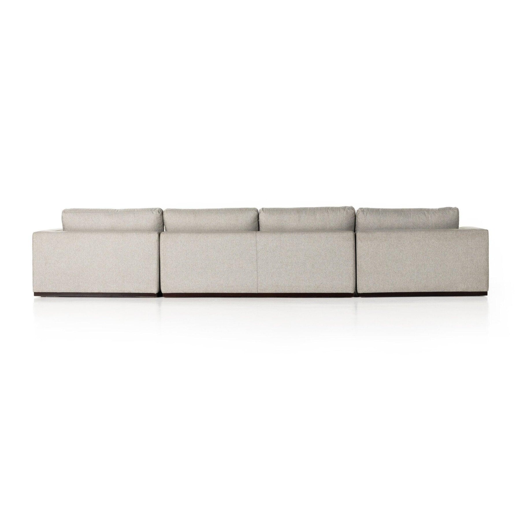 Simply styled for everyday lounging. This three-piece sectional is upholstered in a textural poly/linen blend with subtly flared sides and a plinth-style wrapped wooden base.