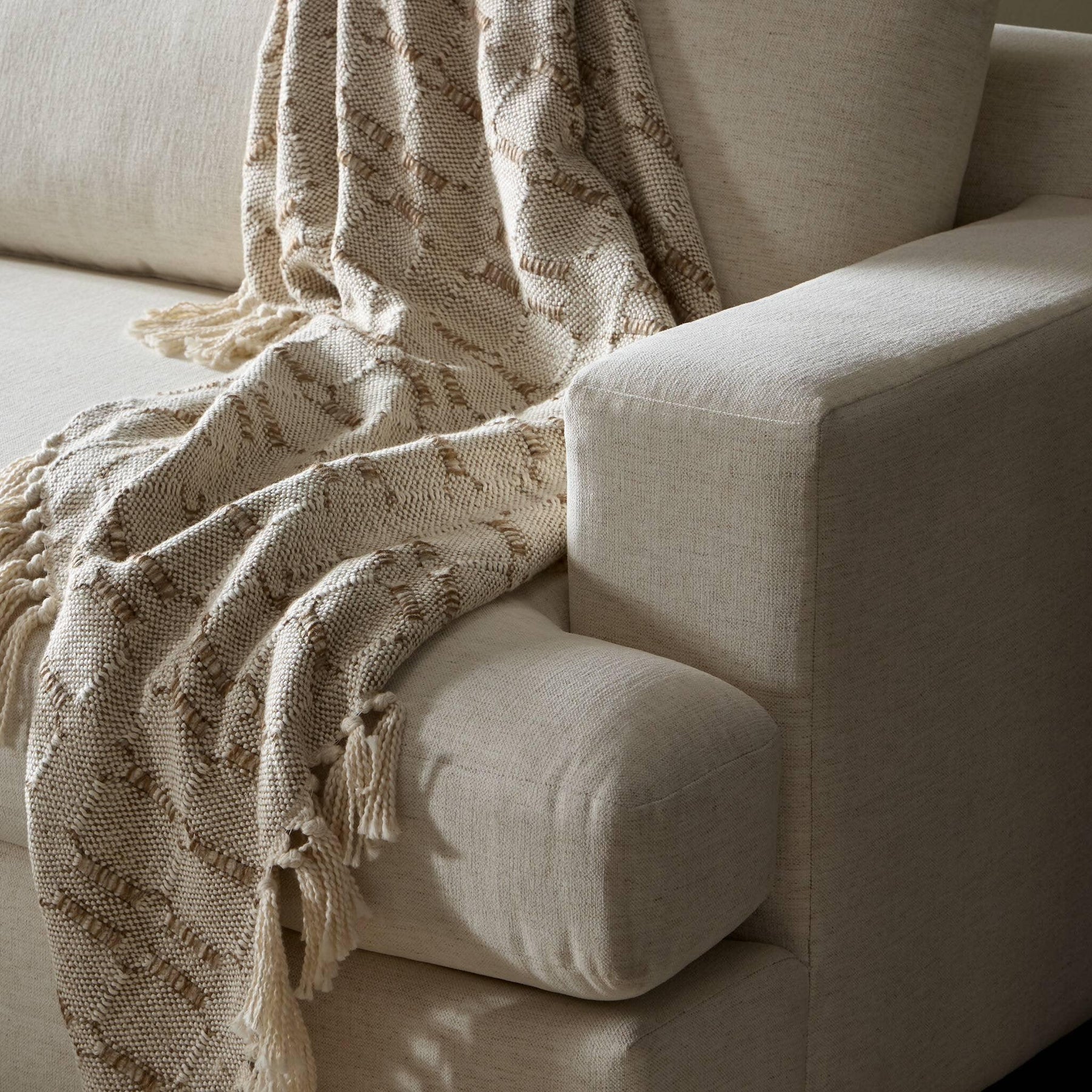 Modern shaping meets sink-in comfort for a sectional that invites you to relax a little longer. Wide arms and a slightly angled back are softened with T-shaped cushions and an exaggerated bench-style seat in soft foam with S-spring suspension for a supportive sit. Finished with solid wood chunky block legs. Soft easy to clean and free of PFAS Crypton® performance fabric is specially engineered for protection against stains moisture and odor.