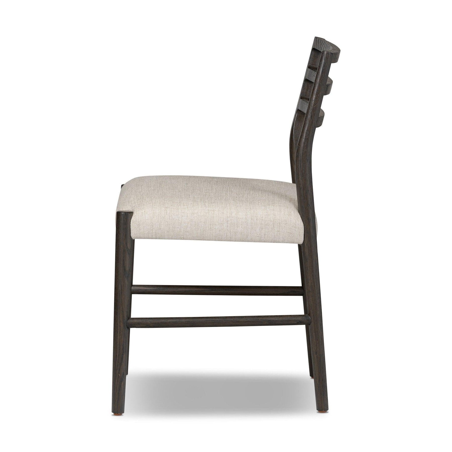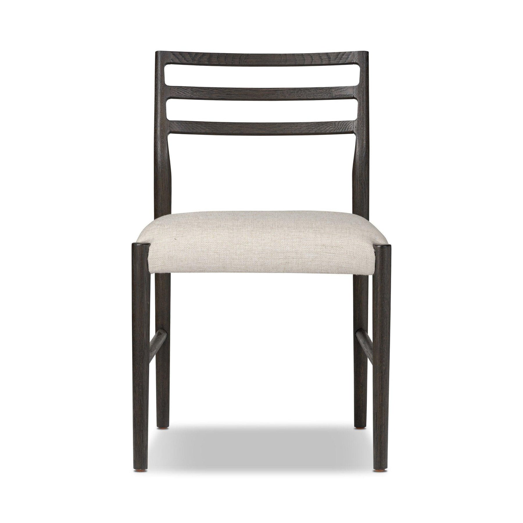 Fresh materials redefine the classic ladderback chair. Scrubbed oak framing is finished in carbon for a clean open look with natural depth. Natural-toned seating offers a textured feel and comfortable sit.