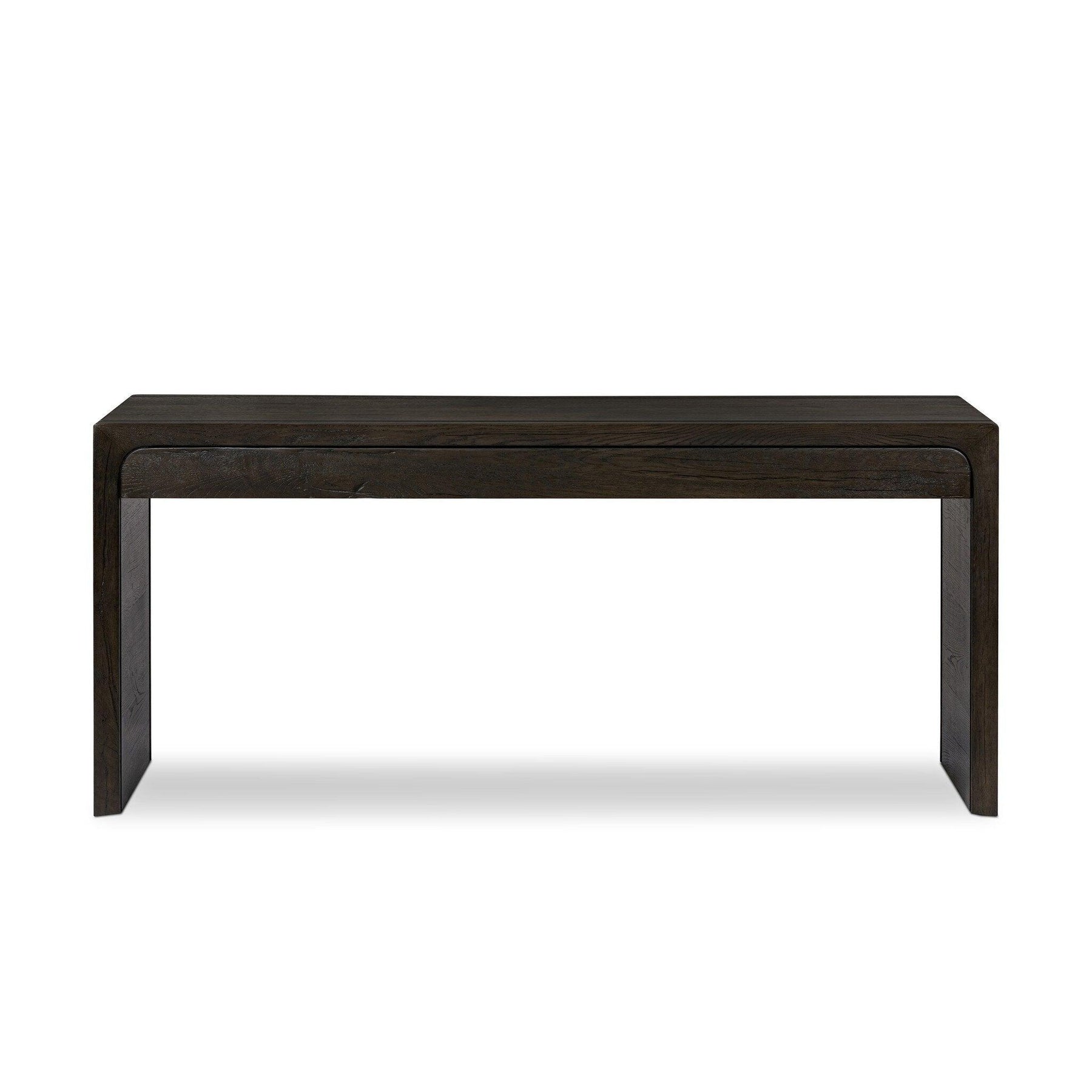 Made from solid reclaimed oak finished in a rustic charcoal this slim-profile desk shapes subtly curved corners bringing a handcrafted look to a minimalist form. Designed in partnership with longtime Four Hands collaborator Thomas Bina and Brazilian designer Ronald Sasson.