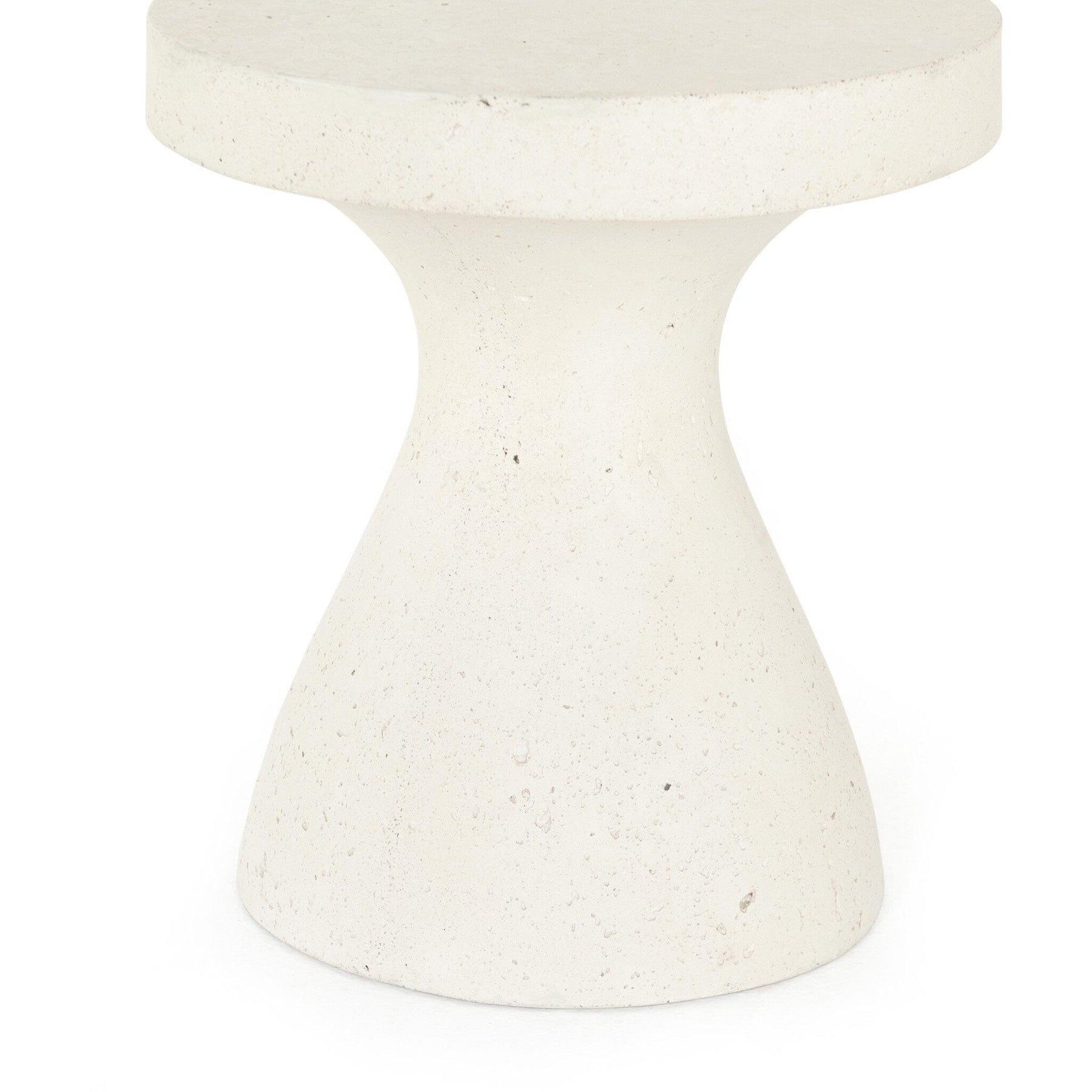 Smooth concrete is shaped into a durable eye-catching outdoor end table. Its natural texture brings extra dimension and character to each piece. Cover or store inside during inclement weather and when not in use.