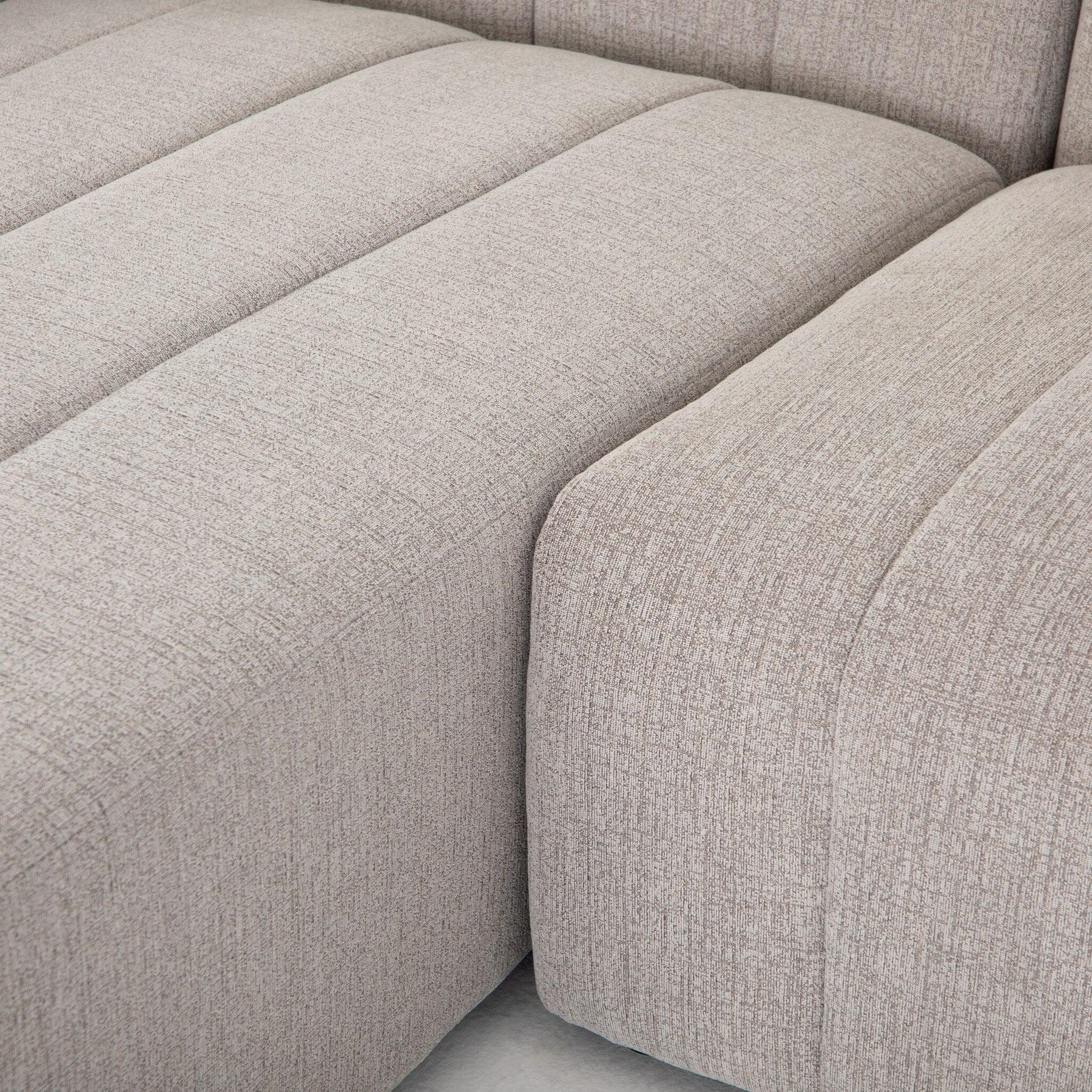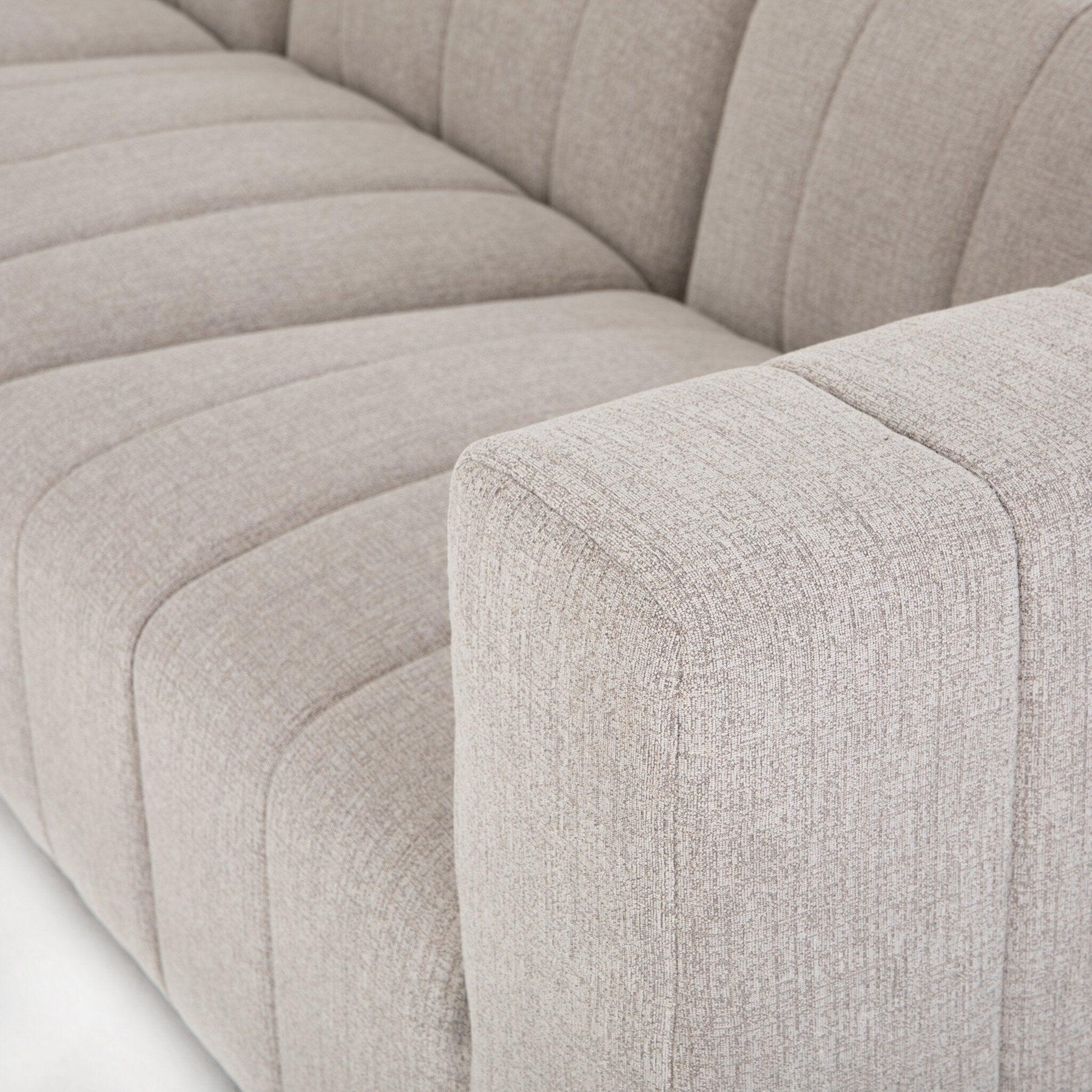 The sensible six-piece sectional meets modern Italian styling with a matching left arm facing chaise wide channeling and oversize arms. Neutral sandstone-colored covering awes in any space.