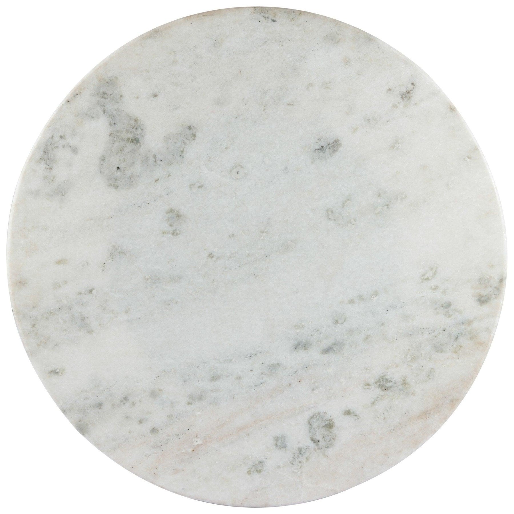 French industrial meets dining table. Beautifully detailed 8-sided cast iron pedestal supports a dramatic white marble top with a bull-nosed edge.