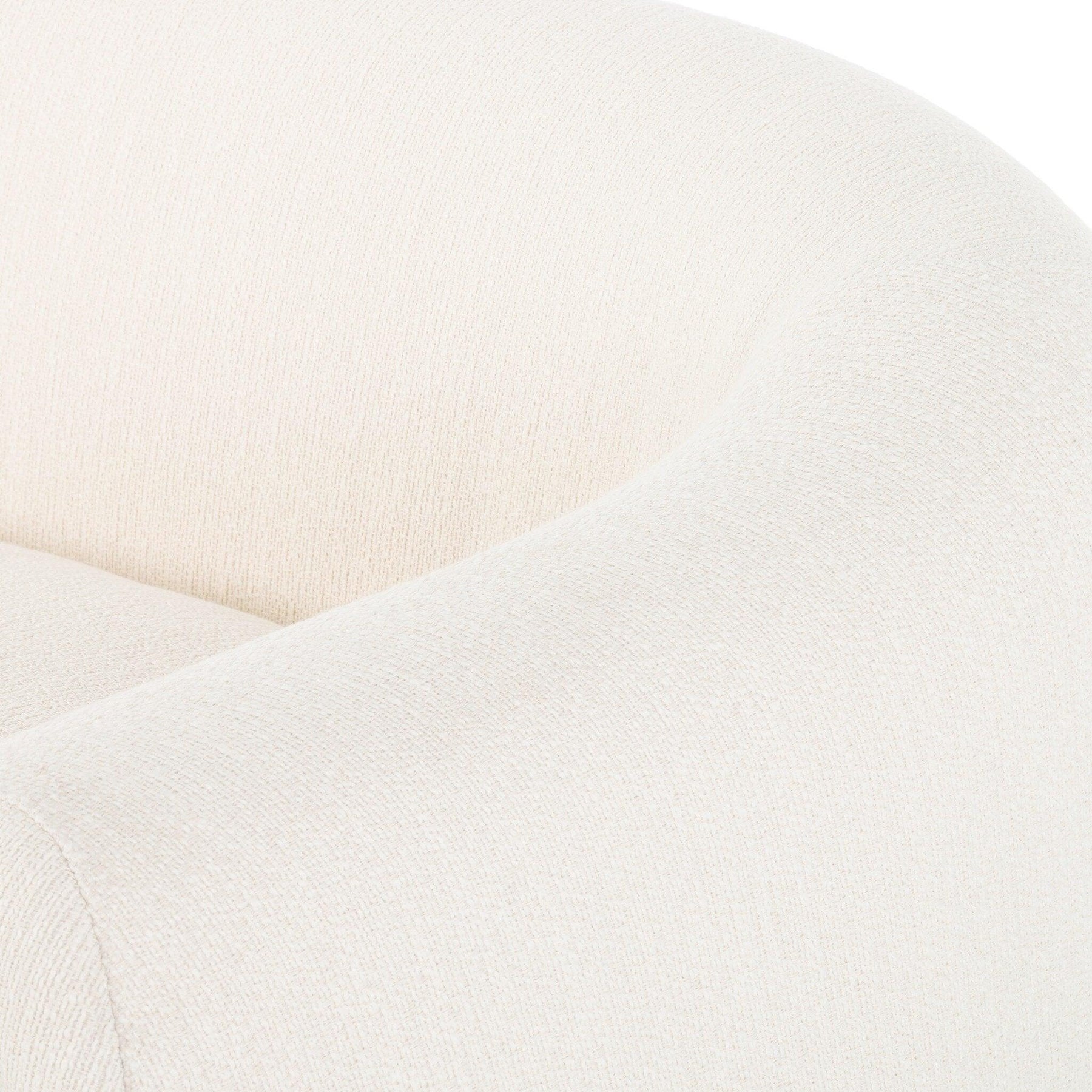 A fresh elongated take on the traditional tub chair with exaggerated depth for drama and comfort. Solid parawood legs intersect ivory upholstery on this plush sofa for clean contrast of color and scale.