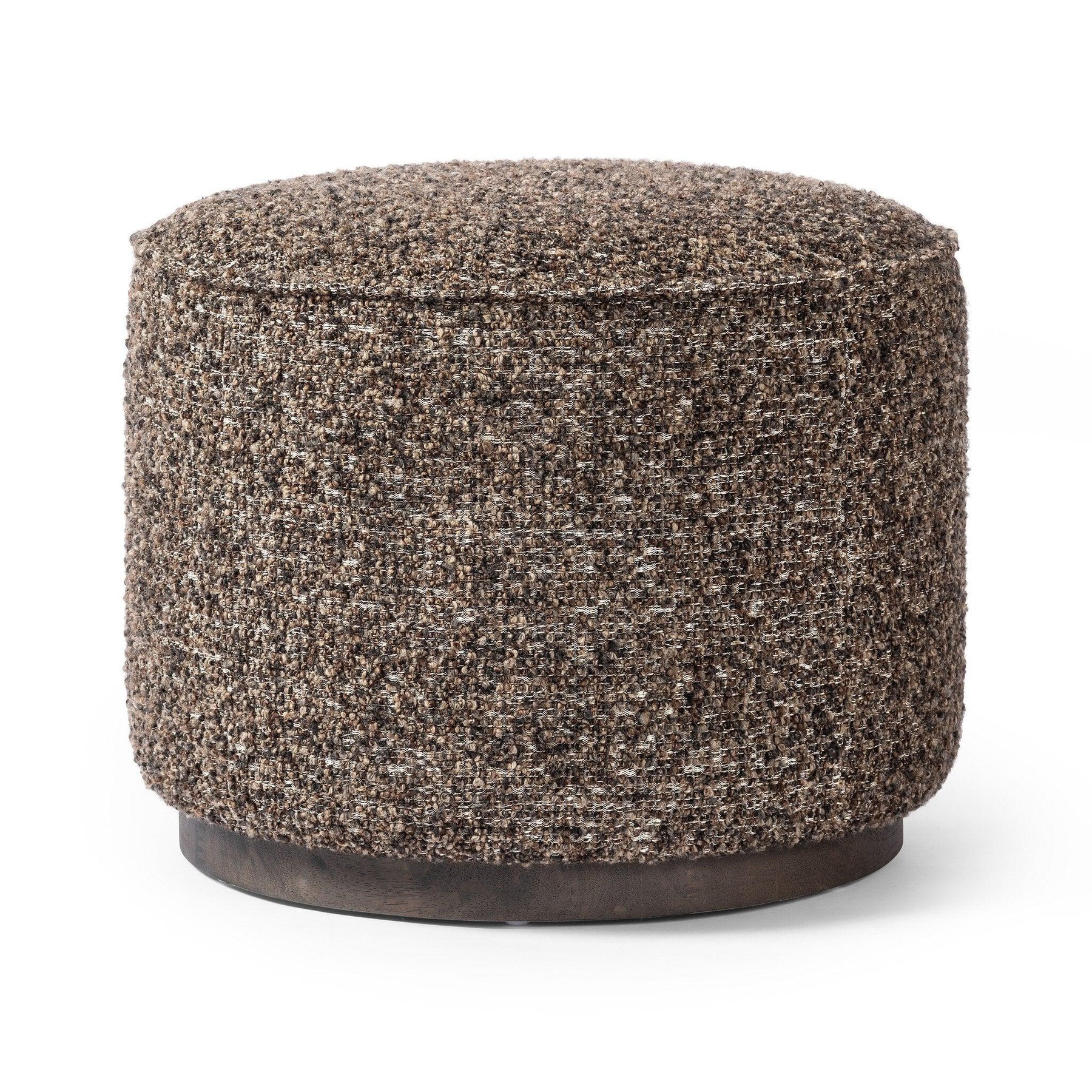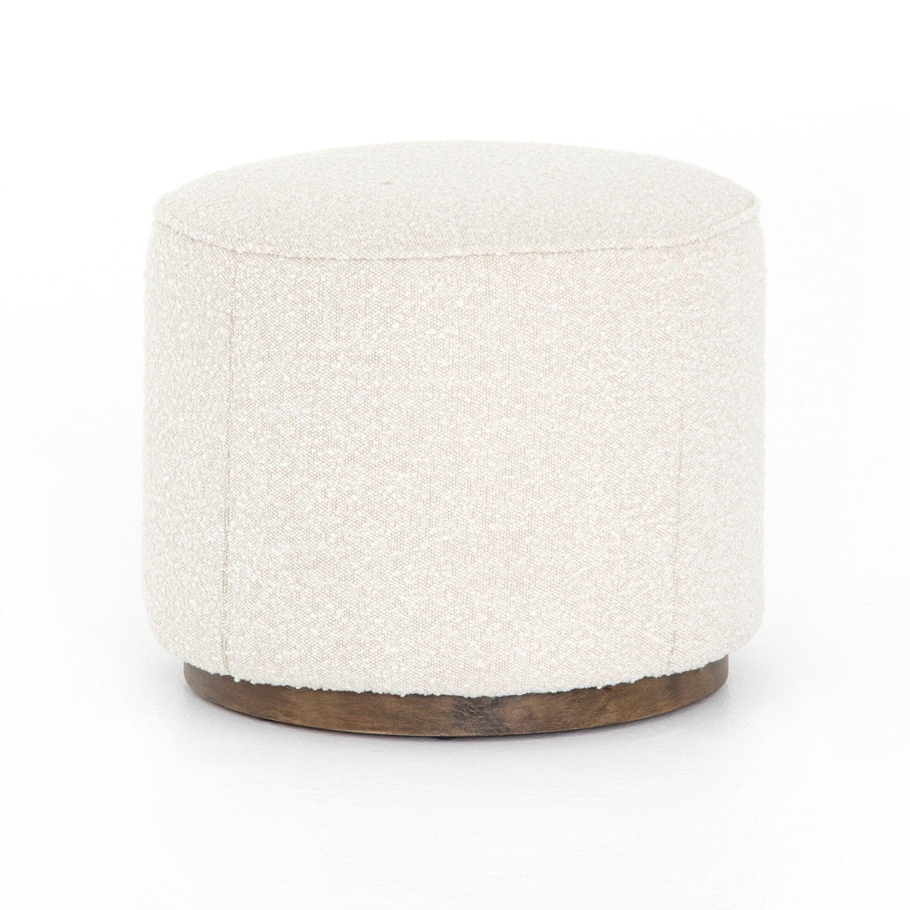 This round ottoman of textural upholstery can be placed just about anywhere bringing with it a hip retro vibe.