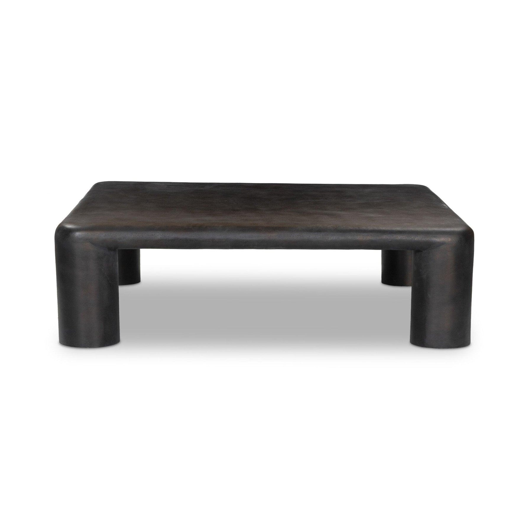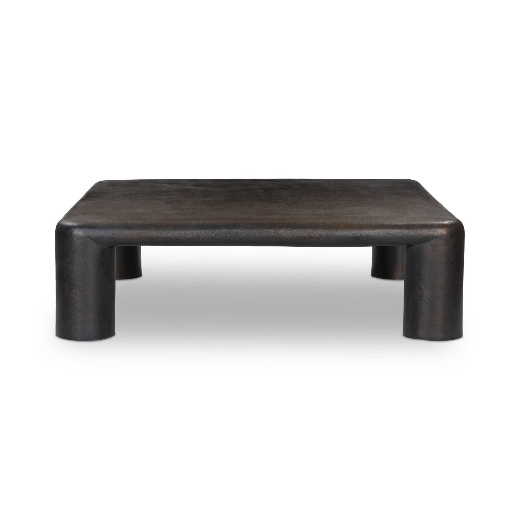 A seamless fluid form to center your space. Made from bronzed aluminum stocky legs square a smooth top for a luxe take on industrial.