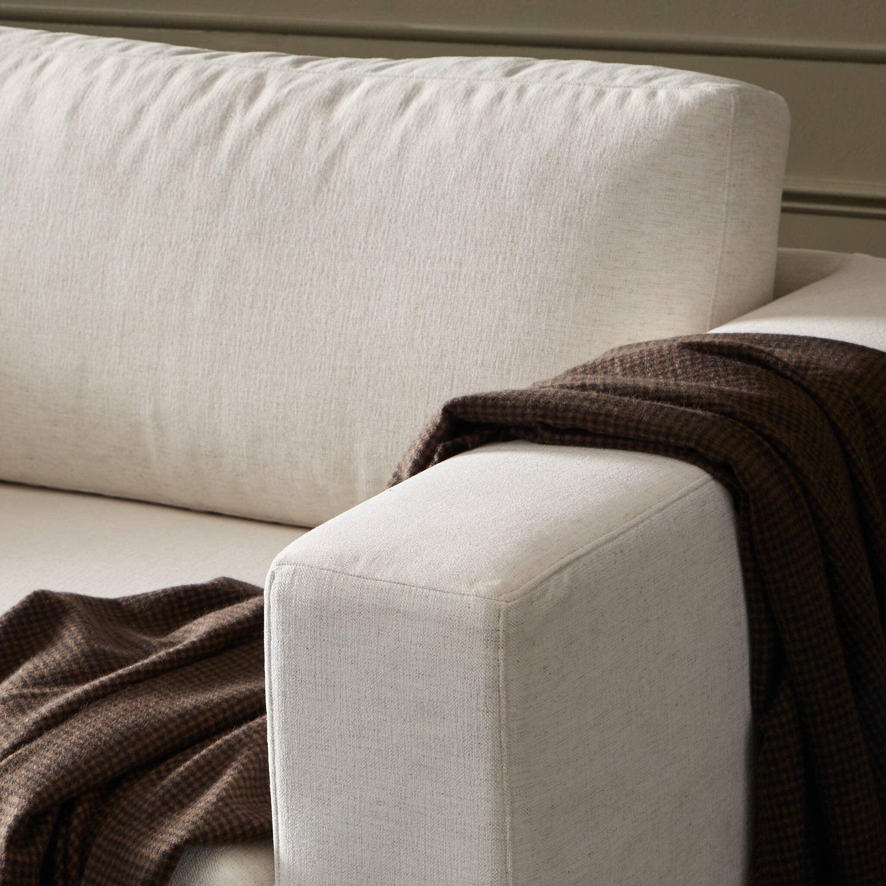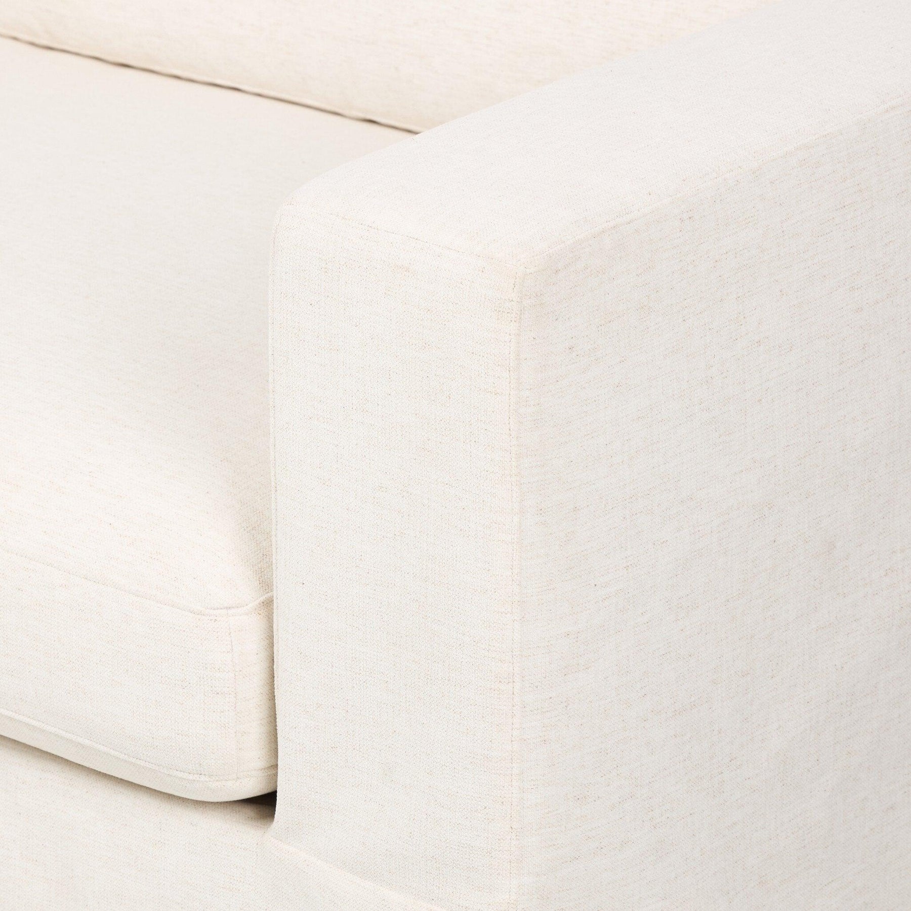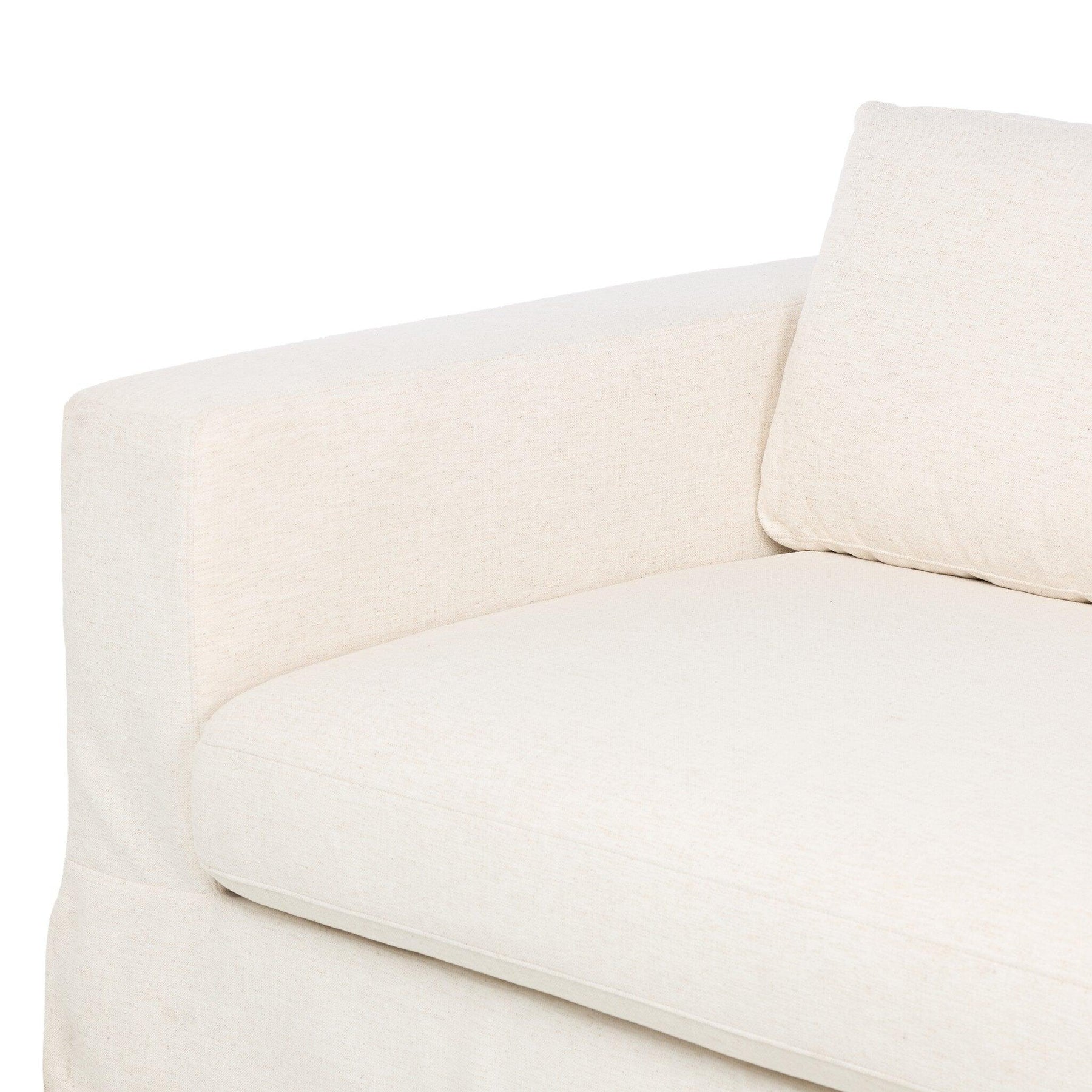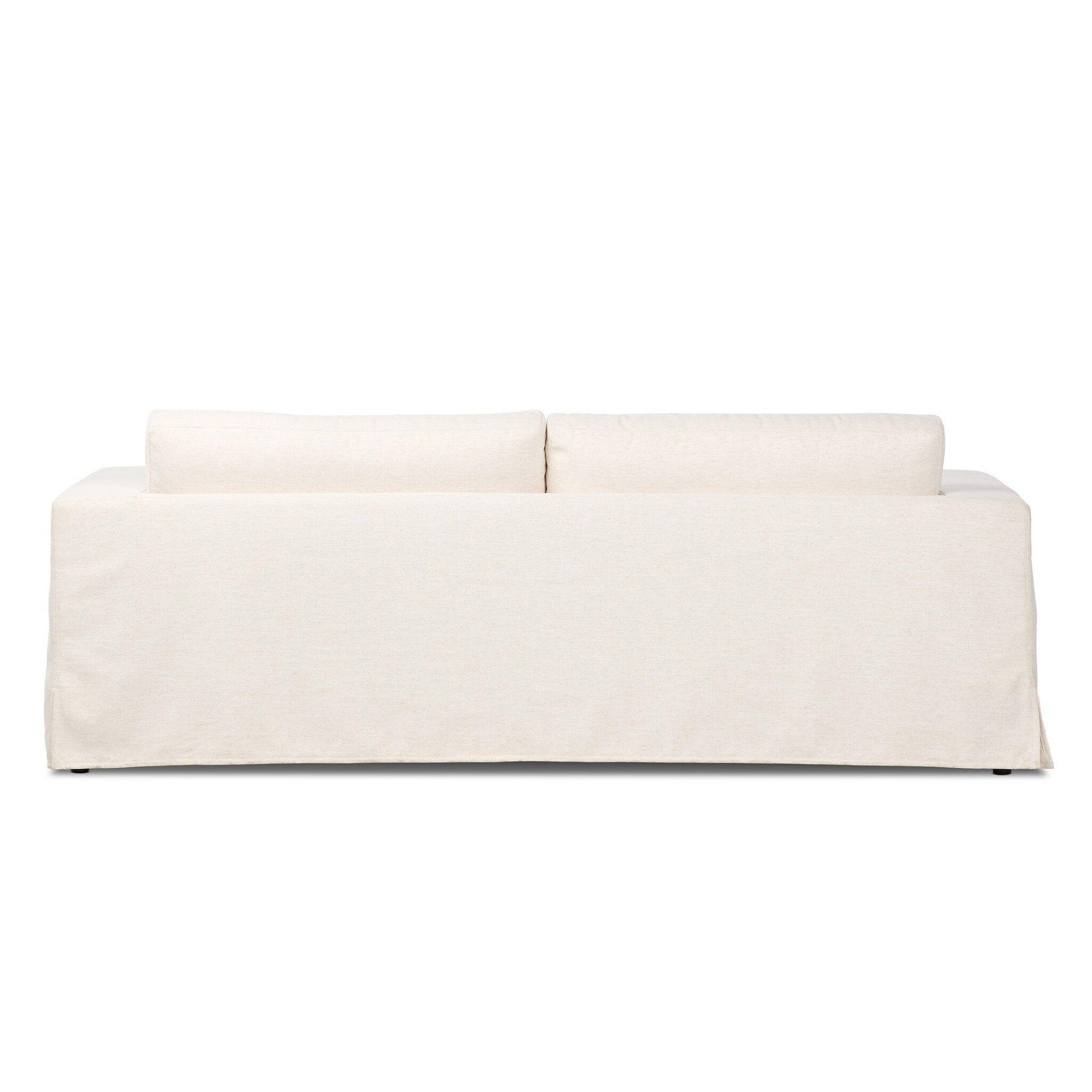 This relaxed slipcovered sofa brings a clean laid-back look to the living room. Deep pleats and a draped silhouette highlight the wide arms and oversized bench cushion offering inviting comfort with a clean modern aesthetic. Upholstered in snow-white Crypton® performance fabric the slipcover is non-removable to ensure its perfectly tailored look stays intact. Crypton® performance fabric is specially engineered for protection against stains moisture and odor.