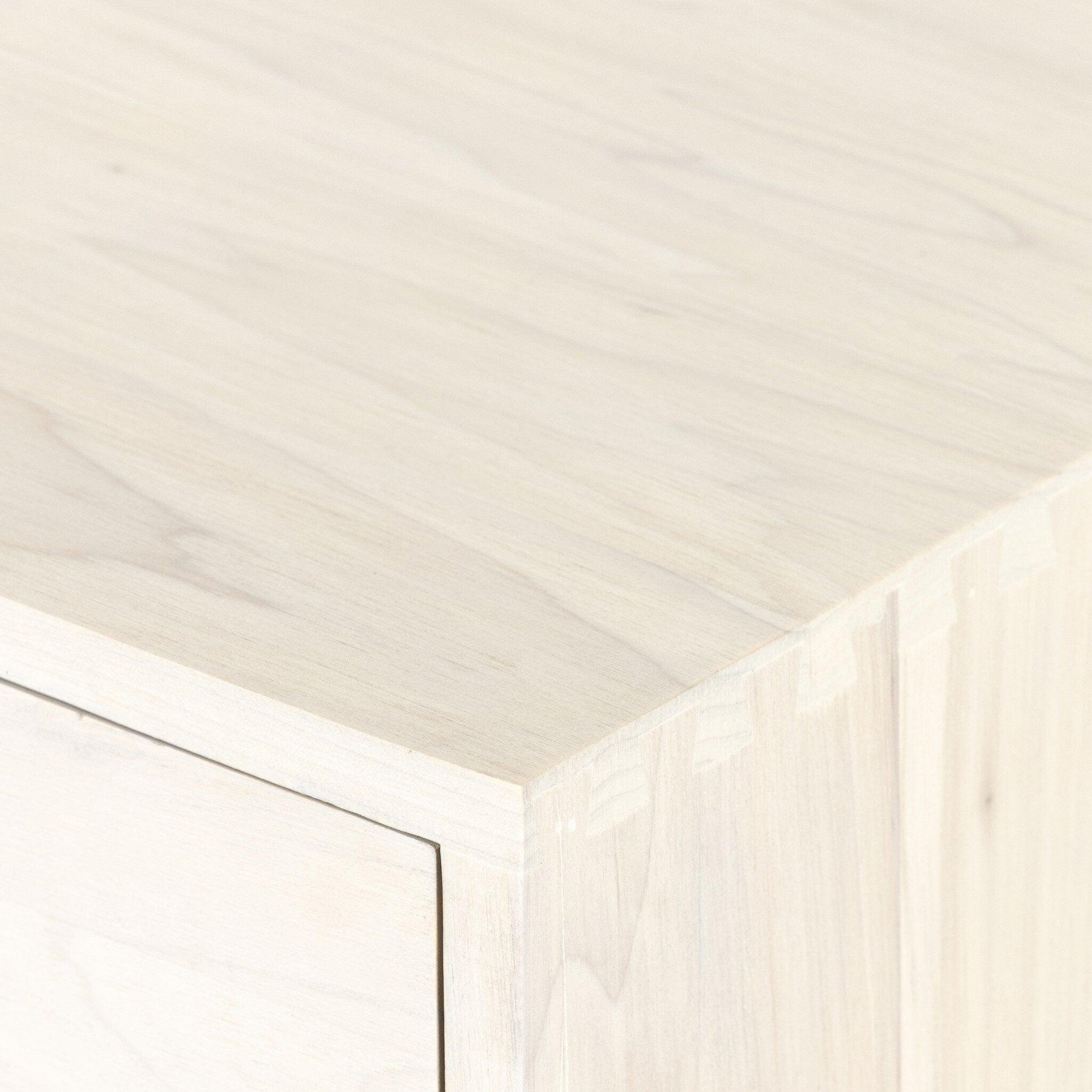 Simple style inspired by midcentury décor. Made from light-finished poplar a roomy three-drawer nightstand brings extra storage space to the bedside. Top-grain leather pulls add a textural finishing touch.