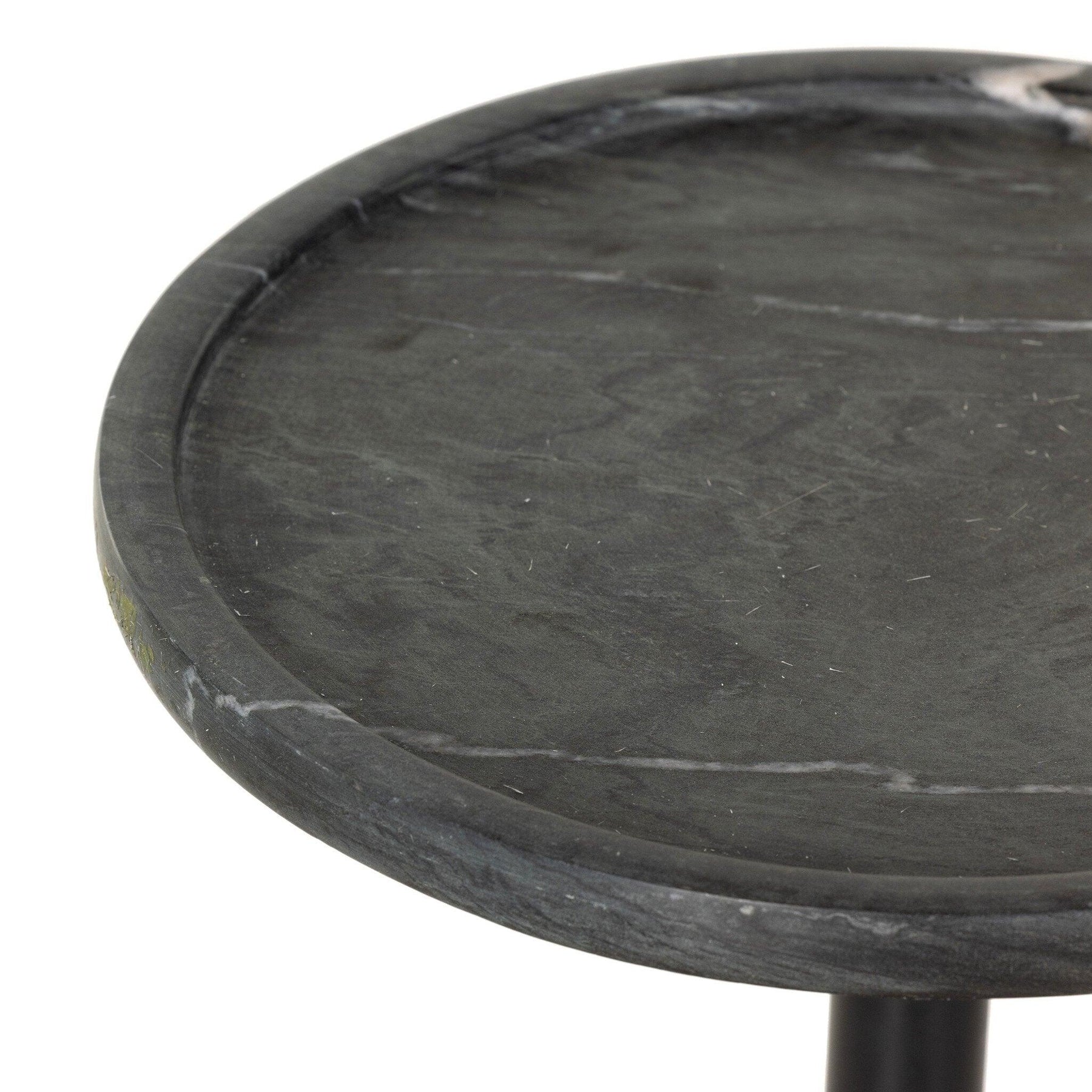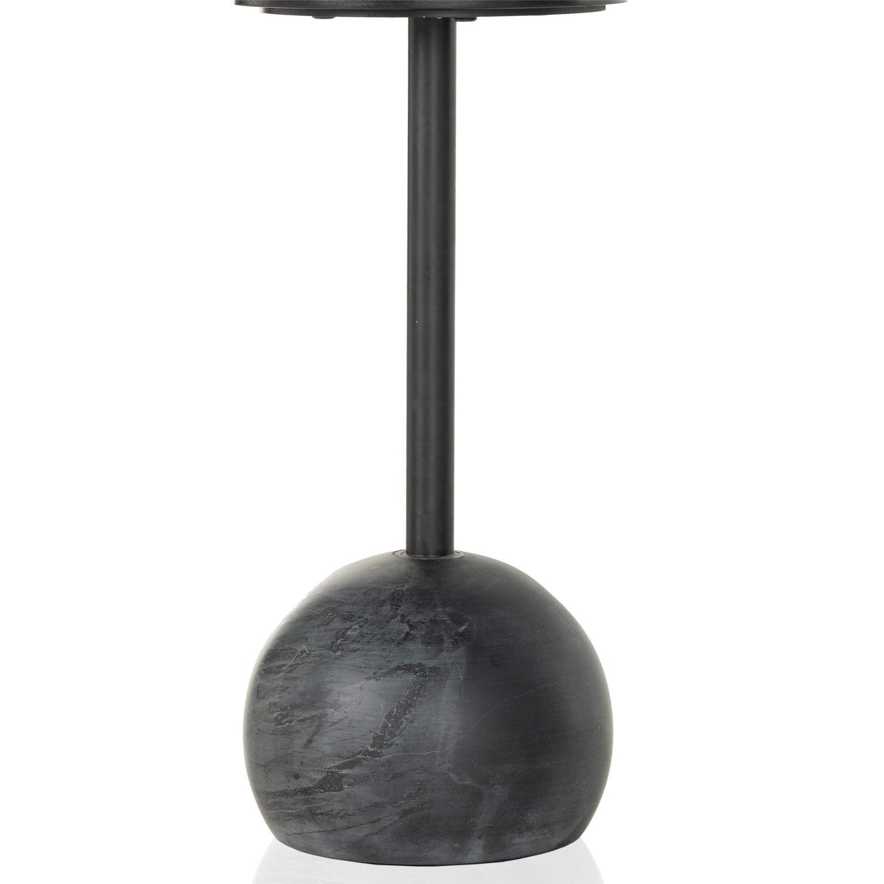 Layer in sophistication anywhere. A dramatically shaped base of white antique marble supports slim iron piping and rounded tray-style tabletop - the perfect place to perch a drink or favorite book.