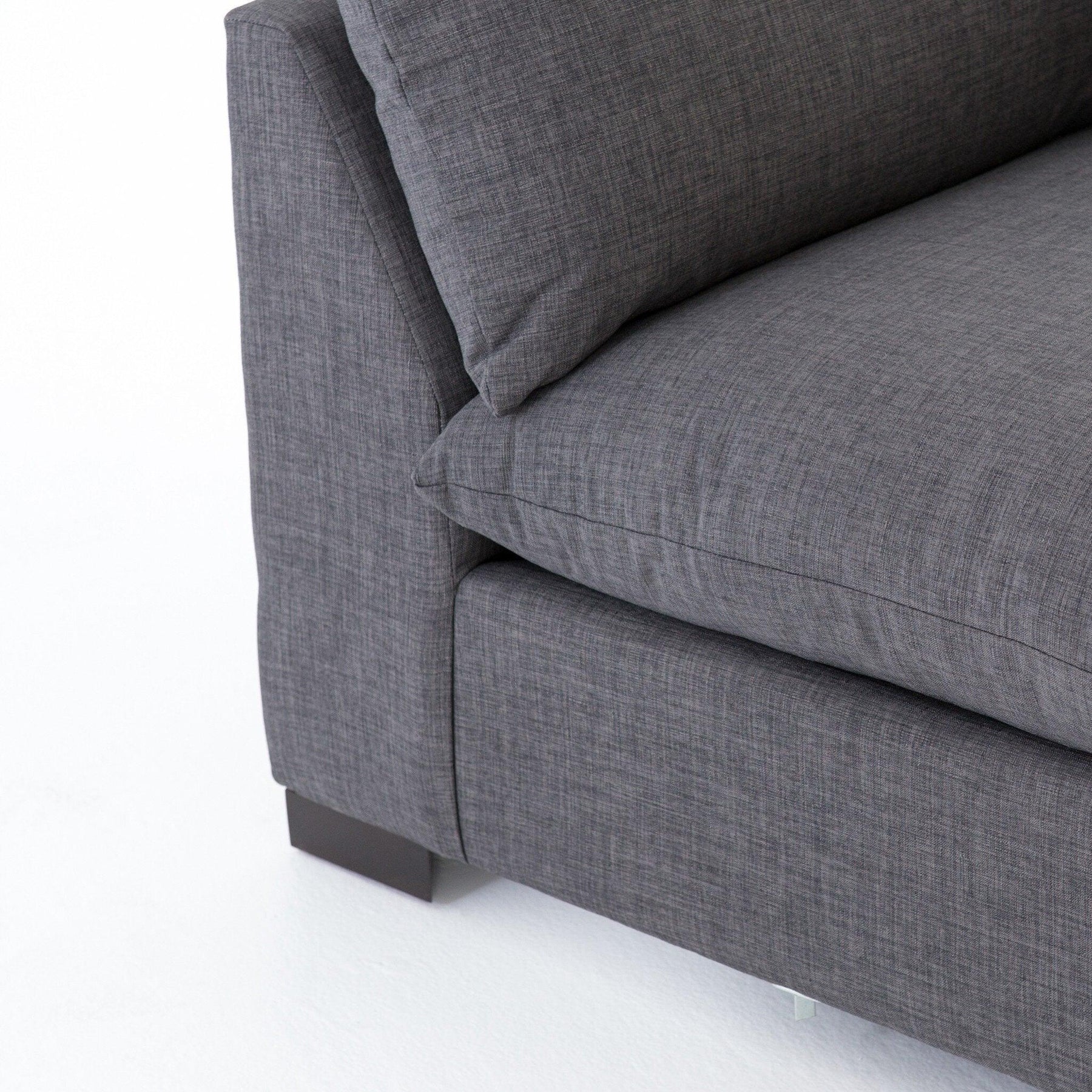 Luxurious comfort with a functional spin. Clean-lined and simply styled charcoal-toned upholstery and espresso-finished banak wood base keep things classy while casual. Various configurations offer flexibility to fit any size space.