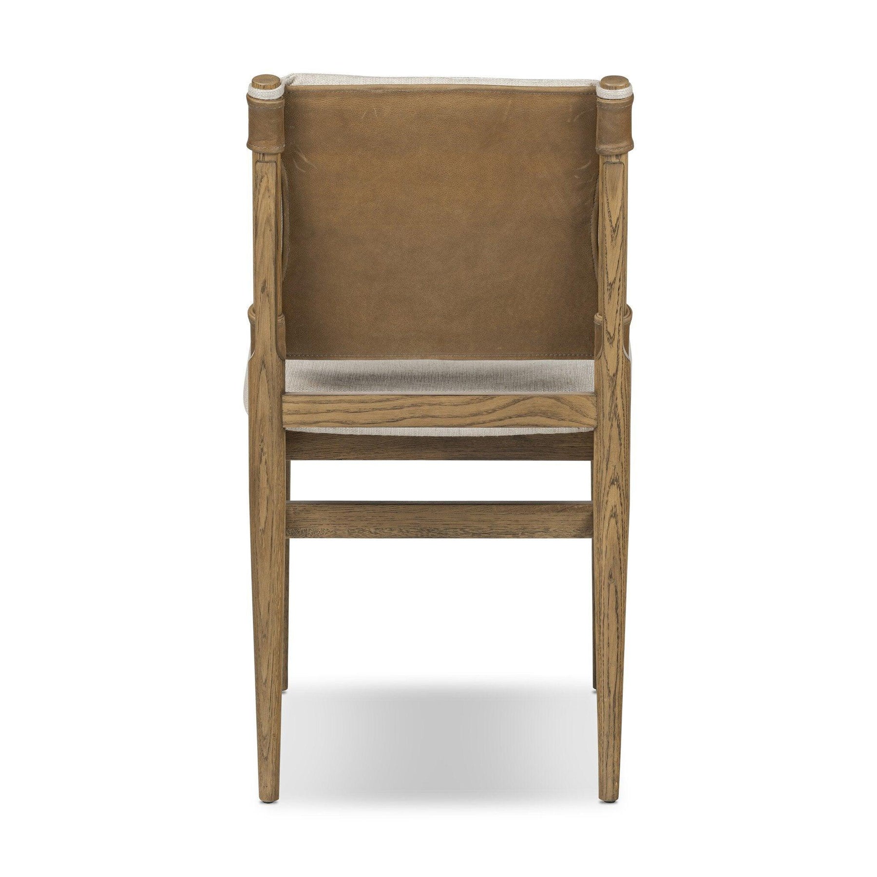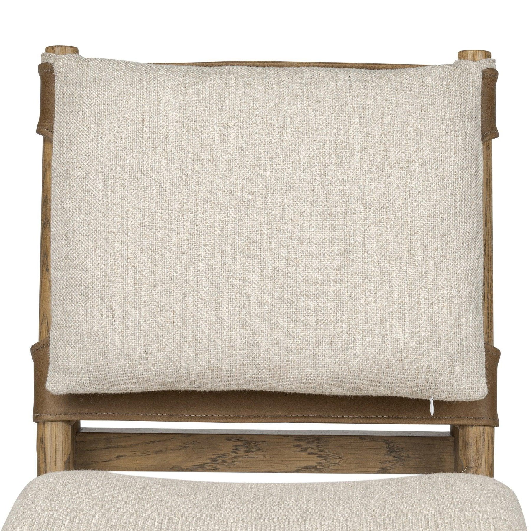 Smoked oak linen-like fabric and top-grain leather fuse in this material-driven dining chair inspired by midcentury decor. Pillow-format sling seatback features removable cushioning.