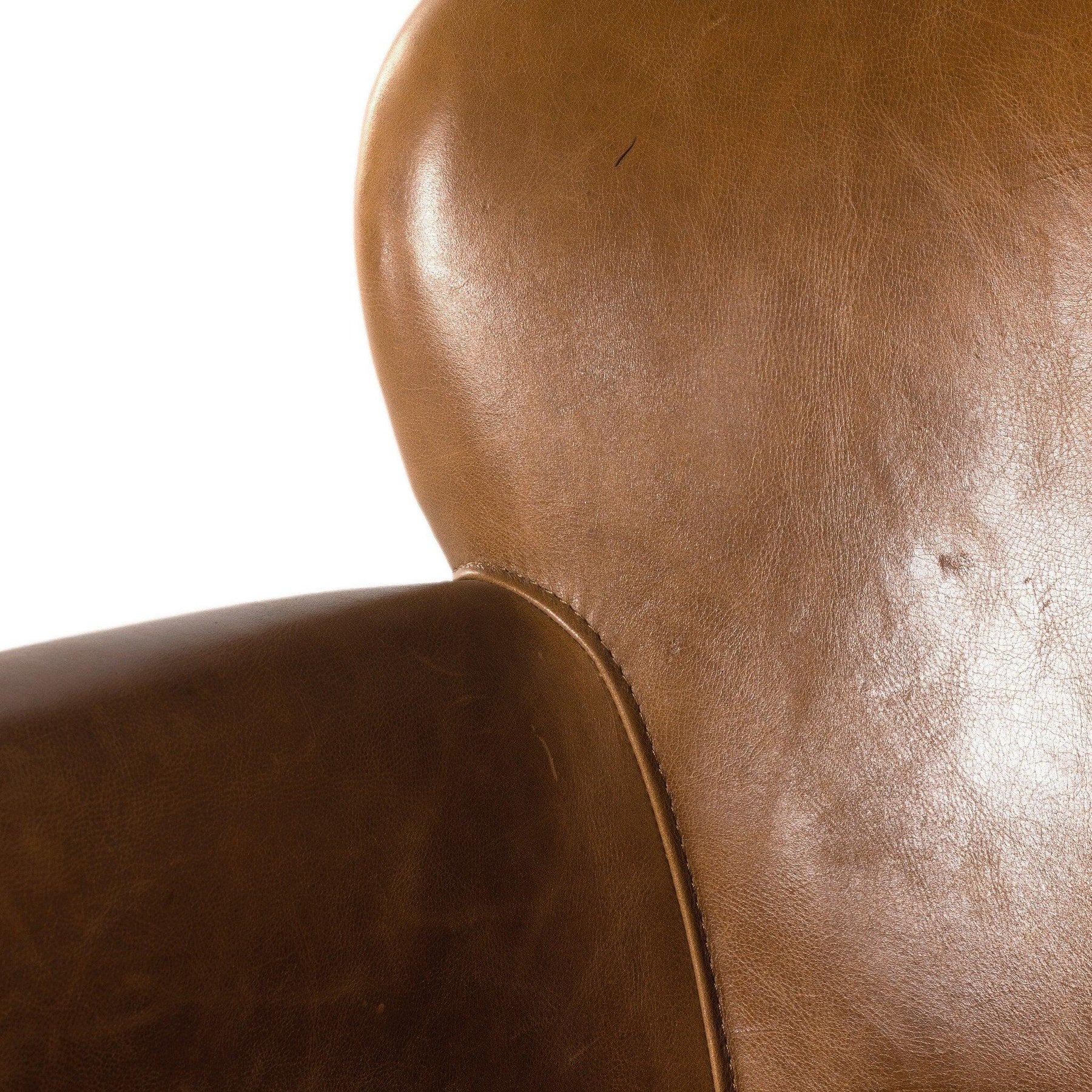 A statement seat all its own. This regal Parisian club chair is honored with a profound scooped back and rolled arms in classic lived in tan top-grain leather.