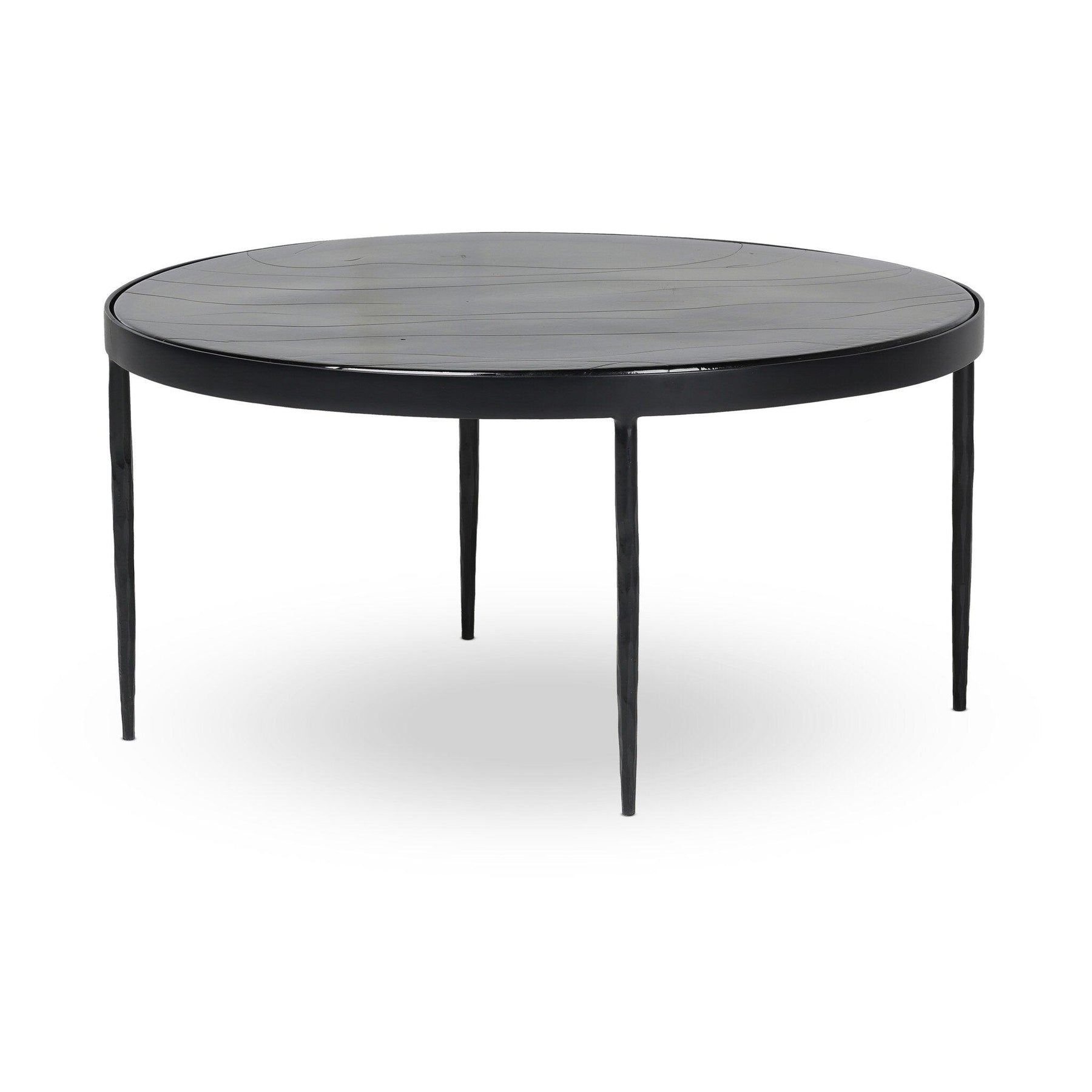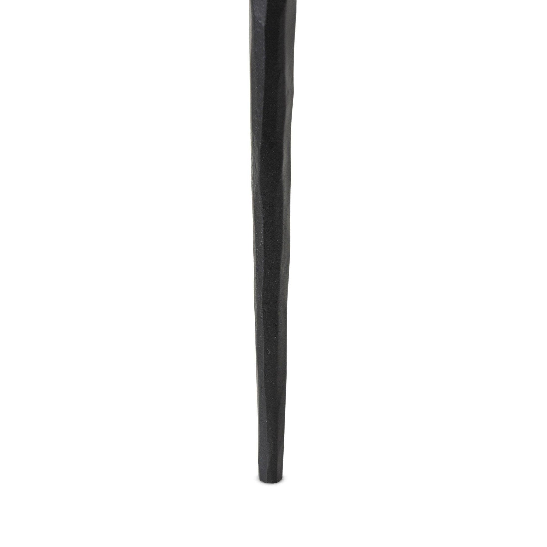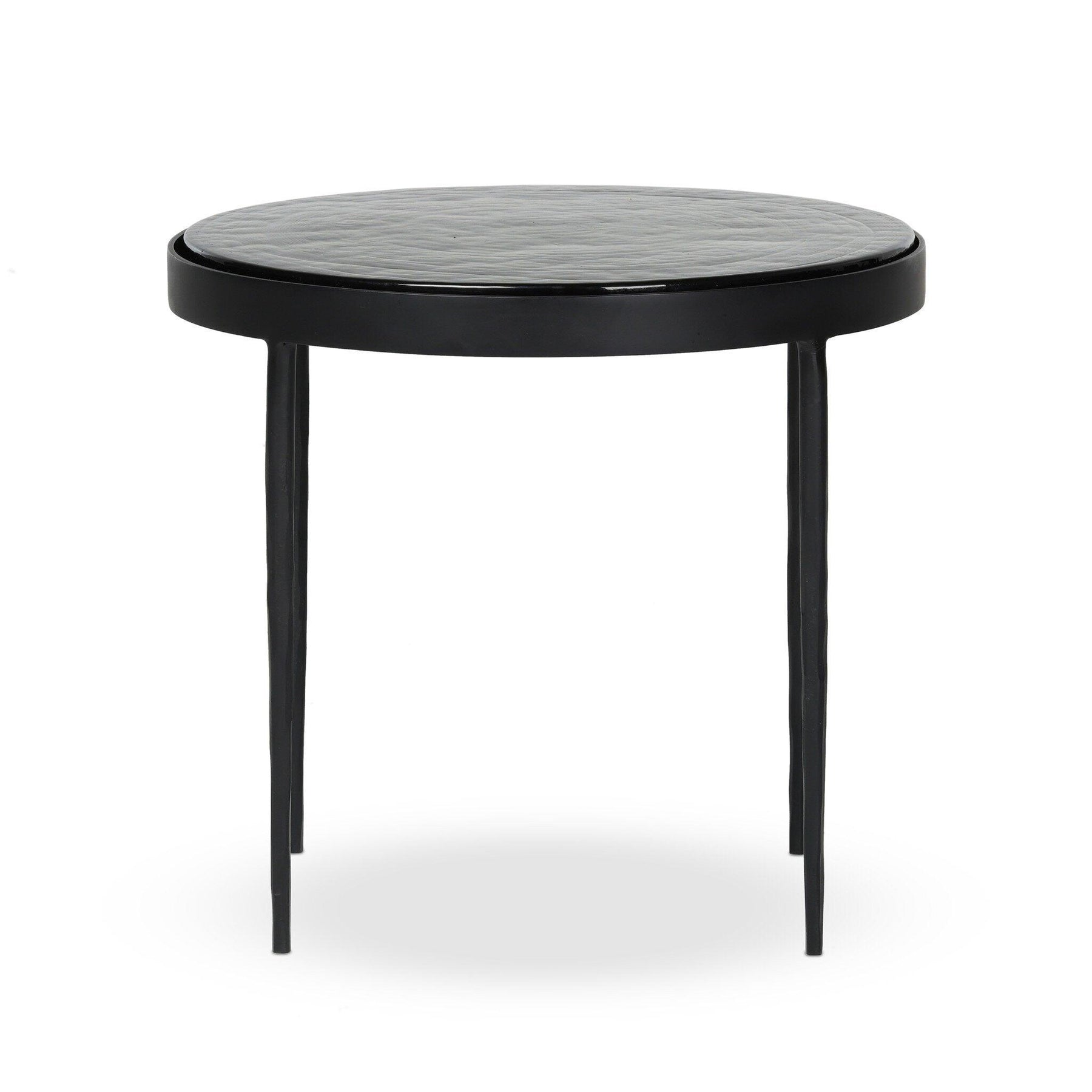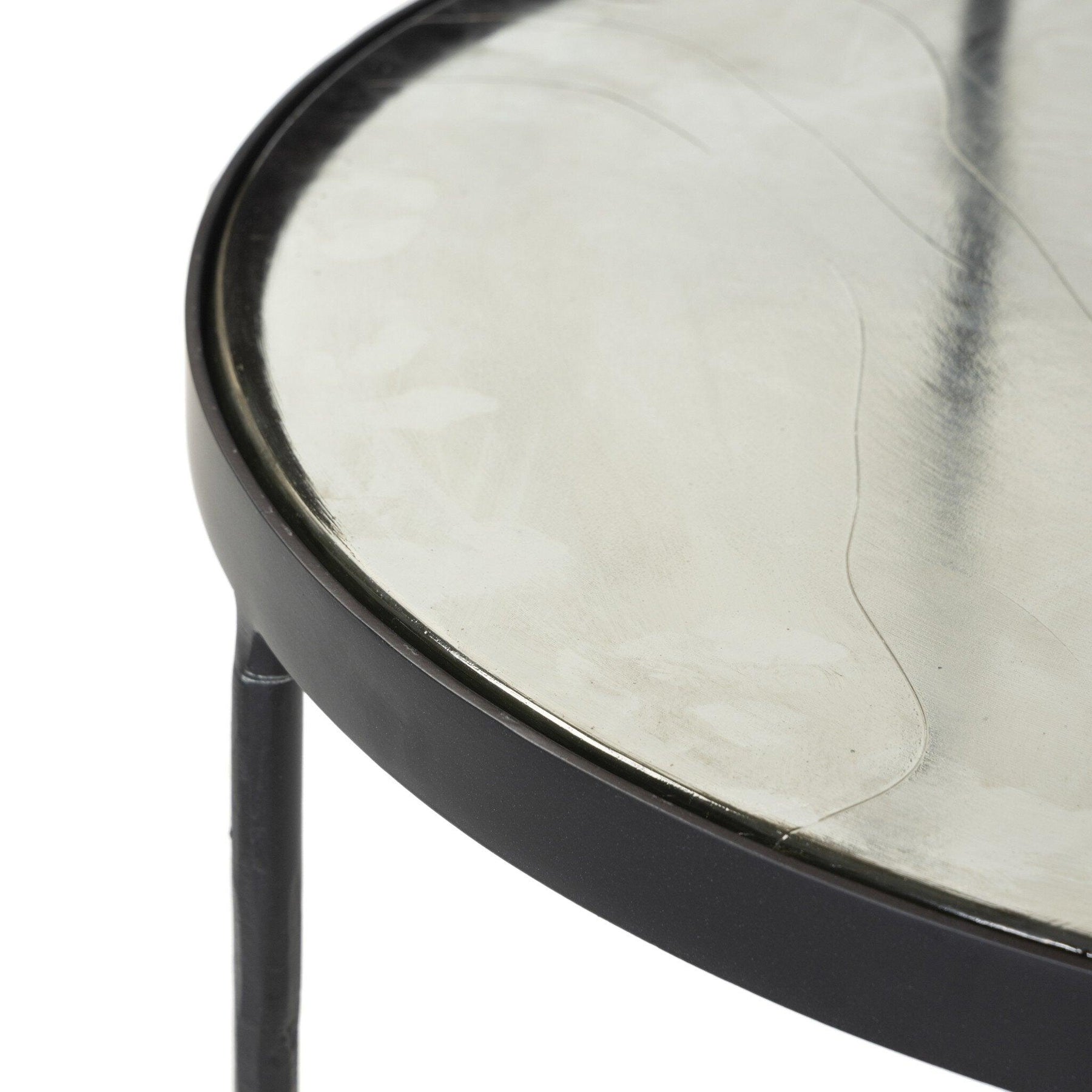 Clear cast glass tops slim tapered matte black metal frames in a sleek contemporary design. Available as a nesting set or standalone tables.
