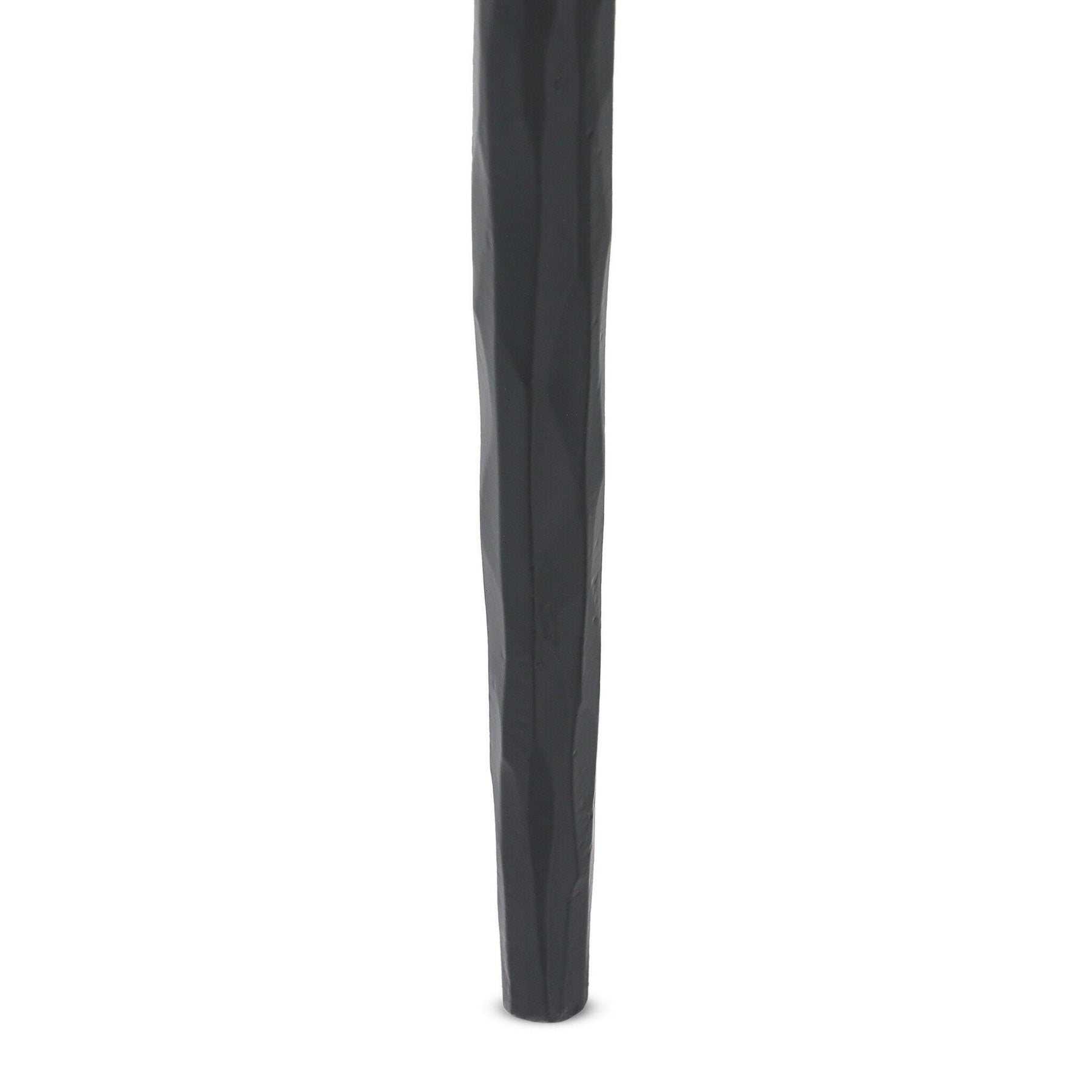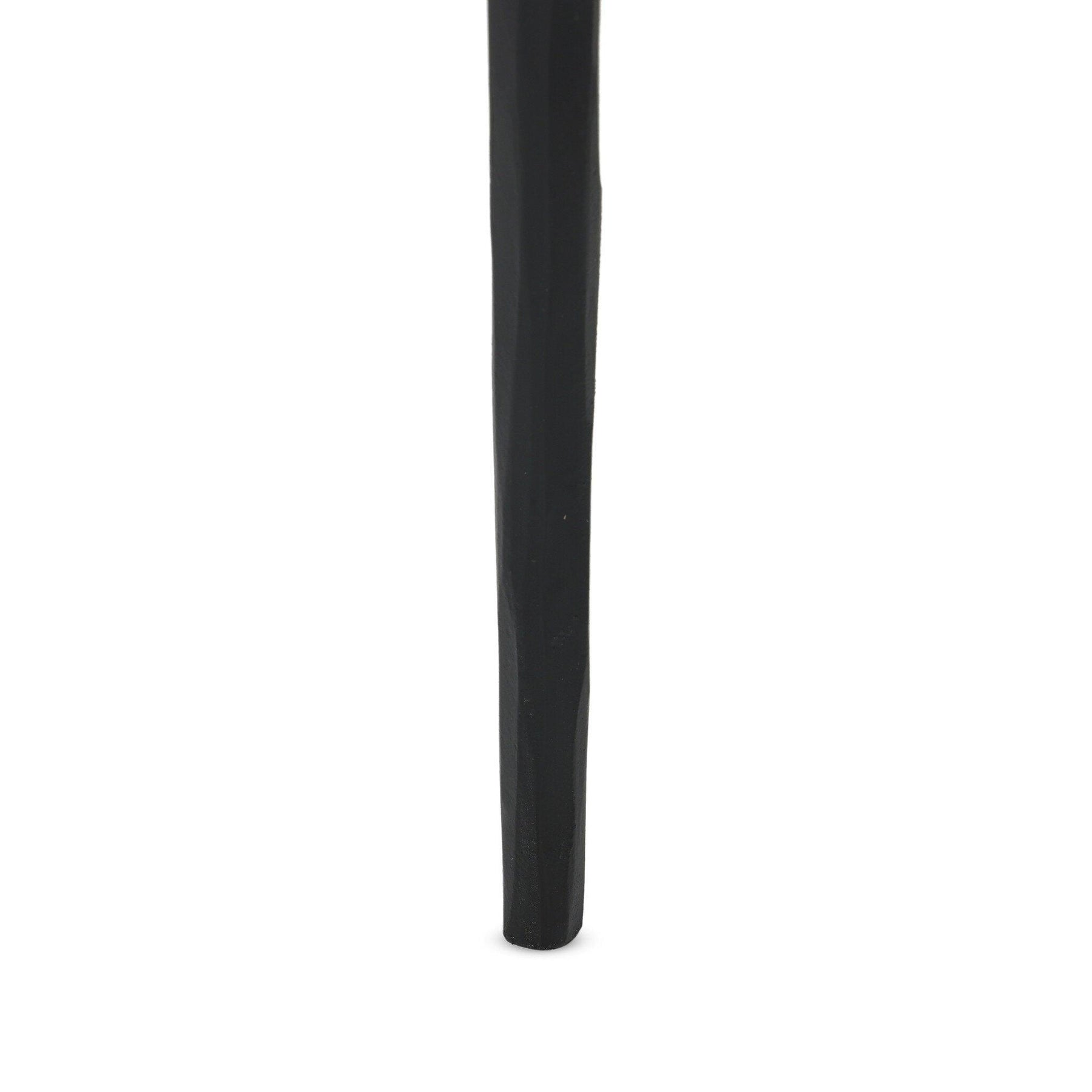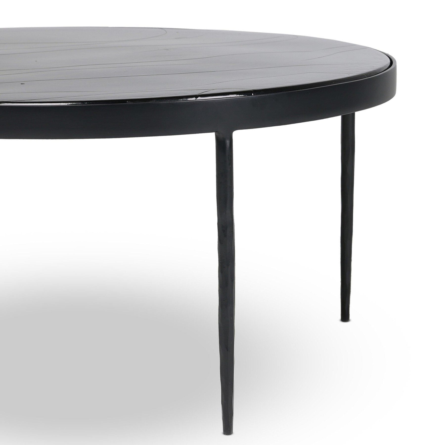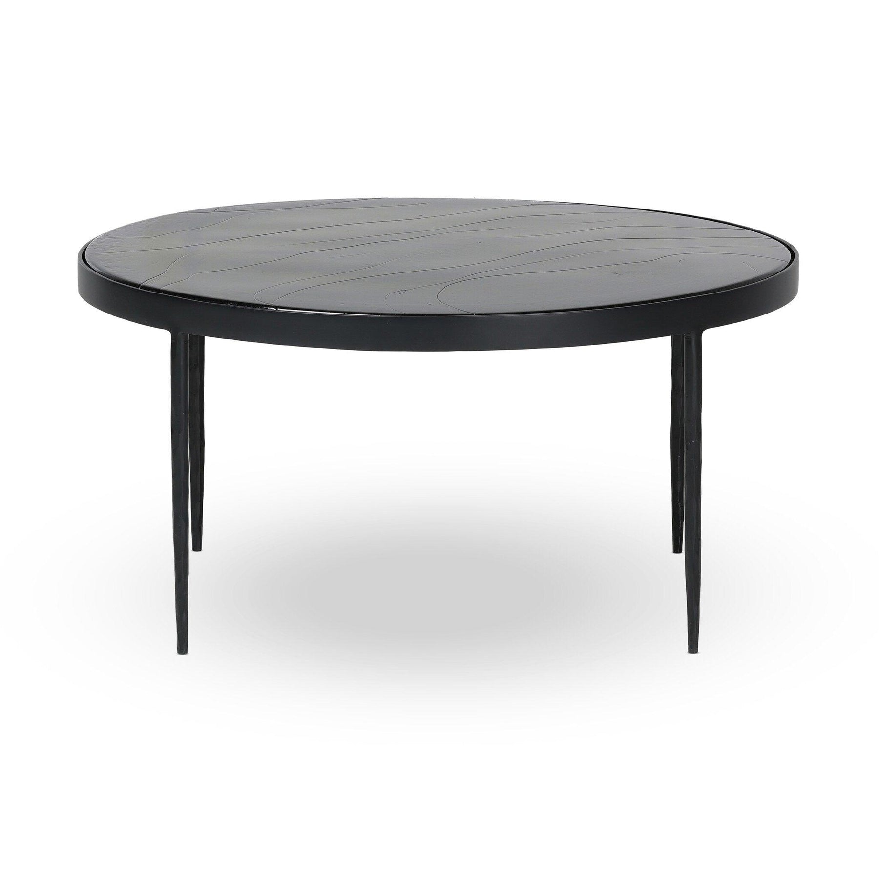 Clear cast glass tops slim tapered matte black metal frames in a sleek contemporary design. Available as a nesting set or standalone tables.