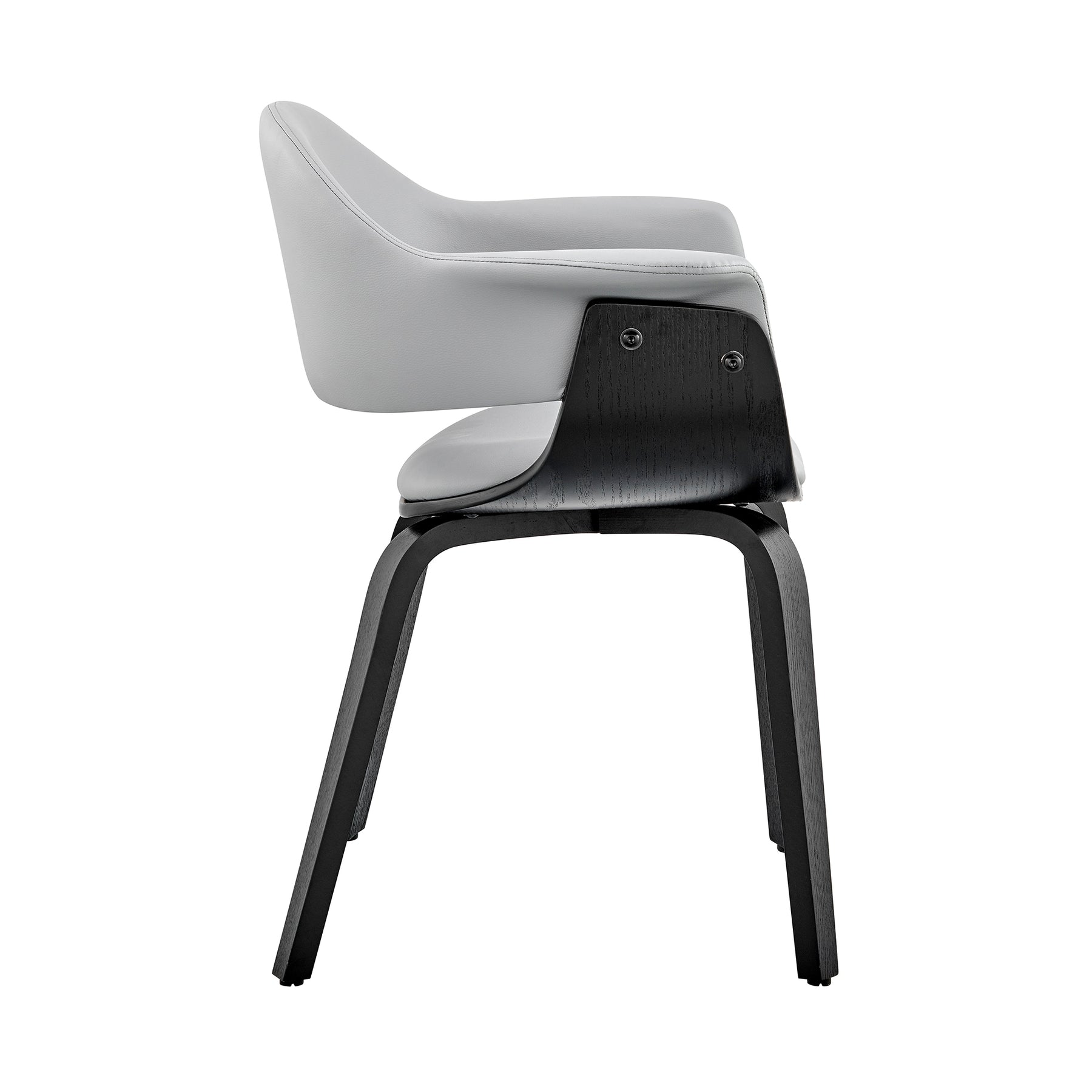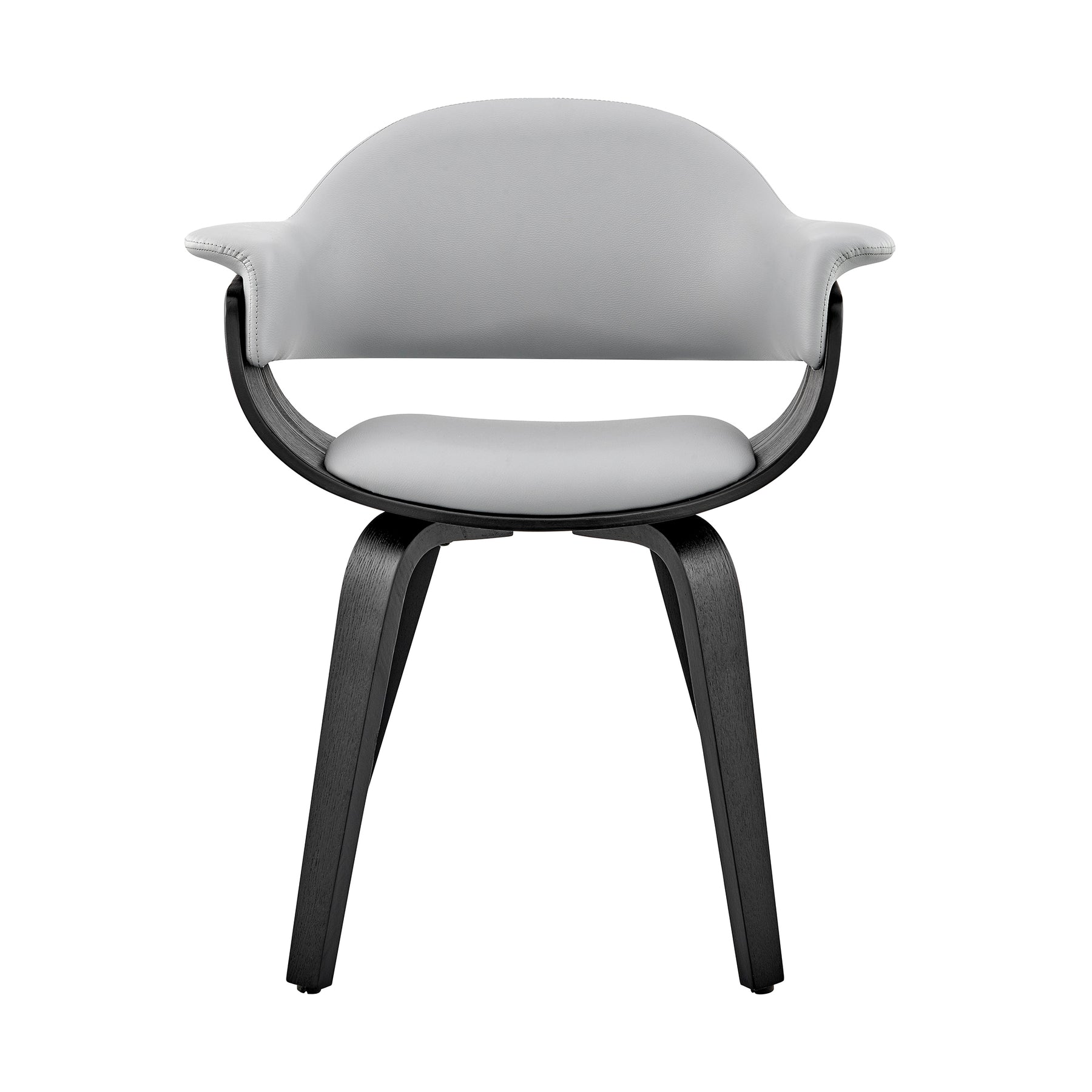 The Adalyn Black Faux Leather and Walnut Wood Dining Room Accent Chair from Armen Living is the perfect special and spacious seating option to bring into your living space. The open-back design offers breathable seating, combined with the soft foam padded cushion - this chair will make you want to stay seated all day long. The rich fabric is alluring and authentic, looking great, and performing well is what we offer to our customers with every product. Place this chair in any room of your home to help update your decor! The Adalyn accent chair is available in your color choice of Gray, cream, or black faux leather with walnut wood or gray faux leather with black wood.