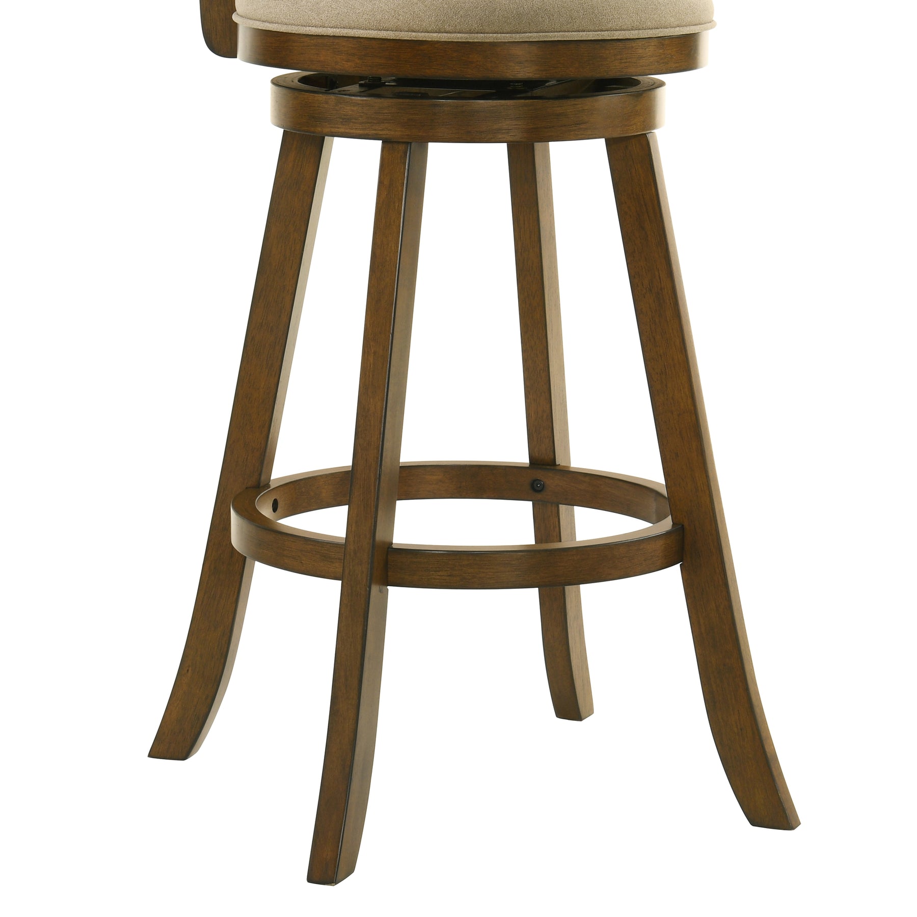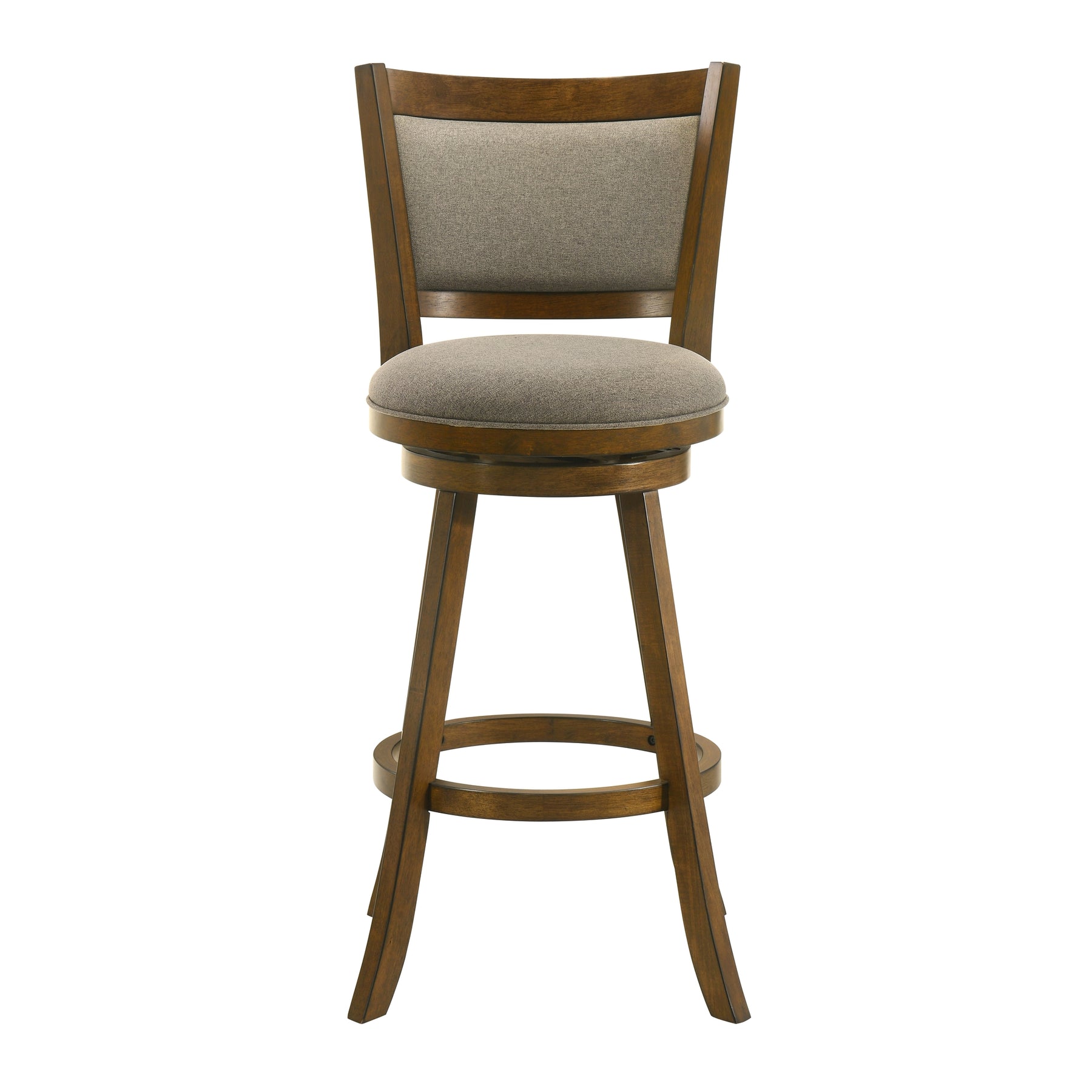 Elevate your dining or bar space with the inviting charm of the Aiden Swivel Stool Collection, a perfect blend of transitional farmhouse warmth and modern comfort. Designed with soft curves, natural materials, and a rich Sepia Brown wood finish, the Aiden stool brings timeless elegance and practicality to any home setting—whether styled around a cozy kitchen island or a polished entertainment area. Crafted from durable solid natural wood and finished in a smooth Sepia Brown tone, each stool highlights the natural wood grain and exudes organic appeal. The curved panel backrest provides ergonomic support, while the plush round seat delivers comfort through resilient, soft-to-touch fabric upholstery that holds up beautifully to daily use. Choose between Light Scone, a warm neutral for airy interiors, or Gray, a cool tone that adds sophistication and contrast. Available in both Counter Height and Bar Height, the Aiden stool offers flexibility for various seating arrangements. A smooth 360-degree swivel mechanism ensures effortless rotation, making it ideal for casual dining, entertaining guests, or enjoying morning coffee. A built-in circular footrest and sturdy flared legs enhance balance and comfort, while the polyester-blend performance fabric combines tactile softness with dependable durability—without feeling synthetic. Combining timeless form with practical function, the Aiden stool requires only minimal assembly and includes a 1-year limited manufacturer warranty for peace of mind. Designed to adapt seamlessly to both rustic and contemporary interiors, it’s a lasting investment in comfort and craftsmanship.