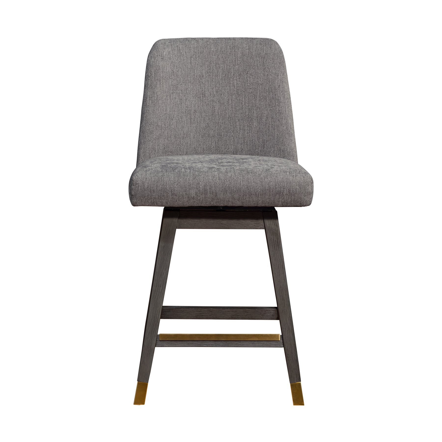 The classic style of the Amalie Bar or Counter Stool in Wood with Fabric Upholstery is available in multiple color choices. This kitchen barstool makes a beautiful addition to any home or apartment. Counter or bar height stools are an easy upgrade to make if you’re remodeling or an easy fix if you’re moving and haven’t purchased your dining room furniture yet. The Amalie counter or bar height stools feature a sturdy wood 4 leg base constructed from rubberwood. Rubberwood is a durable hardwood belonging to the maple family. Its dense grain character makes it a stable construction material that is naturally resistant to fungus and bacteria. The polyester upholstery really helps these wood bar stools stand out. The long-term durability of polyester makes it an ideal choice of stool upholstery fabric for families with children and pets. Polyester upholstery is water repellent, stain resistant, budget friendly, and less prone to discoloration. The soft upholstery of this swivel bar stool creates a convenient combination of comfort and function. The Amalie stool features gray or taupe options in boucle fabric. The fuzzy nature or boucle? means its pairs perfectly with curved or rounded pieces like asymmetrical sofas, armchairs, and of course the Amalie bar stool. The 360-degree swivel seat allows you to swivel either way with full mobility. The Amalie stool is available in your choice of a 26 inch or 30 inch seat height and comes in a gray oak wood finish with boucle gray or mocha upholstery or a brown oak wood finish with boucle taupe or beige fabric upholstery.