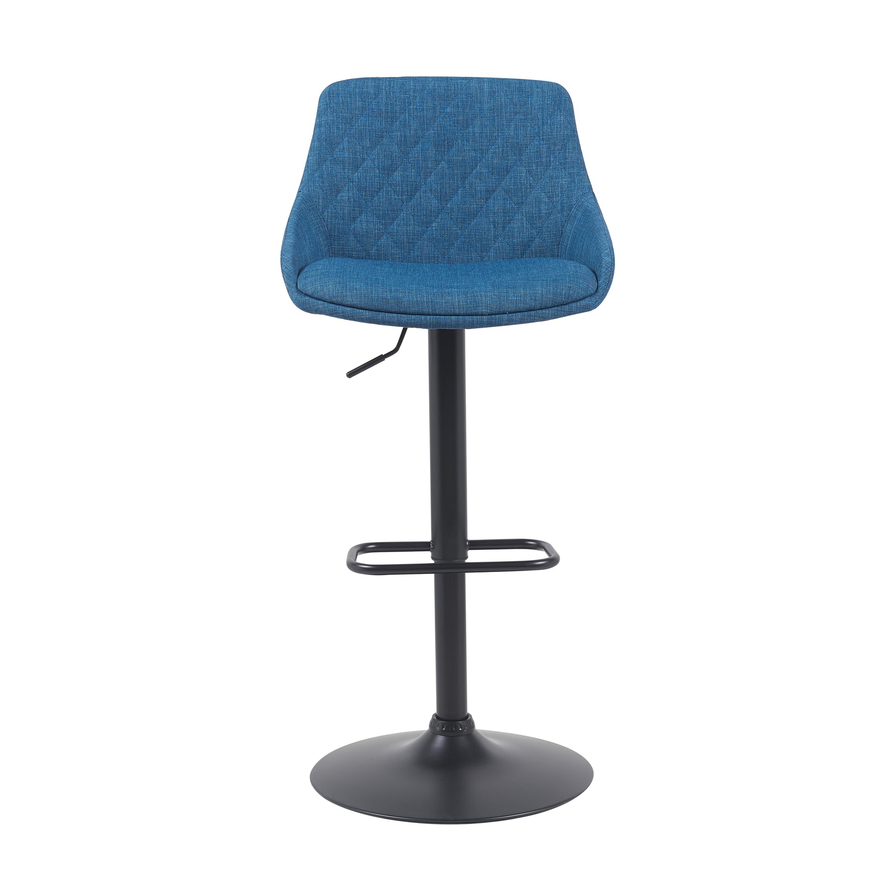 Elevate your everyday seating experience with the Anibal Swivel Adjustable Barstool—a sleek, versatile, and comfort-forward solution for modern living. Whether you’re entertaining at your home bar, enjoying a casual breakfast at your kitchen island, or creating a conversation nook, the Anibal offers a stylish blend of mid-century elegance and functional design. This armless adjustable stool features a supportive, curved backrest and a plush padded seat, designed to deliver ergonomic comfort without taking up extra space. Upholstered in your choice of smooth gray faux leather or textured blue fabric, the Anibal adds refined contrast or vibrant personality depending on your design aesthetic. Its diamond-stitched backrest creates a tailored look that elevates any setting, while the 360-degree swivel and adjustable height mechanism give you full control over positioning and movement. The matte black pedestal base is finished with a wide, round foot and square footrest for added support and visual balance. Designed with both form and function in mind, the Anibal is ideal for dynamic environments where flexibility, comfort, and clean lines are key. Whether your home leans industrial, modern farmhouse, or urban chic, this stool blends effortlessly while enhancing your space with thoughtful detailing and exceptional comfort.