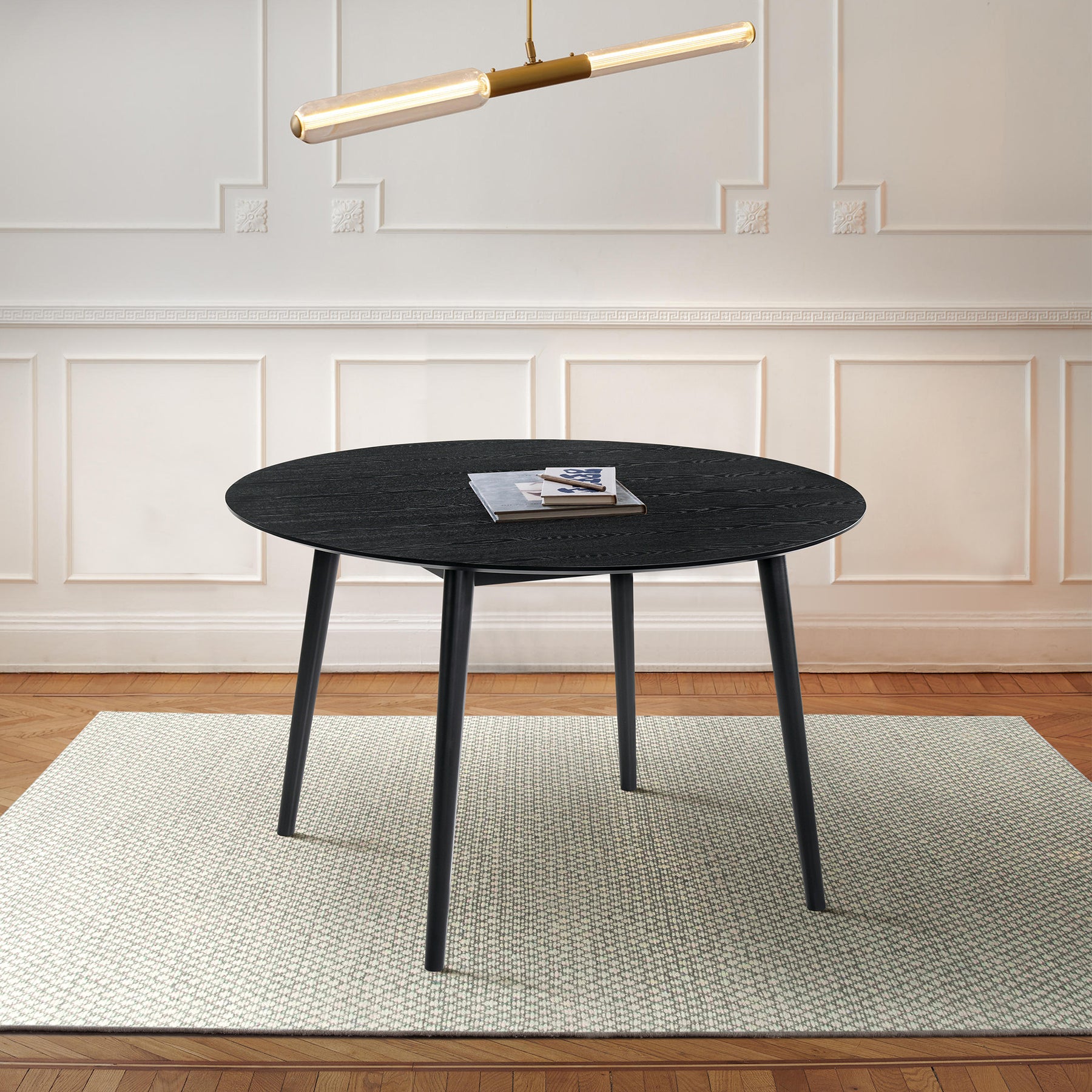 The Arcadia 48" Round Dining Table in Black Wood offers a clean and simple aesthetic that is stylish and functional. Hints of Scandinavian design and a mid-century modern feel come together to create the perfect space to share a meal with friends and family. Round tables are great because they can accommodate the most people. It's easy to squeeze in an extra table setting or two where there aren't any corners! They're better for small rooms or rooms that aren't square, as their rounded edges help create easy flow through the room. Circular tables are perfect for small gatherings and make an intimate and cozy setting for conversation, the Arcadia is ideal for your eat in kitchen or dining room. The Arcadia round dining table is available in your choice of a 42" or 48" size and a black or walnut wood finish.
