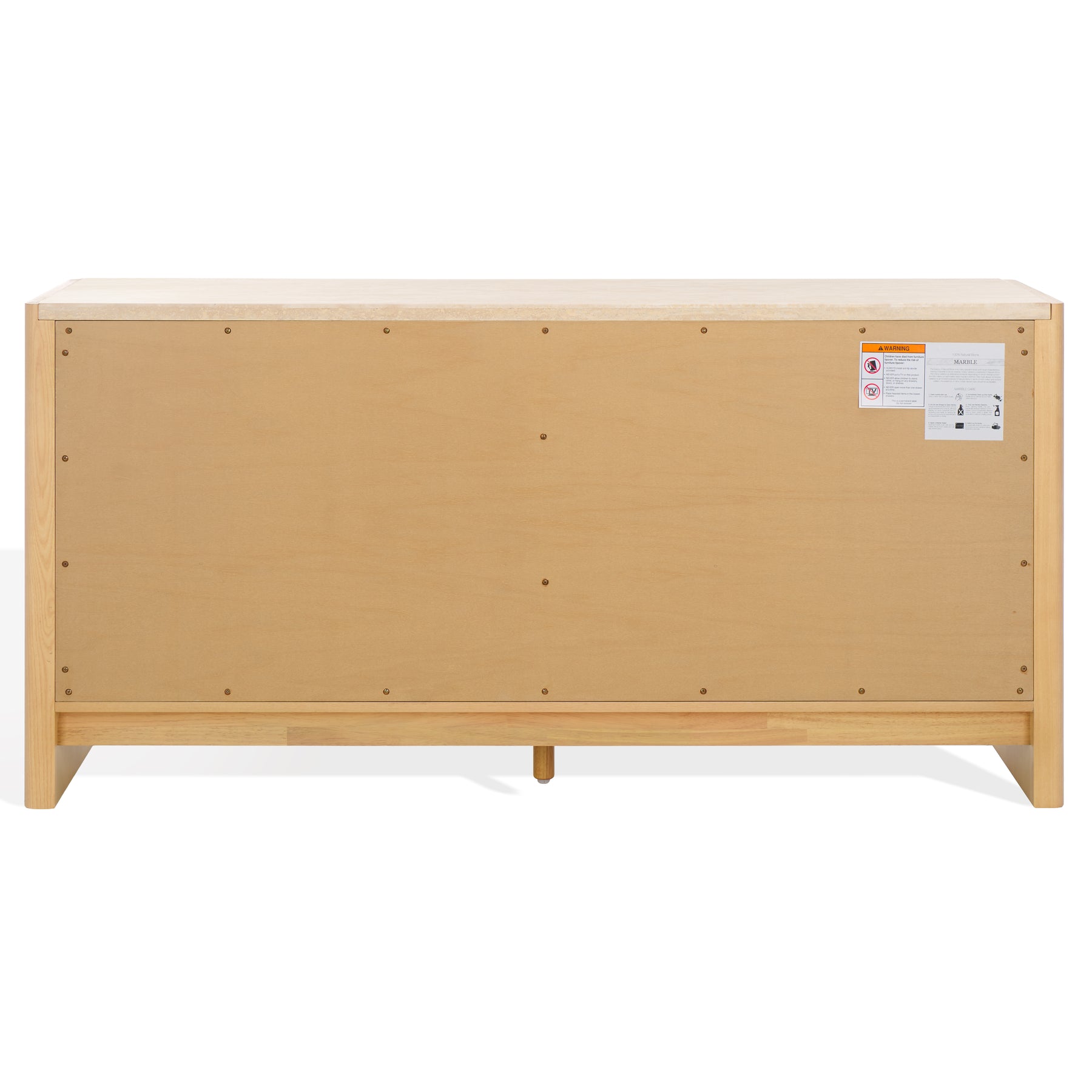 Enliven your space with the natural warmth and elegance of our Bellarose Dresser. The sleek and modern profile of the dresser is elevated with a luxe mix of materials. It's clean lines and minimalist profile is grounded with rich textures. The earthy tones and distress marks of its travertine veneer appealingly complement the natural warmth of ashwood. Offering a warm and neutral palette, the dresser serves as a versatile and sophisticated addition to your bedroom. It features six roomy drawers to keep all your clothes and linens organized.