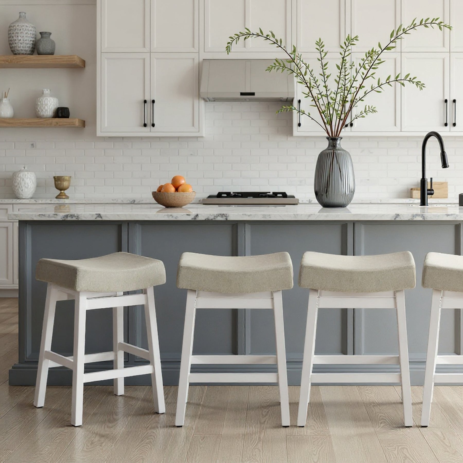 Bring a refined sense of simplicity to your dining or bar space with the Lenon Barstool Collection, where natural warmth meets modern practicality. Crafted from durable solid natural wood, the Lenon stool combines clean lines with ergonomic comfort, offering a timeless design that easily complements both farmhouse and transitional interiors. Its saddle-style seat features a subtle contour that cradles the body, ensuring comfort and stability even during long meals or casual gatherings. Available in two thoughtful combinations — Amber Glow finish with Twilight Taupe upholstery and White finish with Dune Cloud upholstery — the Lenon collection effortlessly adapts to any setting. The neutral performance fabrics resist wear, fading, and stains, maintaining a fresh, inviting look that lasts for years. Designed with a backless and armless silhouette, these stools tuck neatly beneath counters, helping you save space without sacrificing style. The sturdy four-leg base with integrated footrests offers dependable support, while the solid natural wood construction provides natural strength and stability. Each stool undergoes a smooth finishing process, highlighting the wood’s character and texture for a handcrafted aesthetic. The combination of solid craftsmanship and soft performance upholstery makes the Lenon an easy choice for homeowners who value both elegance and everyday functionality. Offered in both counter height and bar height, these stools are versatile enough for a kitchen island, breakfast nook, or entertainment bar. With a minimal assembly process and a 1-year limited manufacturer warranty, the Lenon collection is designed for seamless integration into your home — durable, comfortable, and beautifully understated.