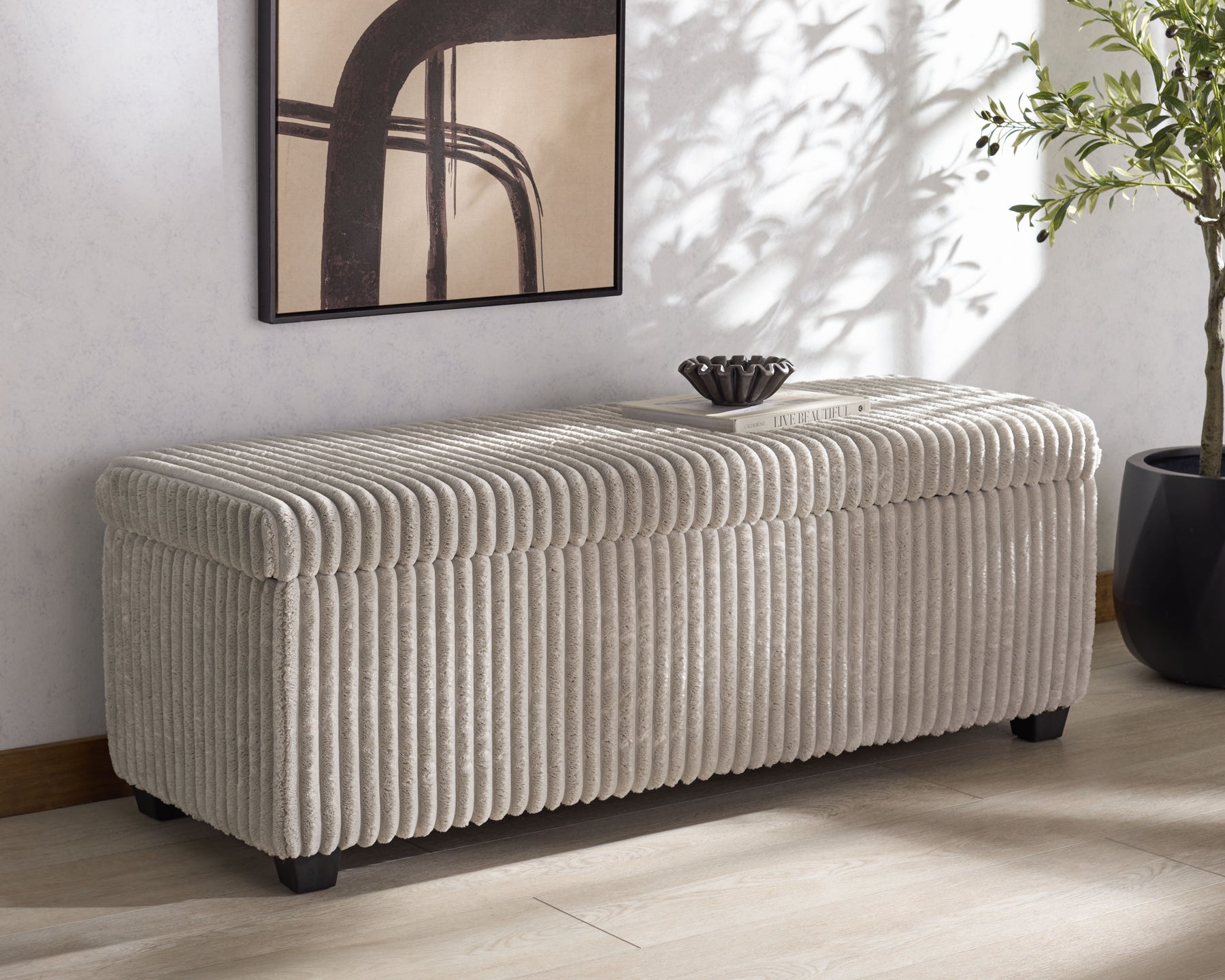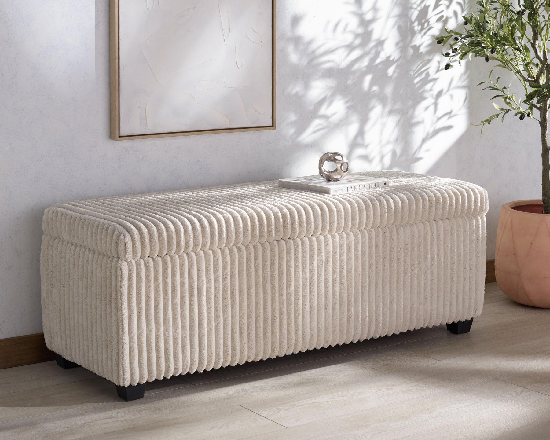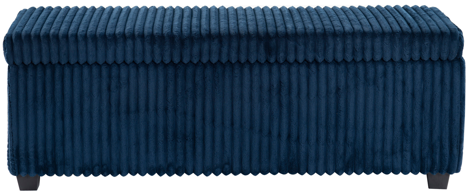 Transform your living space with the Lynzie Channel Tufted Storage Bench in navy. This versatile piece is designed to bring both style and functionality to your home. Crafted from a combination of wood, metal, foam, and fabric, its sturdy construction is made to meet your daily storage needs while providing comfortable seating.
