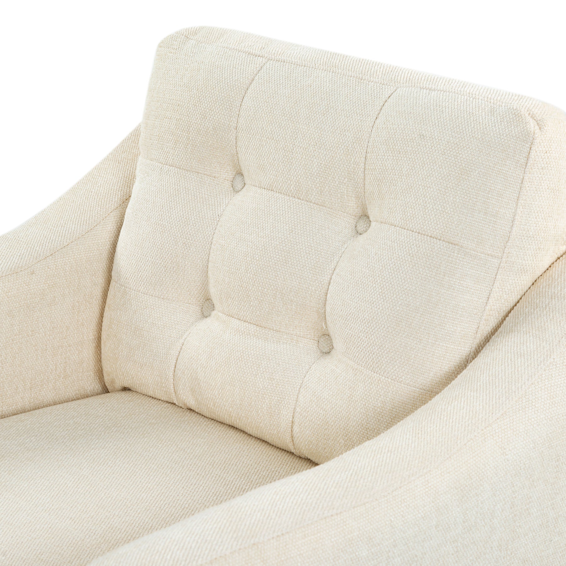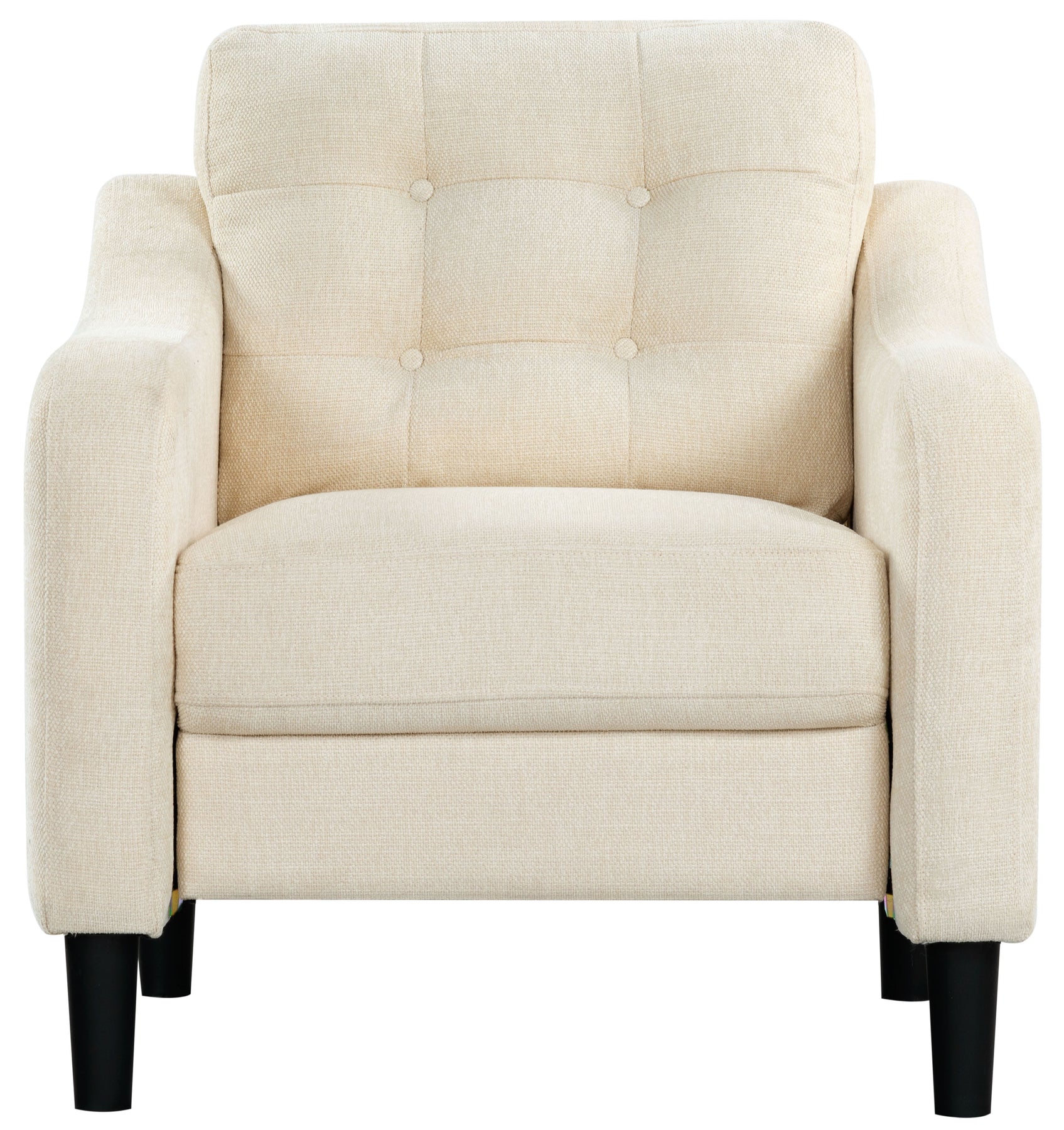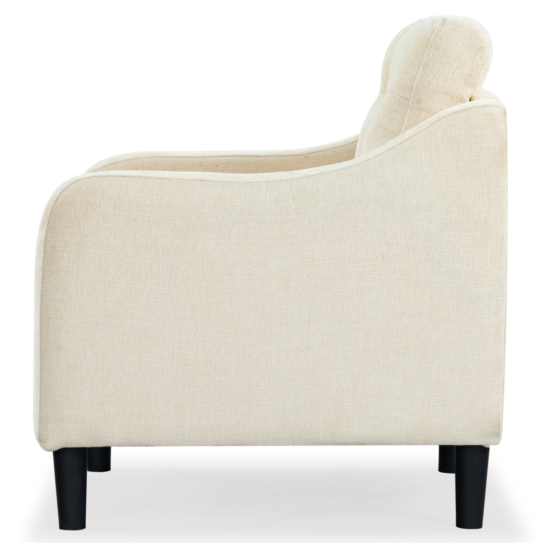 Introducing our Nathaniel Tufted Back Accent Chair in Cream. This stunning piece effortlessly marries style and comfort, making it an ideal addition to your living space, study, or bedroom. Adorned with a sophisticated tufted back and standing tall on sturdy legs, this chair adds an undeniable charm to any room. Upholstered in chic cream-colored fabric, it injects a soothing ambiance and a dash of elegance to your decor. Fabricated from 100% polyester, it is built for durability and easy maintenance, offering you a hassle-free experience. With the Nathaniel Accent Chair in your space, you are not just investing in a piece of furniture, but a style statement that is wonderfully remarkable in its simplicity. Transform your living space with the Nathaniel Accent Chair in Cream, where style meets comfort at its best. Your space deserves nothing less than this delightful piece of art.