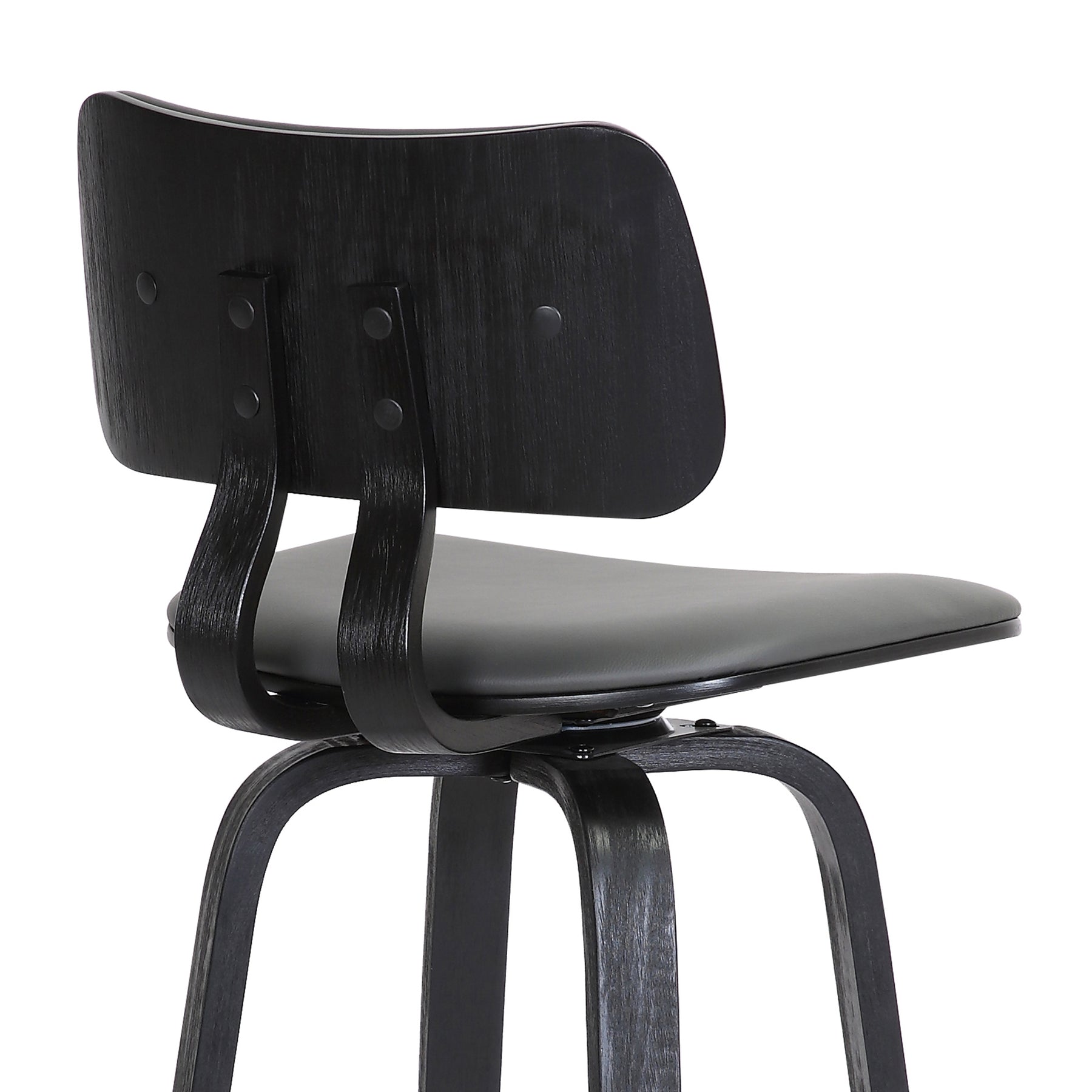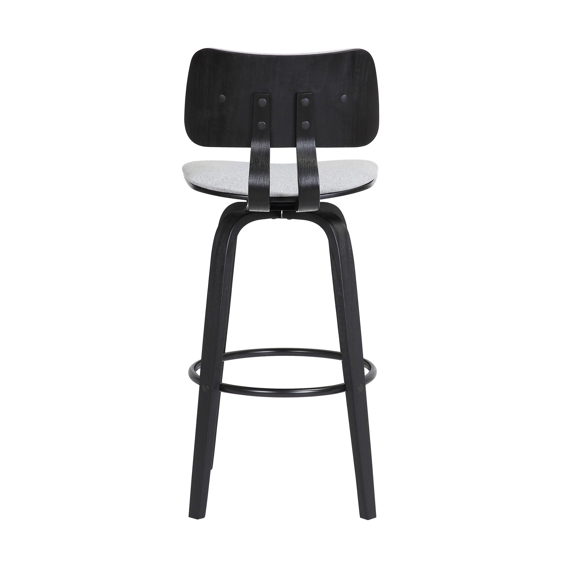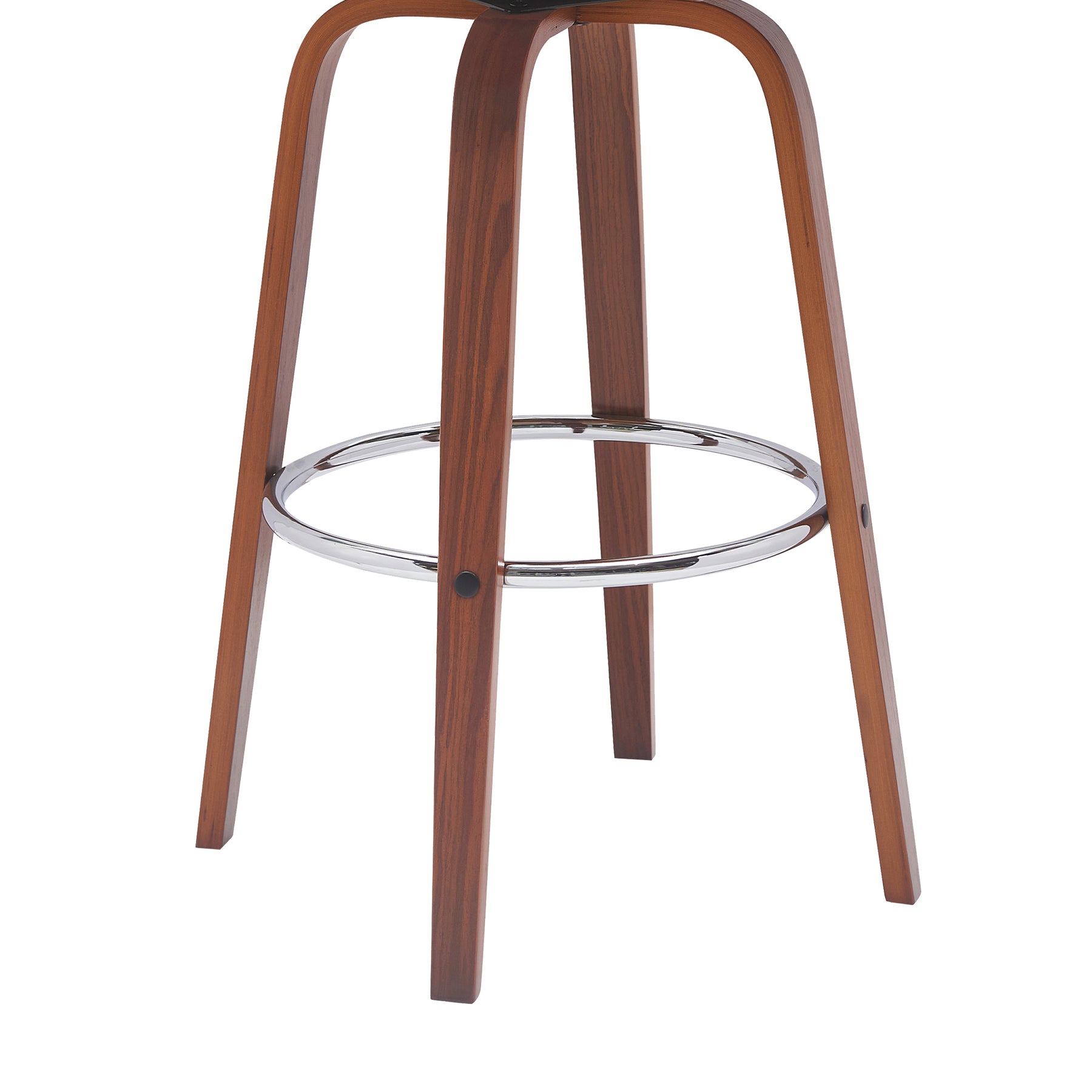 Update your casual meals and cocktail hours with the modern charm and elegance of our Pico Upholstered Swivel Bar or Counter Stool. With bentwood construction, our bar stool features a beautifully curved seat and back, embracing your body with comfort. It is complemented with sculptural bentwood legs to bring signature modern style to your bar or high dining table. Completed with a footrest and upholstered seat, the counter stool promises a comfortable stay. It is upholstered in your choice of faux leather or high-performance fabric to provide easy care and maintenance, best suited to your home. This modern barstool includes a versatile design to complement a kitchen island, pub table, home bar, or adjustable desk. With durable construction, it can be used anywhere from a kitchen to a home office to serve you for years to come. Our counter stool comes with a wonderful 360-degree swivel function. Its smooth gliding system allows you to turn with ease and enjoy your conversation, meals, and cocktail hours to the fullest. The Pico swivel bar or counter stool easily incorporates into any home and is available in your choice of 26-inch or 30-inch seat height. The Pico bar or counter stool is available in your choice of a walnut wood finish with gray, cream, or brown faux leather upholstery and chrome footrest, or a black wood finish with gray faux leather or light gray fabric upholstery and black footrest.