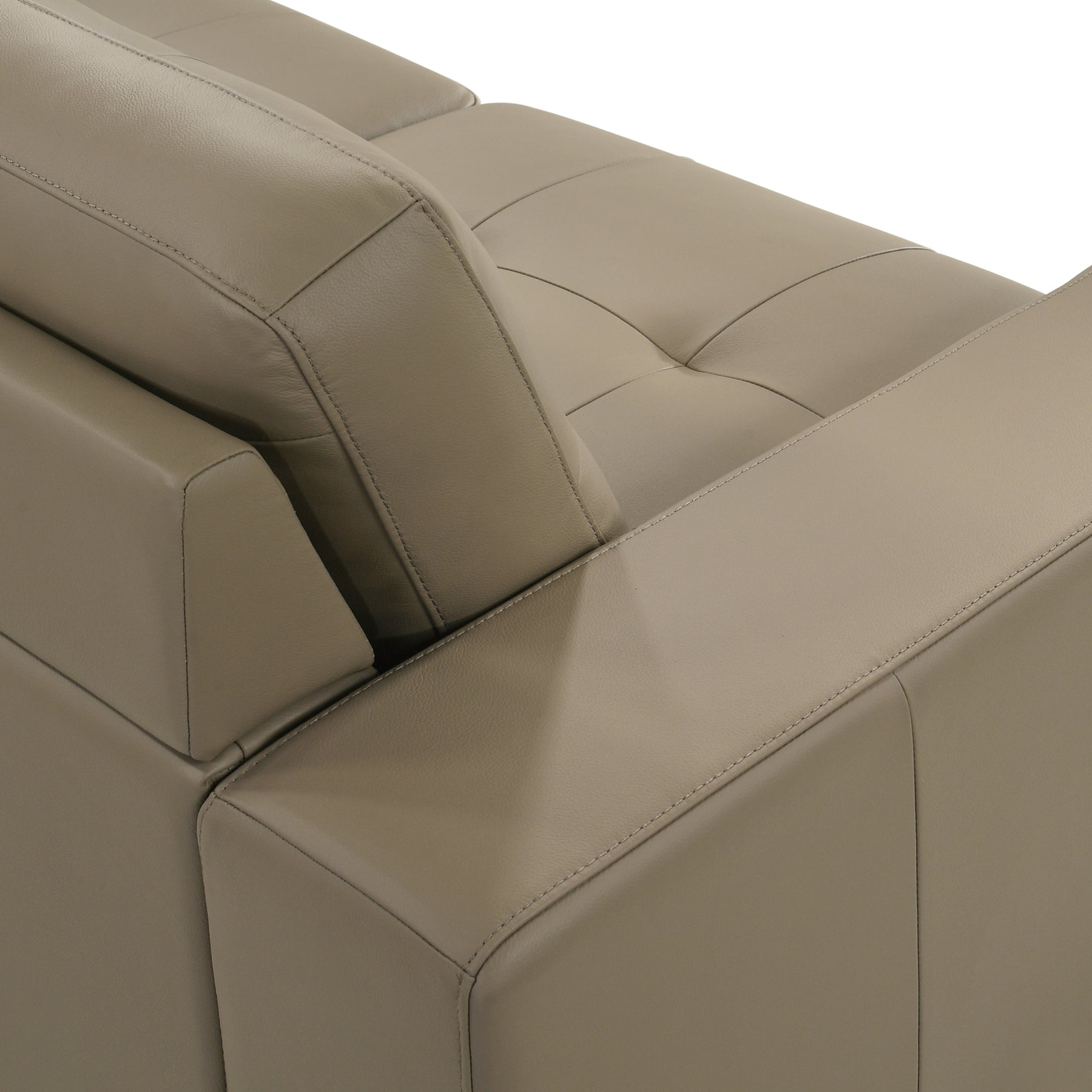 Transform your living room into a sophisticated and welcoming retreat with the Pimentel 102 in. Sectional Sofa, available in Cola or Khaki top-grain genuine leather. Crafted for modern living, this sectional combines generous seating with refined style, making it the perfect choice for families, entertaining guests, or simply stretching out and relaxing at the end of the day. With its expansive 102-inch frame, the Pimentel sectional provides room for up to four people without compromising on comfort. The supple leather upholstery offers a luxurious feel and is designed to age beautifully, adding character over time. Its tufted backrest adds timeless detailing, while the structured track arms and sleek cantilever metal legs create a clean-lined silhouette that enhances contemporary interiors. Beneath the stylish exterior lies high-density cushioning and resilient support that adapts to your body, ensuring hours of comfort whether you’re binge-watching shows, hosting gatherings, or enjoying quiet moments with a book. Designed for versatility, this sectional becomes the natural centerpiece in open-concept living rooms, lofts, or large family spaces, blending elegance with everyday functionality. Low-maintenance care makes it easy to preserve its sophisticated look — simply wipe with a damp cloth and air dry. With minimal assembly required and a 1-year warranty included, the Pimentel sectional is more than just a seating option — it’s a long-term investment in style, comfort, and quality.
