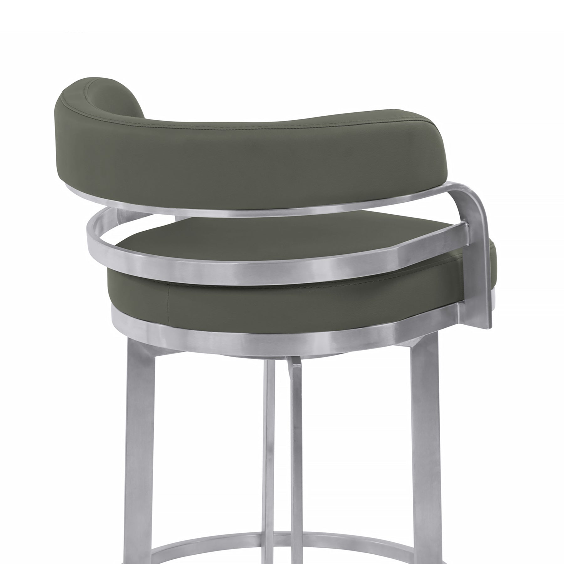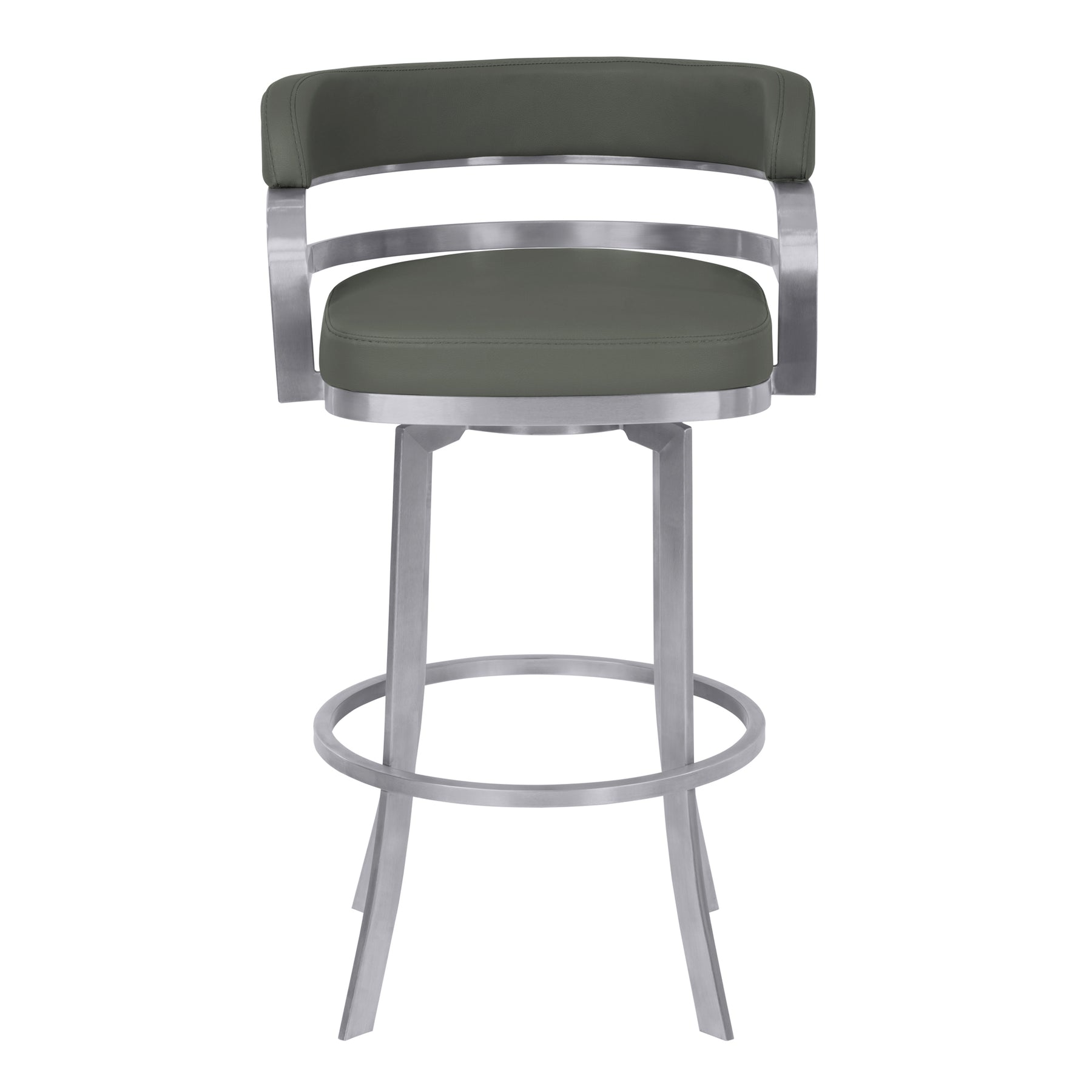 Style meets comfort with the Armen Living Prinz 26" Counter Height Swivel Gray Faux Leather and Brushed Stainless Steel Bar Stool. The Prinz counter stool is a perfect furniture addition to any home or apartment regardless of the design theme. A strong metal or brushed steel base makes for the perfect balance of modern elegance. This kitchen stool features a 360-degree swivel function which increases mobility and allows you or your guests to stay engaged regardless of their place in the room. The sleek, smooth lines featured throughout the body of this chair combined with the look of the soft faux leather upholstery create harmony throughout this piece. The Prinz bar and counter height stool is available to you in bar height 30" and counter height 26" which makes it easy to use at your kitchen island, peninsula counter, or home bar. The Prinz bar or counter stool is available in your choice of a brushed stainless-steel finish with black or gray faux leather upholstery or a black metal finish with gray faux leather upholstery.