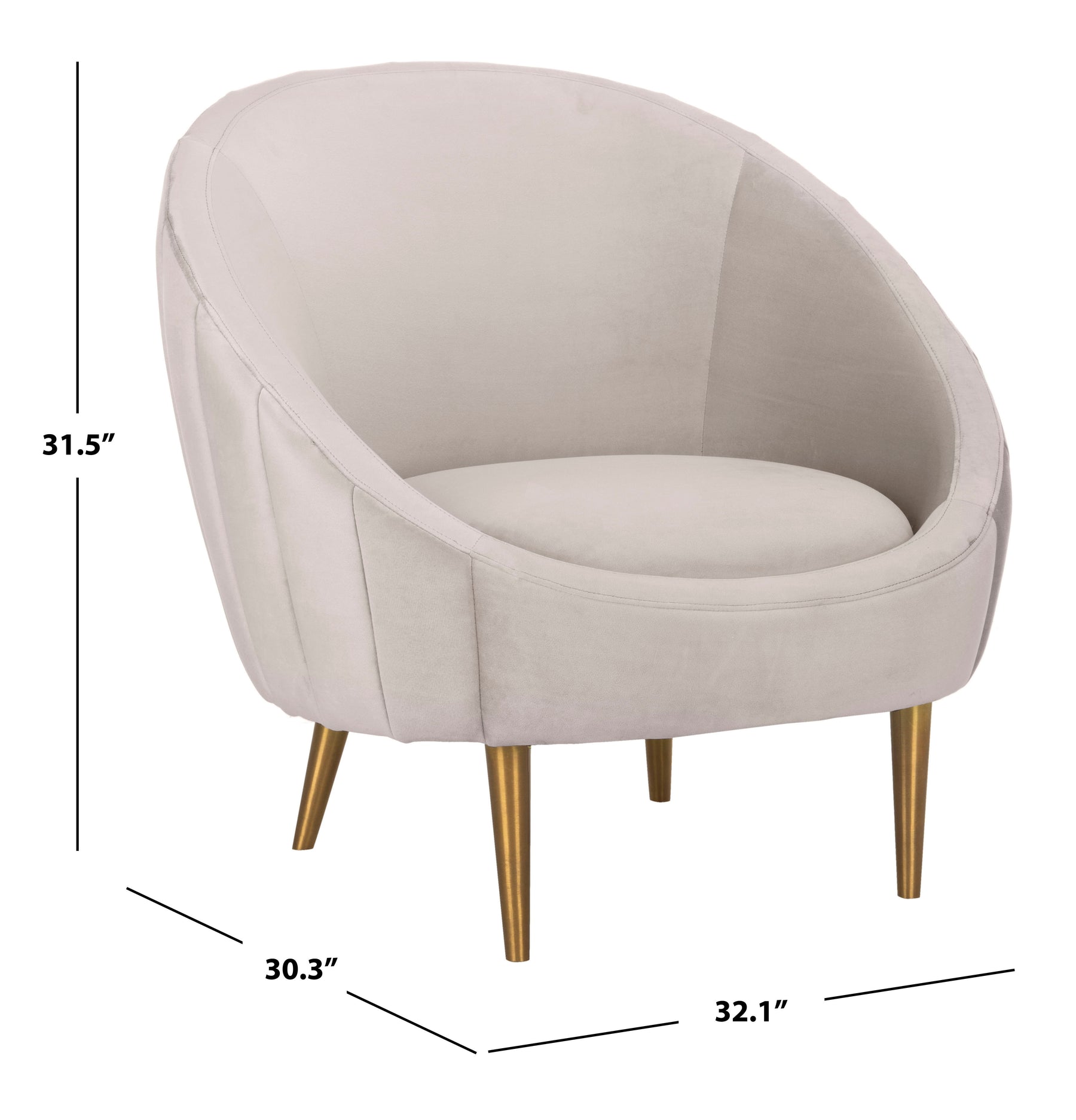 Craftsmanship is the Razia Channel Tufted Tub Chair's defining quality — evident in every surface and joint. Artfully crafted in smooth velvet or faux lamb's wool and shimmering gold legs, this chair makes an elegant statement in any living room. •Assembly Required: Yes •Materials: Fabric / Wood Frame / Foam / Stainless Steel •Fabric: Velvet (100% Polyester) •Wood Content: Solid Wood / P2 Plywood •Weight Capacity: 330 lbs. Brass-finished hardware and accents develop a living patina over time, deepening the piece's character. Available in Brown and Grey, the Razia Channel Tufted Tub Chair adapts its palette to a range of interior directions.