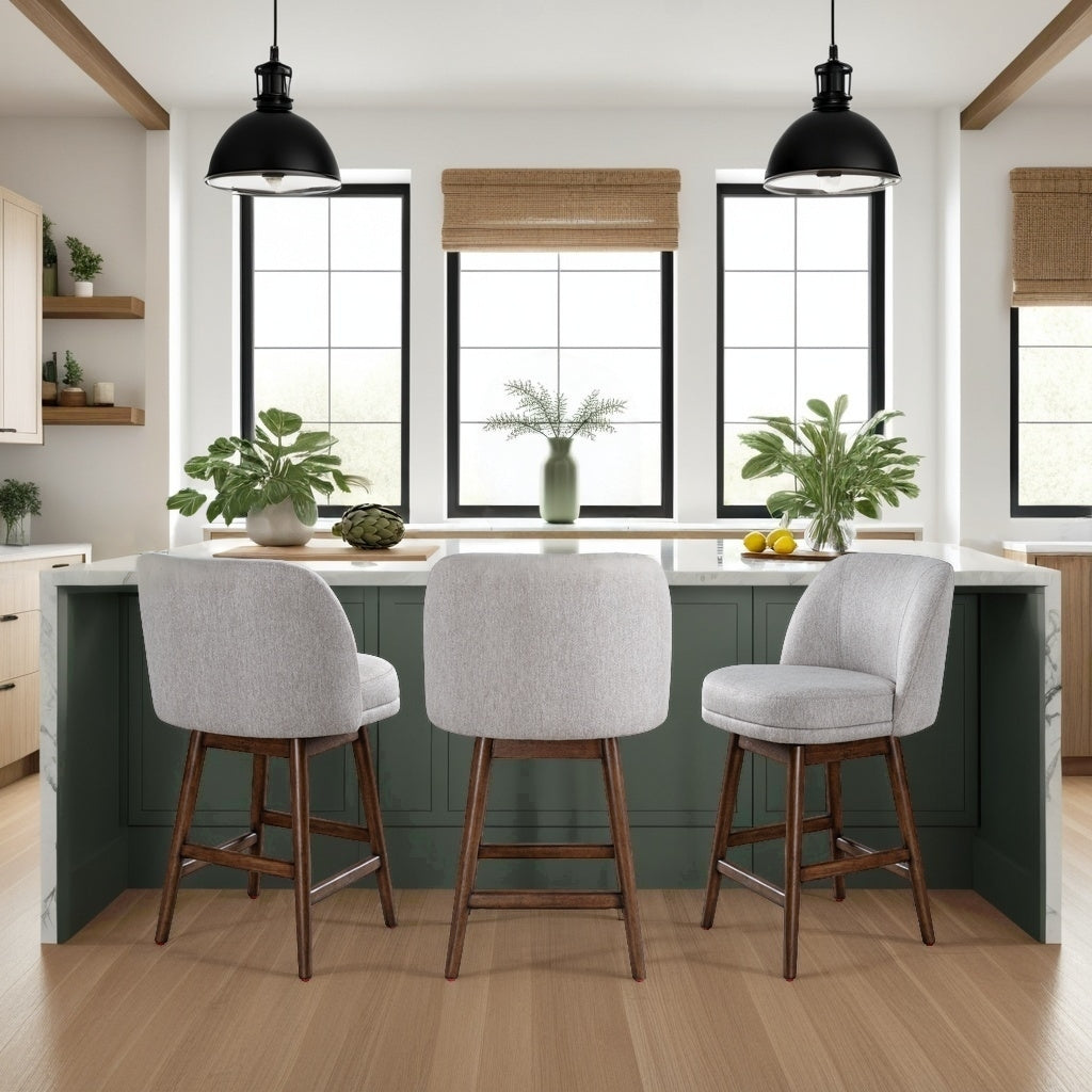 Available in two practical heights – 26-inch counter height and 30-inch bar height – the Sadie Barstool is perfect for a variety of spaces. Its 360-degree swivel feature allows for smooth movement, making it ideal for gatherings or casual meals. The sturdy rubberwood frame, enhanced with a brushed finish, provides lasting durability while adding a sophisticated touch to the overall design.