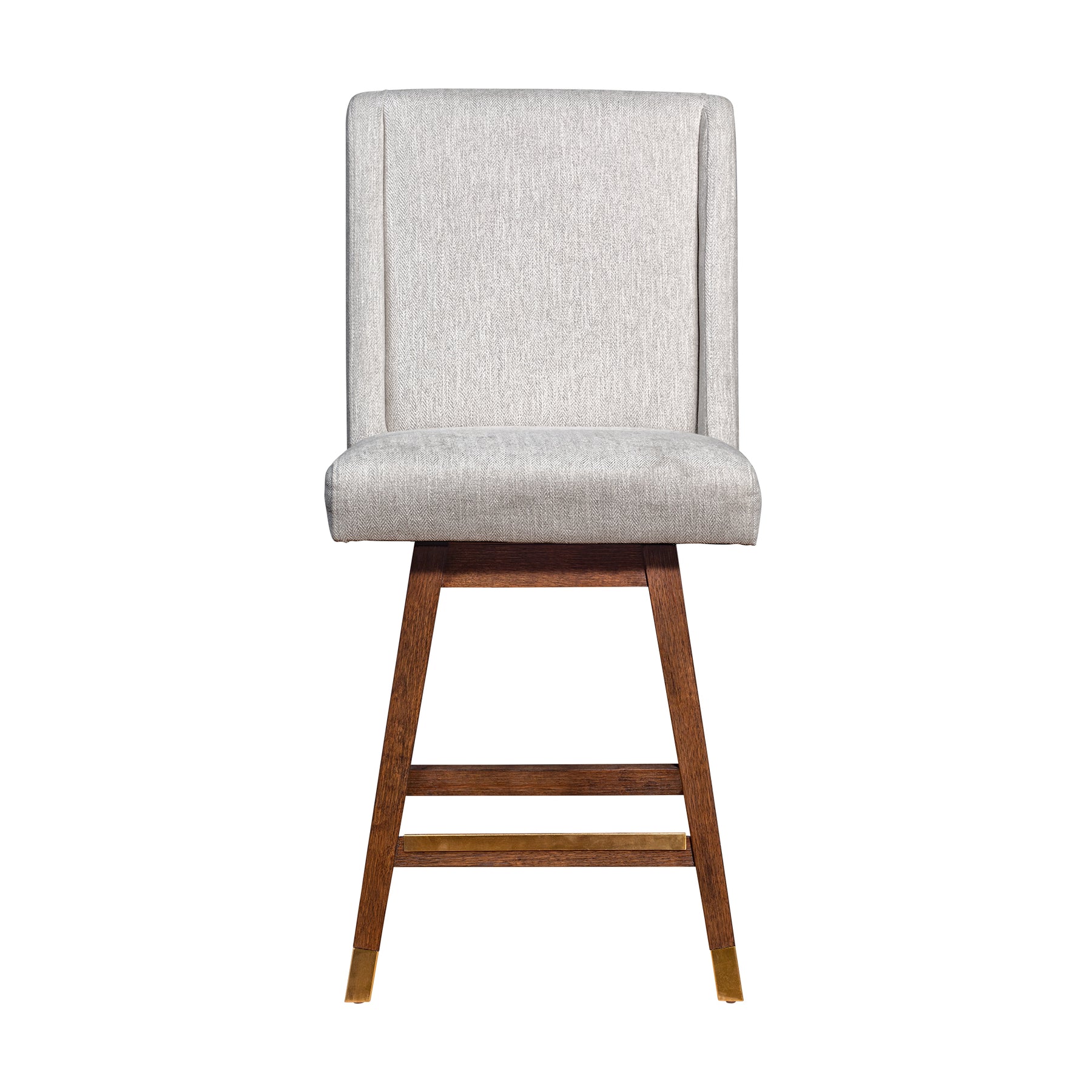 Classic and practical, the Stancoste Swivel Bar or Counter Stool in Wood with Fabric Upholstery is an ideal choice for any home or apartment. Updating your space with new kitchen barstools is an easy way to create a new feel instantly! Whether you’re restyling your kitchen island or moving into a new place and without any dining furniture; counter or bar height stools are a convenient quick fix. The Stancoste swivel bar stool has a sturdy 4 leg base constructed from rubberwood. Rubberwood is a durable hardwood belonging to the maple family. Its dense grain character makes it a stable construction material that is naturally resistant to fungus and bacteria. The strong rubberwood frame is complimented by rich polyester upholstery. The long-term durability of polyester makes it an ideal choice of stool upholstery fabric for families with children and pets. Polyester upholstery is water repellent, stain resistant, budget friendly, and less prone to discoloration. Counter or bar height stools should combine style with convenience. The 360-degree swivel seat allows you to swivel either way with full mobility. The Stancoste bar or counter stool features a sophisticated wingback design, is available in your choice of 26 inch or 30 inch seat heights and comes in your choice of a gray oak wood finish with mocha fabric, or a brown oak wood finish with taupe or beige fabric upholstery.