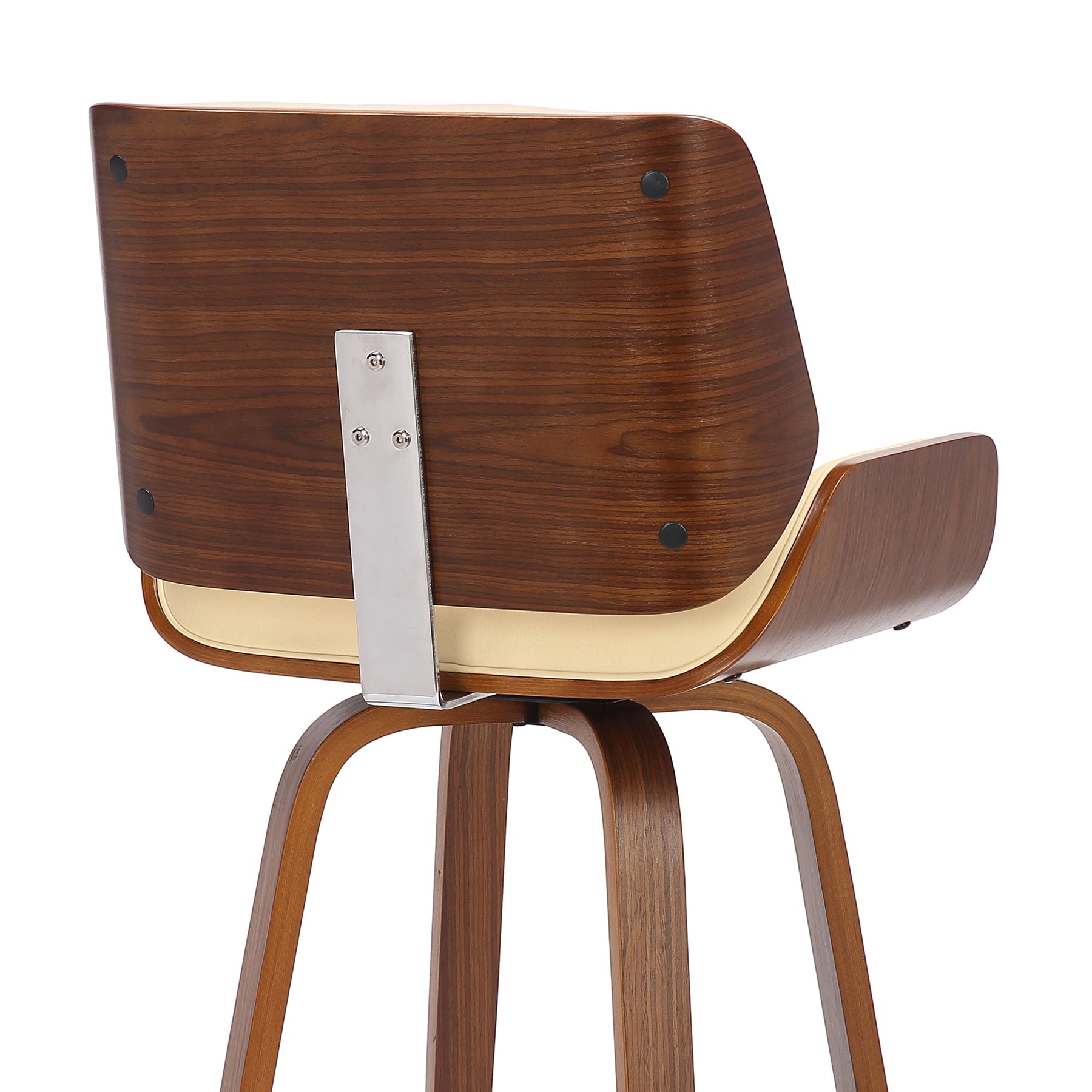 Add some Mid-Century Modern flair to your home with the Armen Living Tyler 30" Swivel Brown Faux Leather and Walnut Wood Bar Stool! Featuring a retro style silhouette, the Tyler bar stool showcases function, convenience, and timeless beauty. The 360-degree swivel functionality gives you the mobility you need when sitting or entertaining and allows you to easily engage with any of your guests regardless of their place in the room! An ideal addition to your kitchen peninsula or island, home bar or pub table, the Tyler’s high-density foam cushion and chrome ring footrest keep you comfortably seated. The Tyler kitchen stool can easily integrate into any home regardless of style theme and features multiple color options such as Cream or Brown faux leather upholstery with a Walnut finish or Gray faux leather with a Black finish. The Tyler Bar or Counter Stool is available in your choice of 26” or 30” seat height options.
