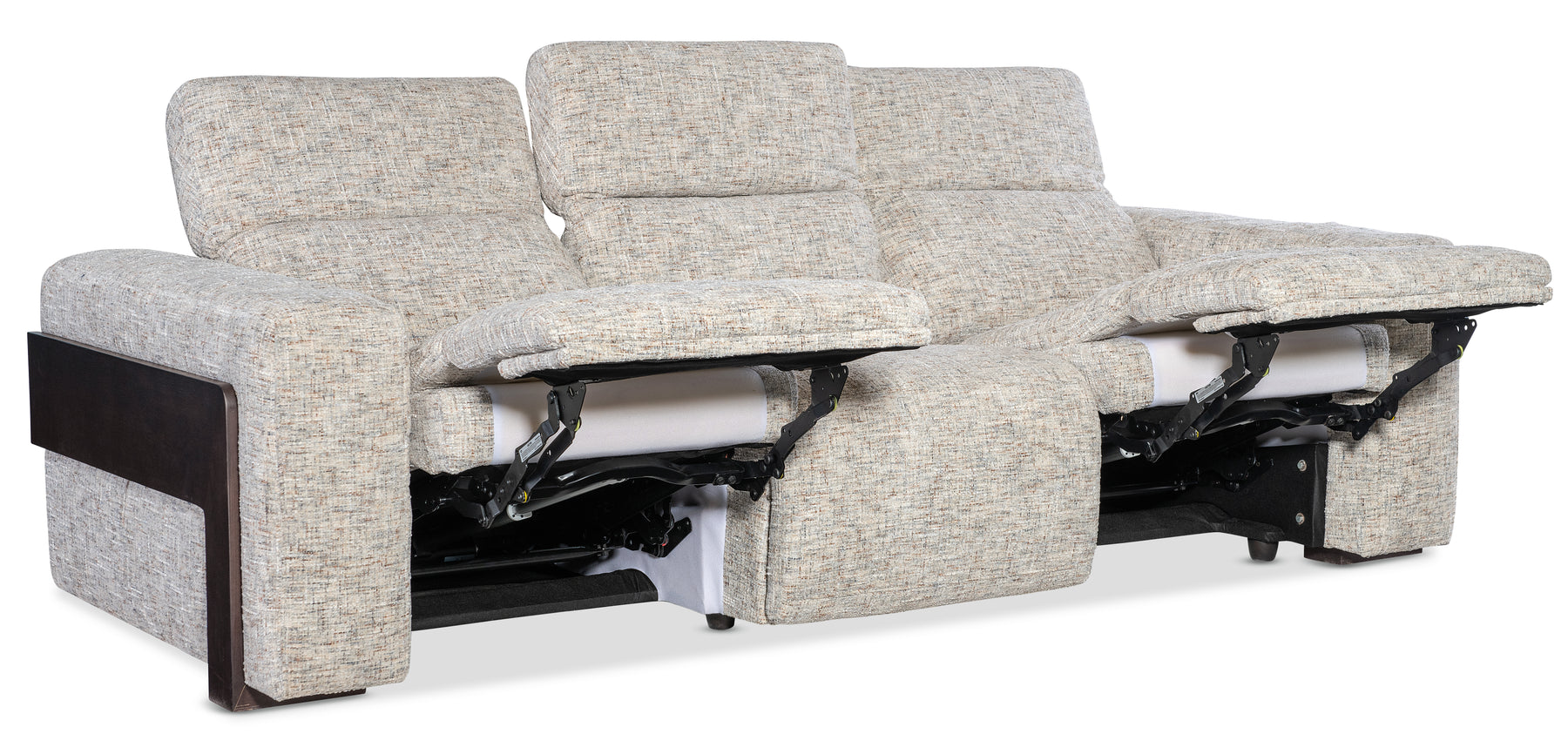 The Atlas Power Sofa with Power Headrest is the ultimate in luxurious seating. With three spacious seats, power recline, and adjustable headrests, it combines comfort and style. The Odyssey Frost fabric and ebony wood banding provide a modern aesthetic, while the soft chenille yarns deliver a plush experience. Ideal for larger living spaces, this sofa is a statement piece that doesn't compromise on comfort.