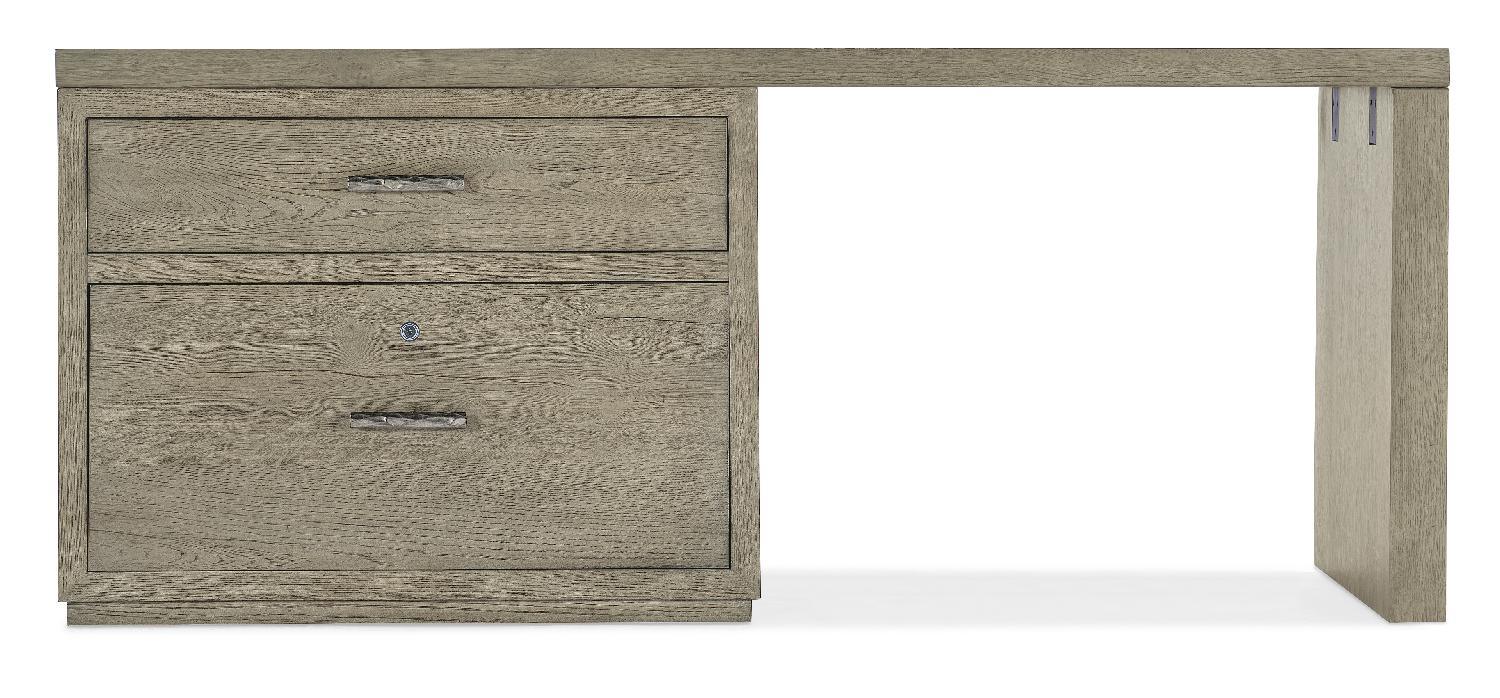 Capturing the essence of nature’s organic color palette on a clean-lined, simple silhouette, the Linville Falls Desk is crafted of Oak Veneers with a soft smoked gray Mink finish. The 72-inch wide top is flanked on one side by a leg end panel and on the other by a lateral file with a top utility drawer and a lower locking file drawer with pendaflex filing system. The desk is fully finished on the back so it can be floated in a room.