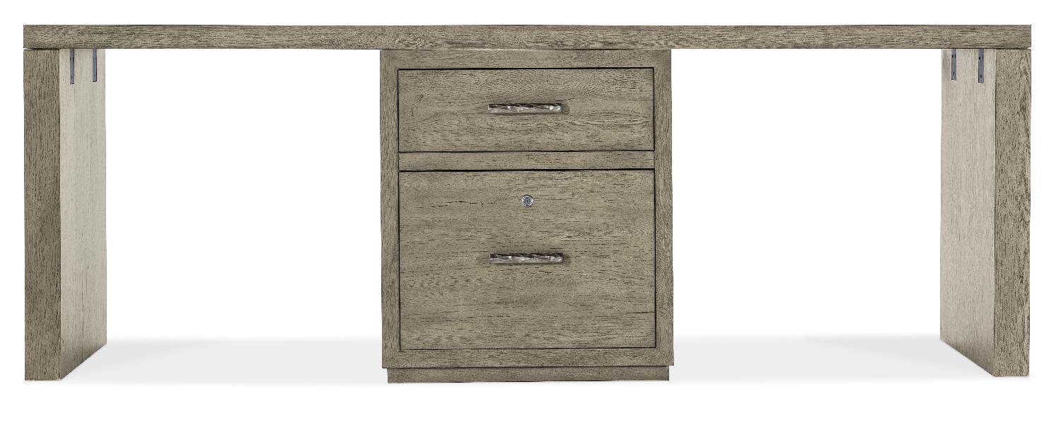 Capturing the essence of nature’s organic color palette on a clean-lined, simple silhouette, the Linville Falls Desk is crafted of Oak Veneers with a soft smoked gray Mink finish. The 84-inch wide top has a functional base with a small file in the center and two leg end panels. The small file has a top utility drawer and a lower drawer with a locking file drawer with pendaflex filing system. The desk is fully finished on the back so it can be floated in a room.