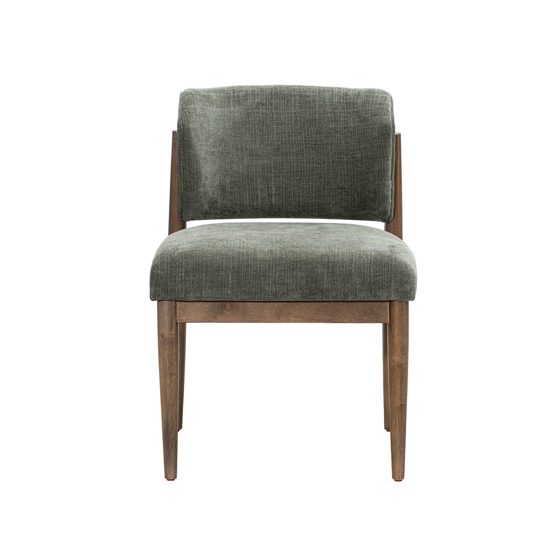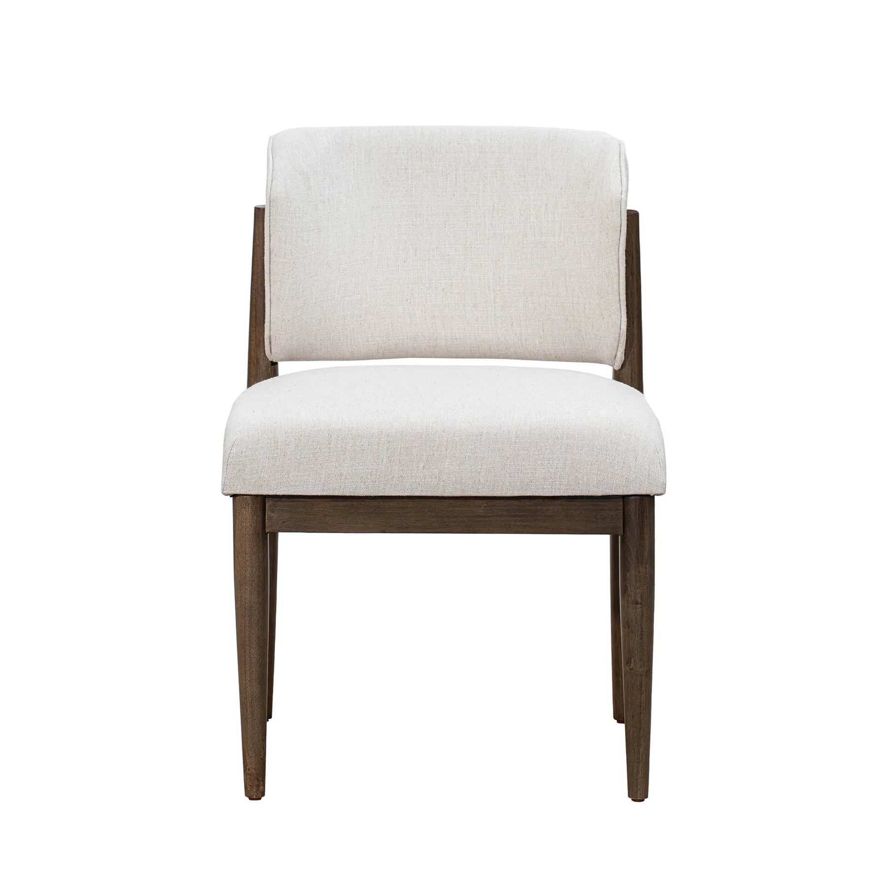 An elegant dining chair that combines natural linen texture with modern tailoring. Its fabric blend offers a sophisticated hand-feel, while the solid wood base adds a touch of organic warmth.