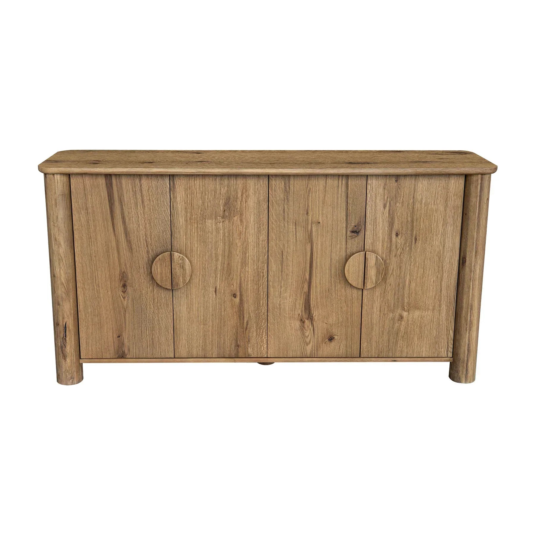 Featuring clean curves and a signature cracked oak pattern, this sideboard blends refined utility with visual depth. The four-door design conceals generous interior storage for modern living.