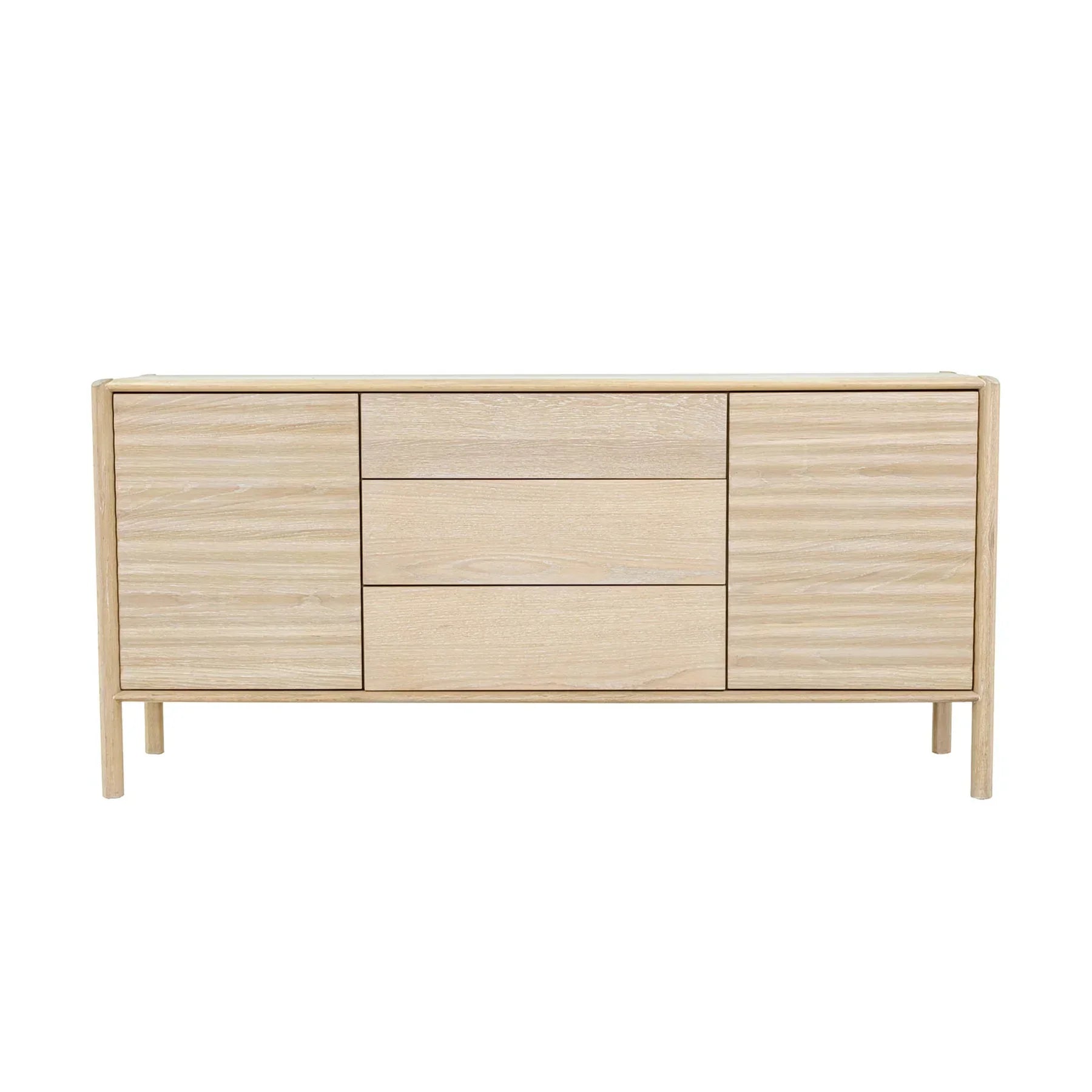 Clean lines and a light oak finish bring a quiet elegance to this sideboard, offering functional storage with soft curvature and sculpted detailing.