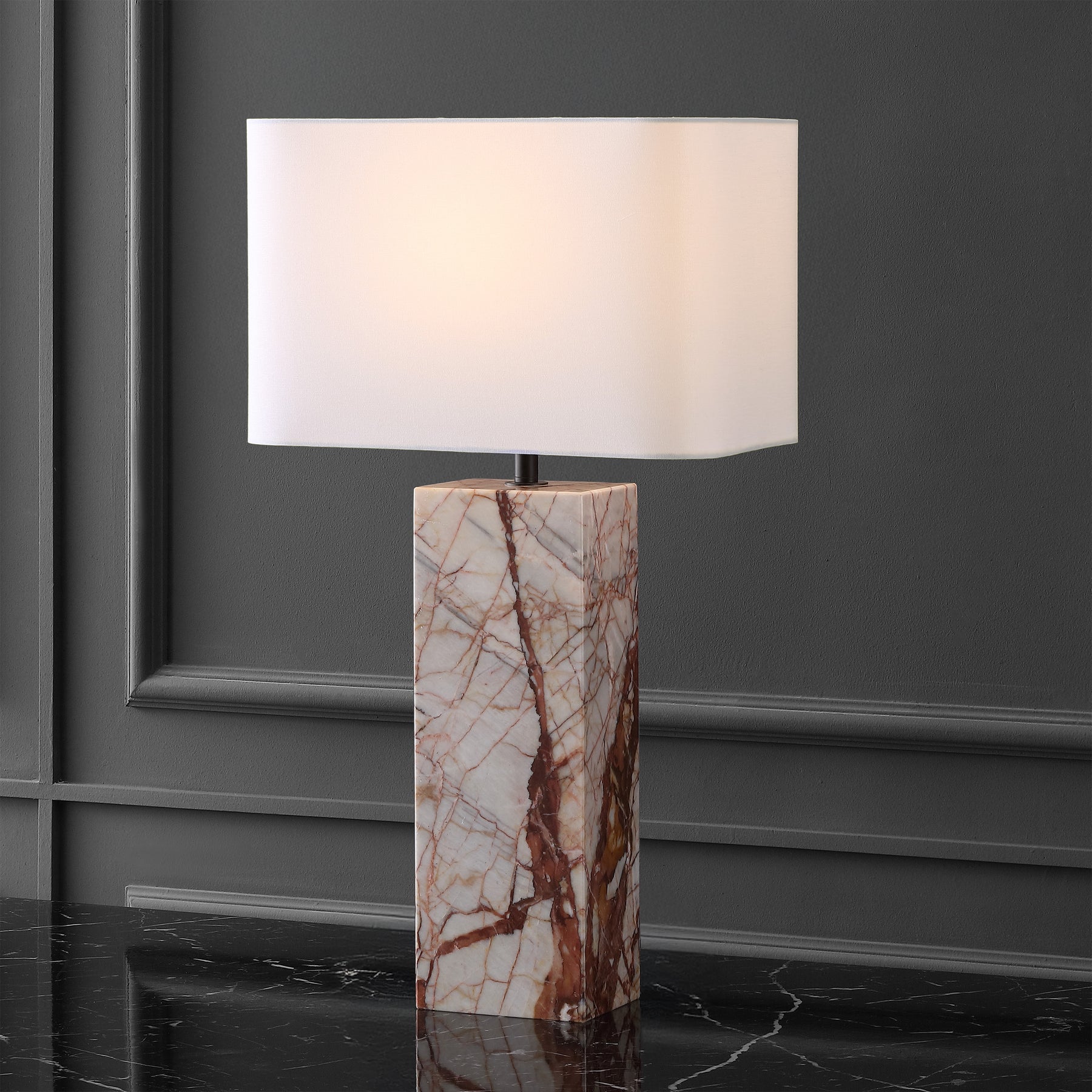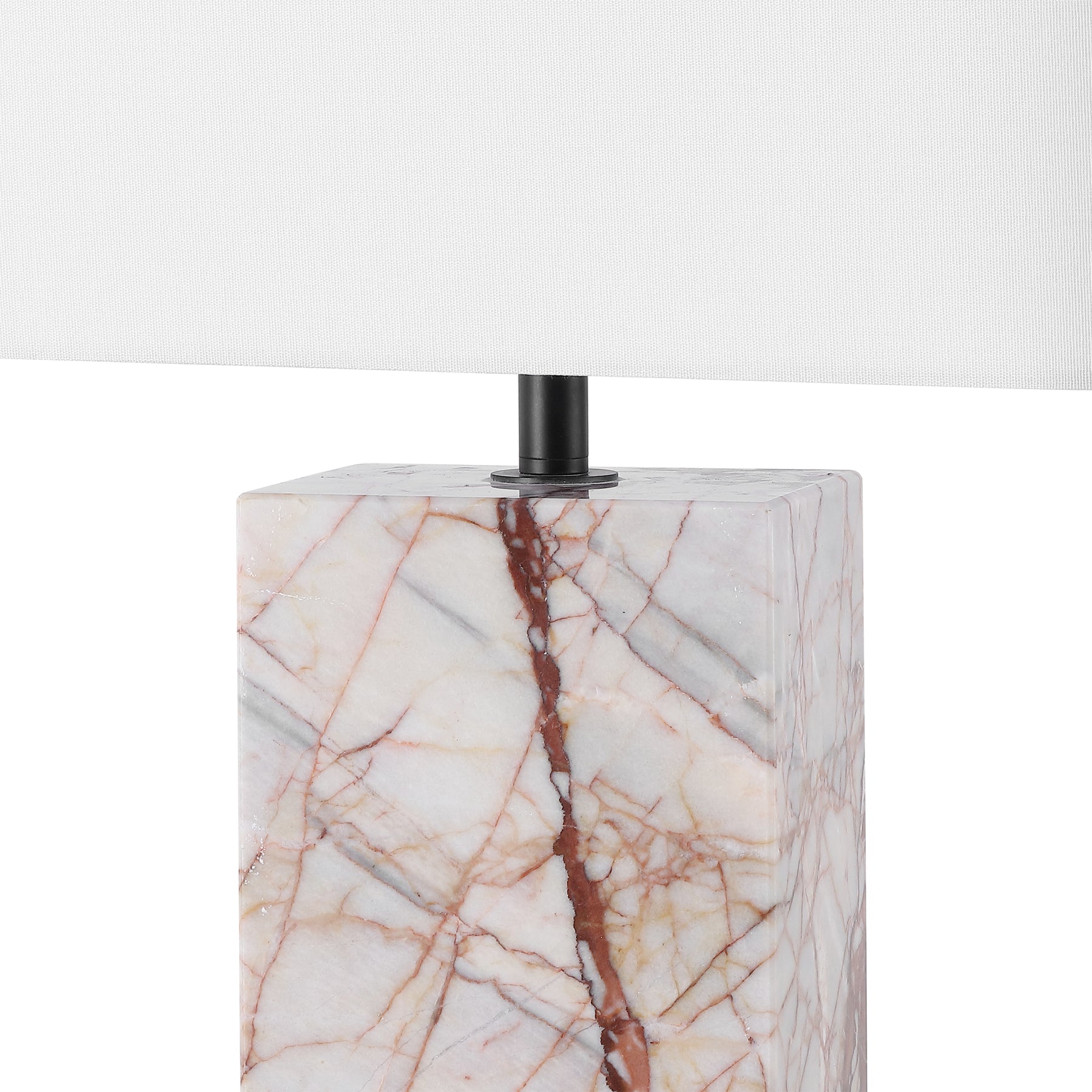 Illuminate your space with the enchanting CHRISETTE marble square base table lamp. With a stunning blend of white and red, it effortlessly adds a touch of elegance to any room. The lamp's sleek white marble base provides a sturdy and chic foundation, while the smooth iron stem and delicately crafted shade beautifully complement its modern design. This lamp is more than just a source of light; it is a statement piece that enhances your decor with its sophisticated allure. Ideal for living rooms, bedrooms, or offices, its warm glow creates an inviting ambiance that transforms your surroundings. Elevate your interior with the CHRISETTE table lamp and experience the perfect fusion of style and function. Whether you are reading your favorite book or simply creating mood lighting, this lamp shines with grace and beauty. Add this captivating piece to your decor today and enjoy the timeless elegance it brings to your home.
