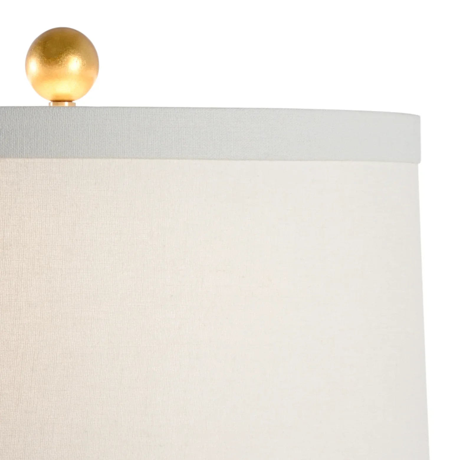 Gourd shaped lamp in celadon with antique gold leaf base.