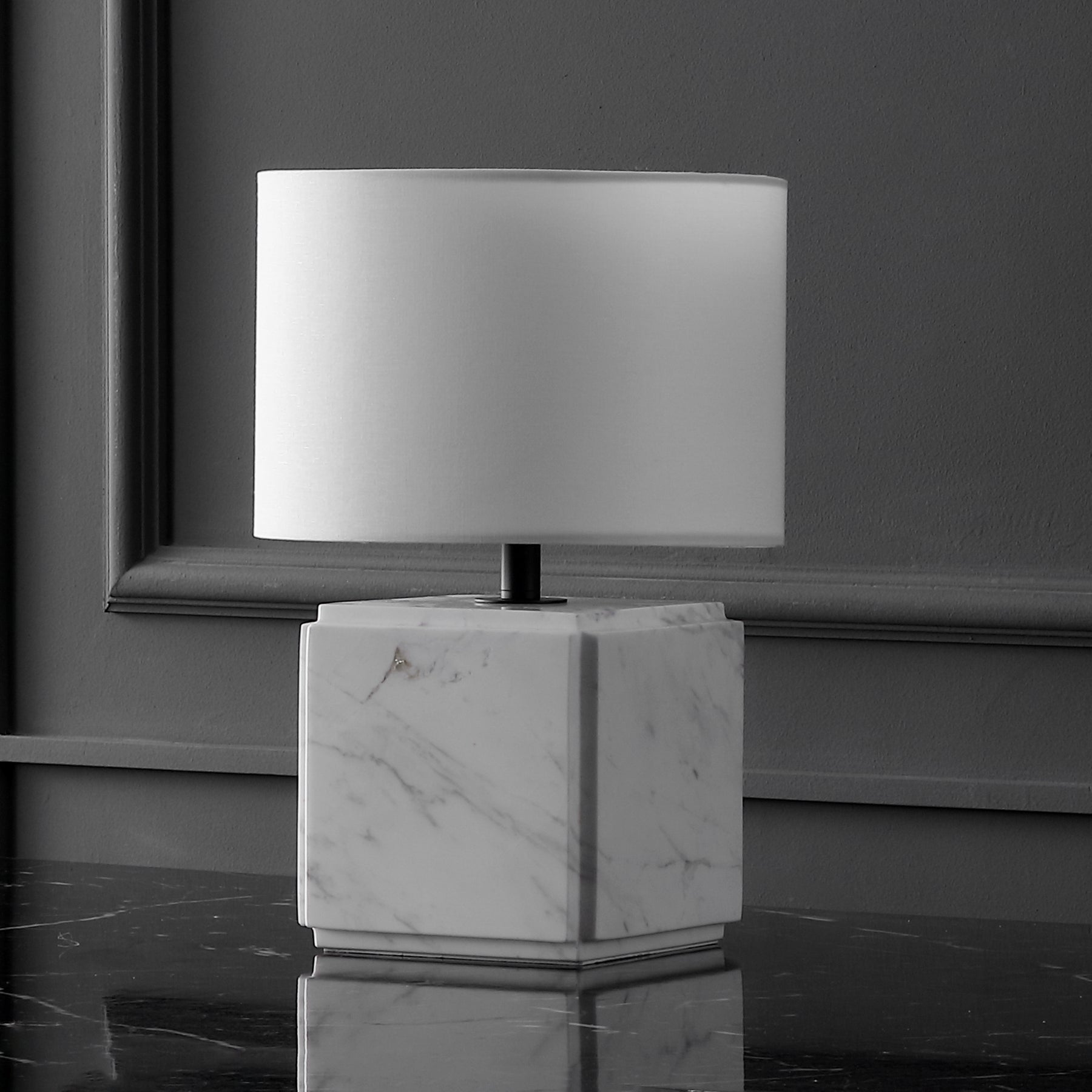 Illuminate your space with the Zahra marble table lamp. Its elegant black and white design adds a touch of sophistication to any room. Crafted from Chinese marble and iron, this lamp is more than a source of light; it is a statement piece. The shade complements the sleek materials, creating a balance of style and function. Whether placed in a living room or bedroom, its timeless design effortlessly fits into any decor. Let the Zahra lamp transform your surroundings with its captivating presence, blending seamlessly into your home.