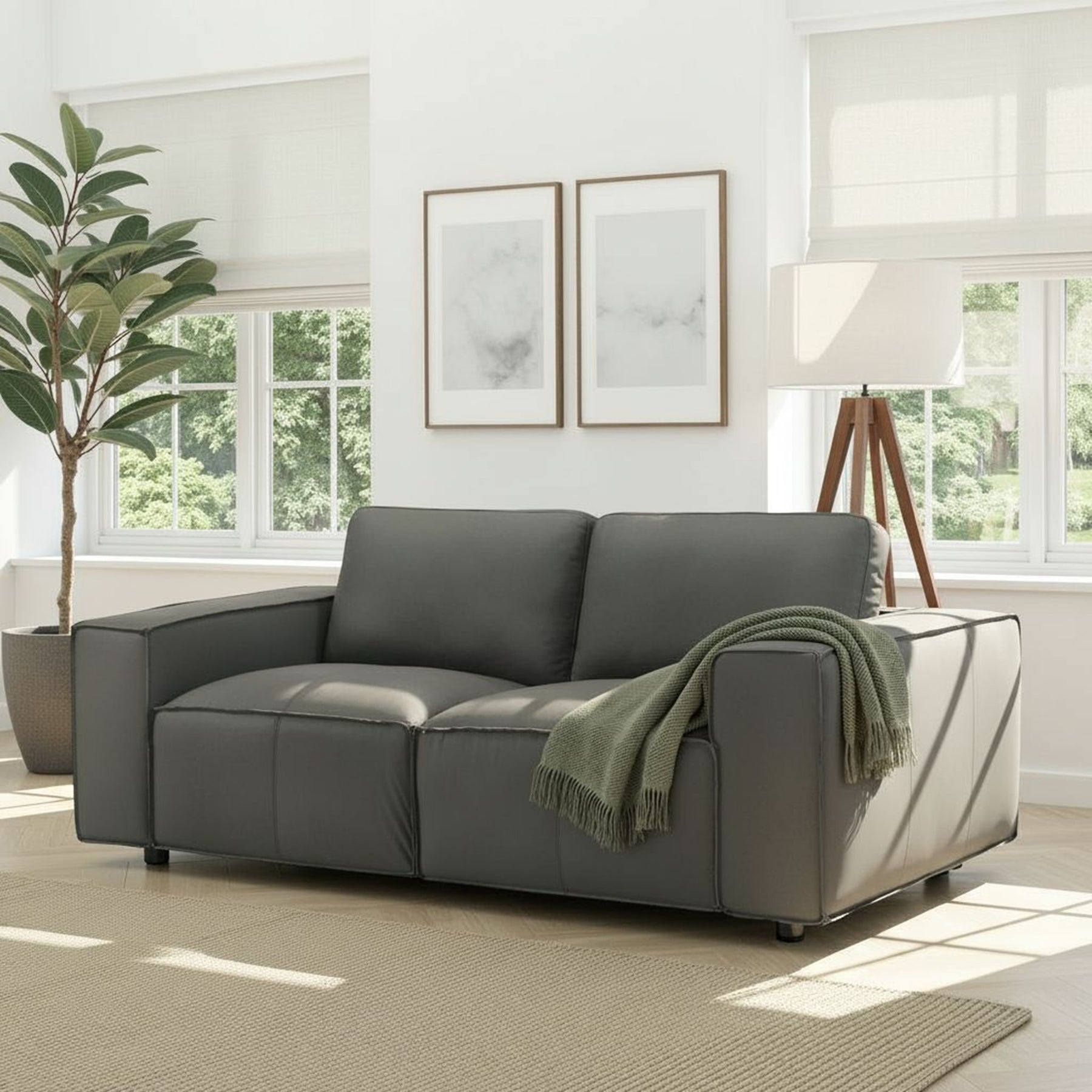 Elevate your living room with the Clayton 76 in. Modern Top-Grain Genuine Leather Loveseat, available in Anthracite Gray or Ochre. Designed with sleek lines, modern track arms, and a low-profile silhouette, this loveseat strikes the perfect balance between contemporary style and everyday comfort. Its versatile design makes it a standout piece in both modern and transitional spaces, giving you the freedom to design your living room around your unique taste. Crafted with high-quality leather upholstery, the Clayton loveseat offers a luxurious look and feel while being durable enough for daily use. The Anthracite Gray option provides a bold, modern statement that pairs beautifully with industrial and minimalist decors, while the Ochre color adds a touch of warmth and richness, perfect for cozy, sophisticated interiors. Whichever you choose, the leather surface is smooth, easy to maintain, and built to last season after season. Comfort is at the heart of the Clayton loveseat. With plush, supportive cushions and a wide 76-inch frame, it provides ample space for two to sit comfortably. Whether you’re enjoying a quiet evening with a book, hosting guests, or creating a cozy movie-night spot, the Clayton loveseat delivers reliable comfort without sacrificing style. Its tailored cushions retain their shape while offering the sink-in comfort you expect from a high-quality seating piece. Built on a sturdy wooden frame, this loveseat is designed for long-term durability. The streamlined legs add subtle support while keeping the focus on the bold, boxy silhouette. Plus, because assembly is minimal, setup is simple and fast, so you can get straight to the good part: enjoying your space. Pair it with the coordinating Clayton sofa for a complete set, or let it shine as a standalone statement piece. Whether in Anthracite Gray for a sleek, modern edge or Ochre for a warm, inviting vibe, the Clayton loveseat adds style, durability, and comfort to your living space.