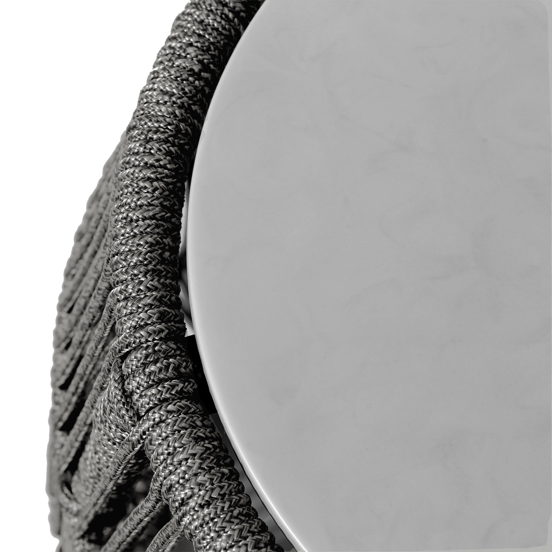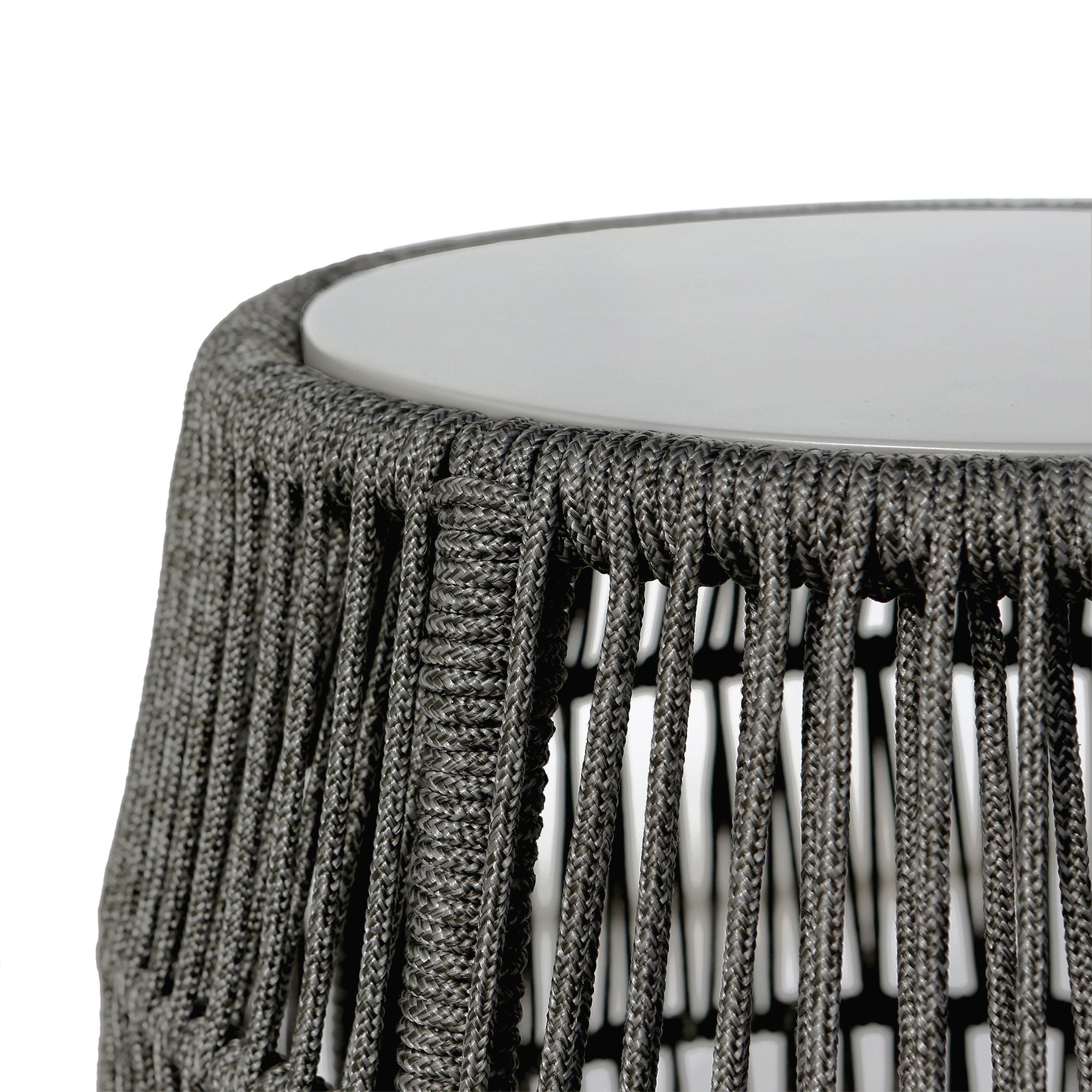 Enjoy the endless applications of the Emory garden stool end table from Armen Living. Constructed from steel, wrapped in resilient and weather resistant rope and topped with smooth super stone, the Emory is stylish as it is functional. The stone top features a 5-layer composite with 2 layers of cement fiberboard surrounding the aluminum honeycomb core. The smooth stone is durable and robust - capable of withstanding inclement weather and everyday wear and tear. The steel frame is incredibly durable as steel does not dent or get bent out of shape as easily as some aluminum furnishings can. Lighter than wrought iron but heavier than aluminum, steel provides strength, stability, and endurance in extreme temperatures. This garden stool can do double duty serving inside as an additional end table or bedside nightstand. The Emory is available in your choice of gray or charcoal rope and features a gray super stone top.
