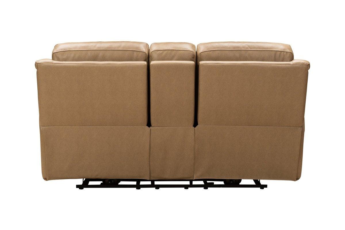 Modern pubback styling power reclining console loveseat features oversized boxed styled pad over chaise seating with pocketed coils, slim line wedged pillow arms, and power recline with power lumbar and power head rests. Decorative stitching accents the back and chaise fronts.