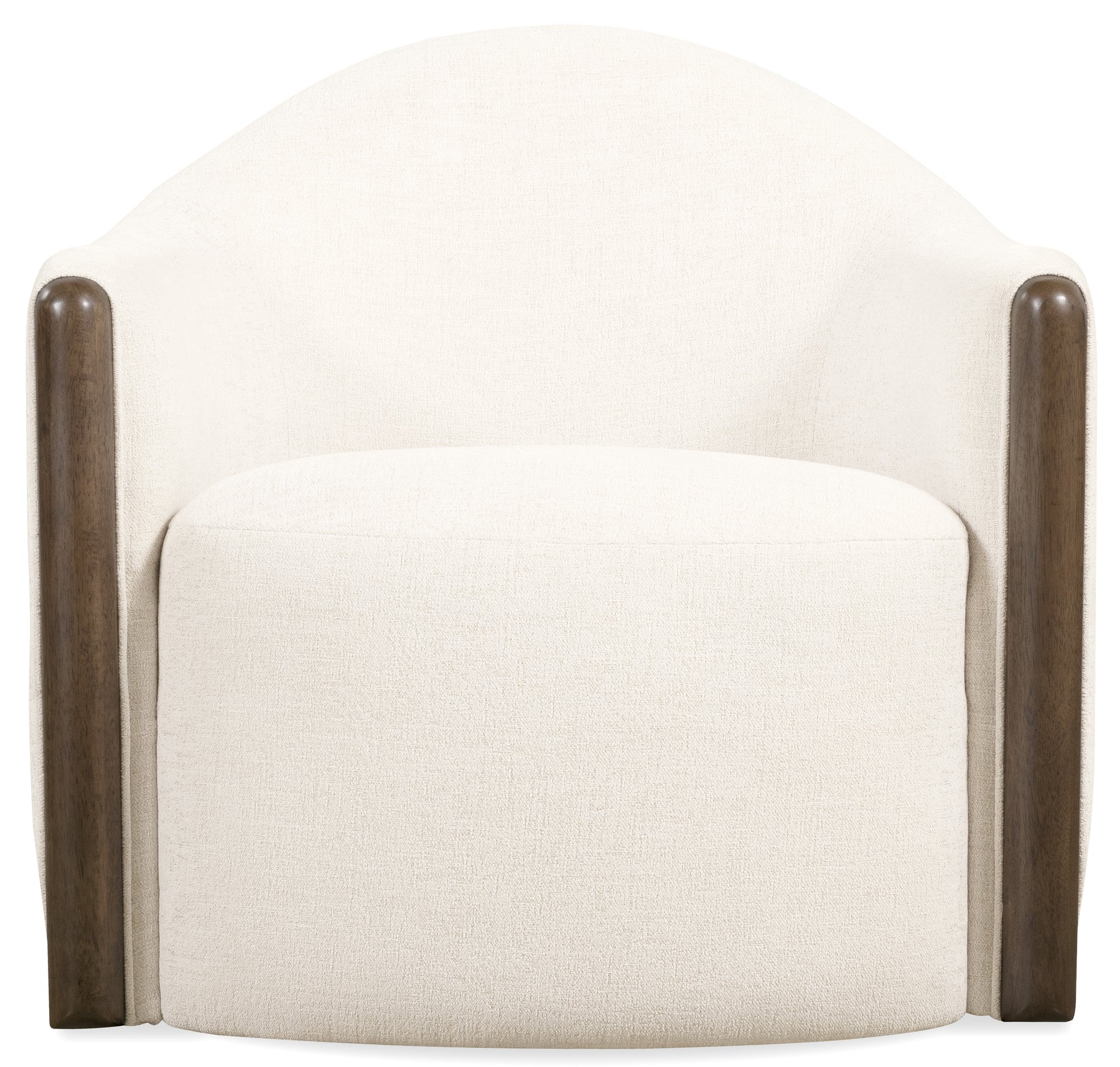 Bring refined style and effortless function into your space with the Cora Swivel Chair in leather. Crafted with semi-aniline top grain leather in Dante Sandhills, this chair features a rounded back, wood-trimmed arm fronts, and a smooth swivel base. The transitional silhouette and dark wood accents make it a standout piece for any living room, home office, or stylish lounge. Perfect for designers seeking a mix of comfort and sophistication.